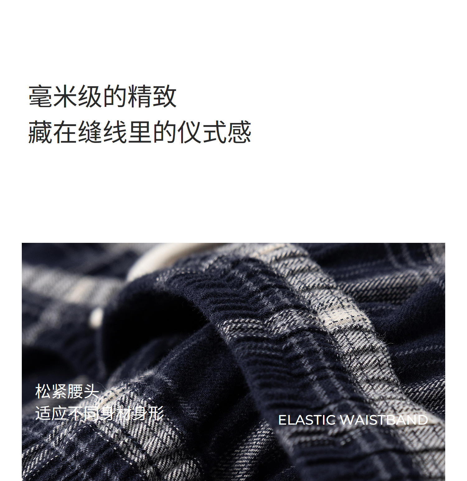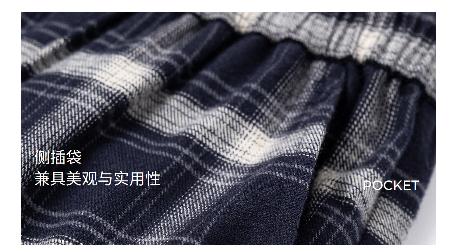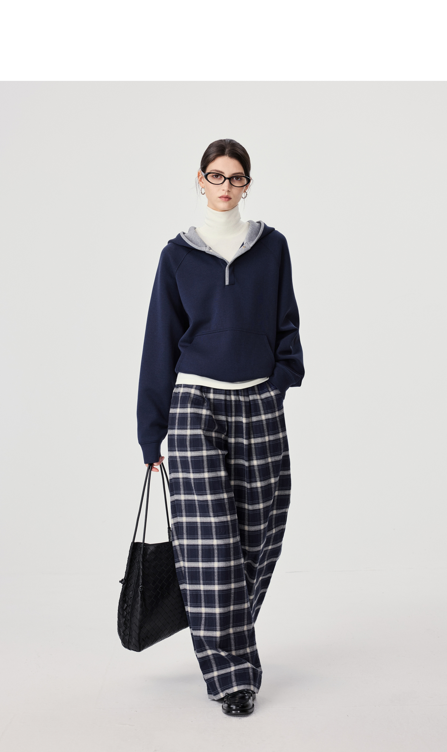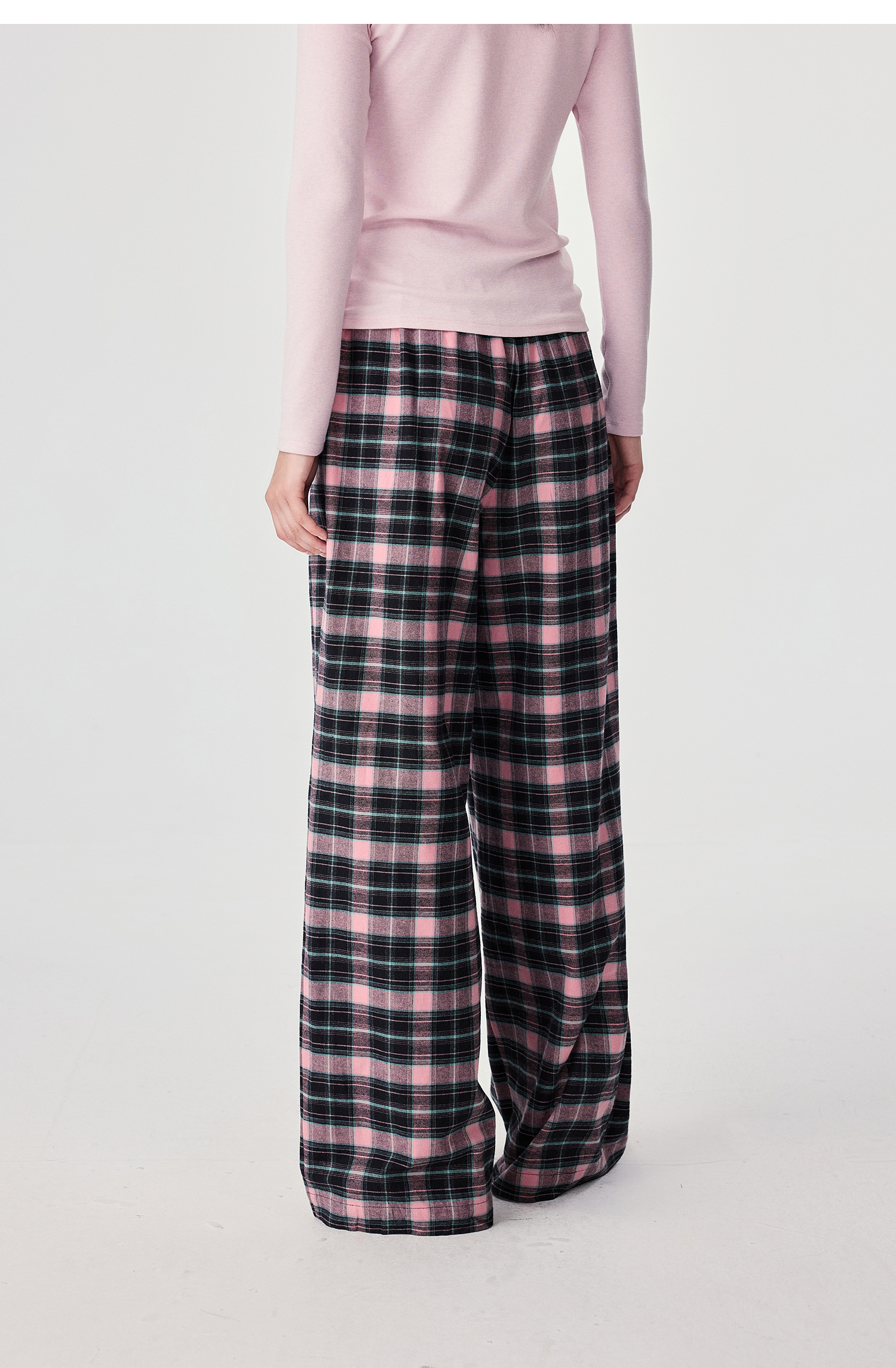 棉仓366618018-25秋绒感休闲格纹抽绳腰阔腿裤