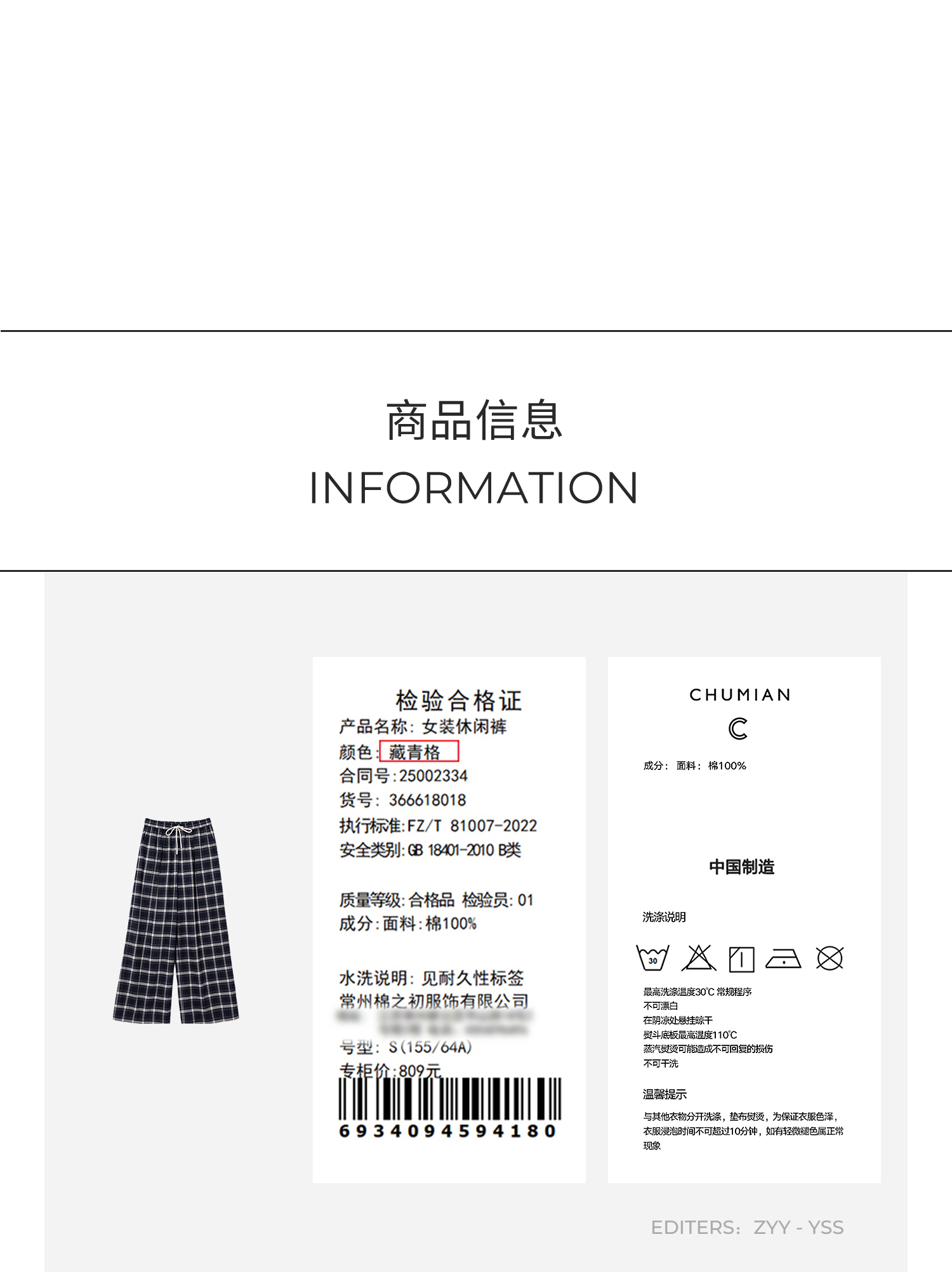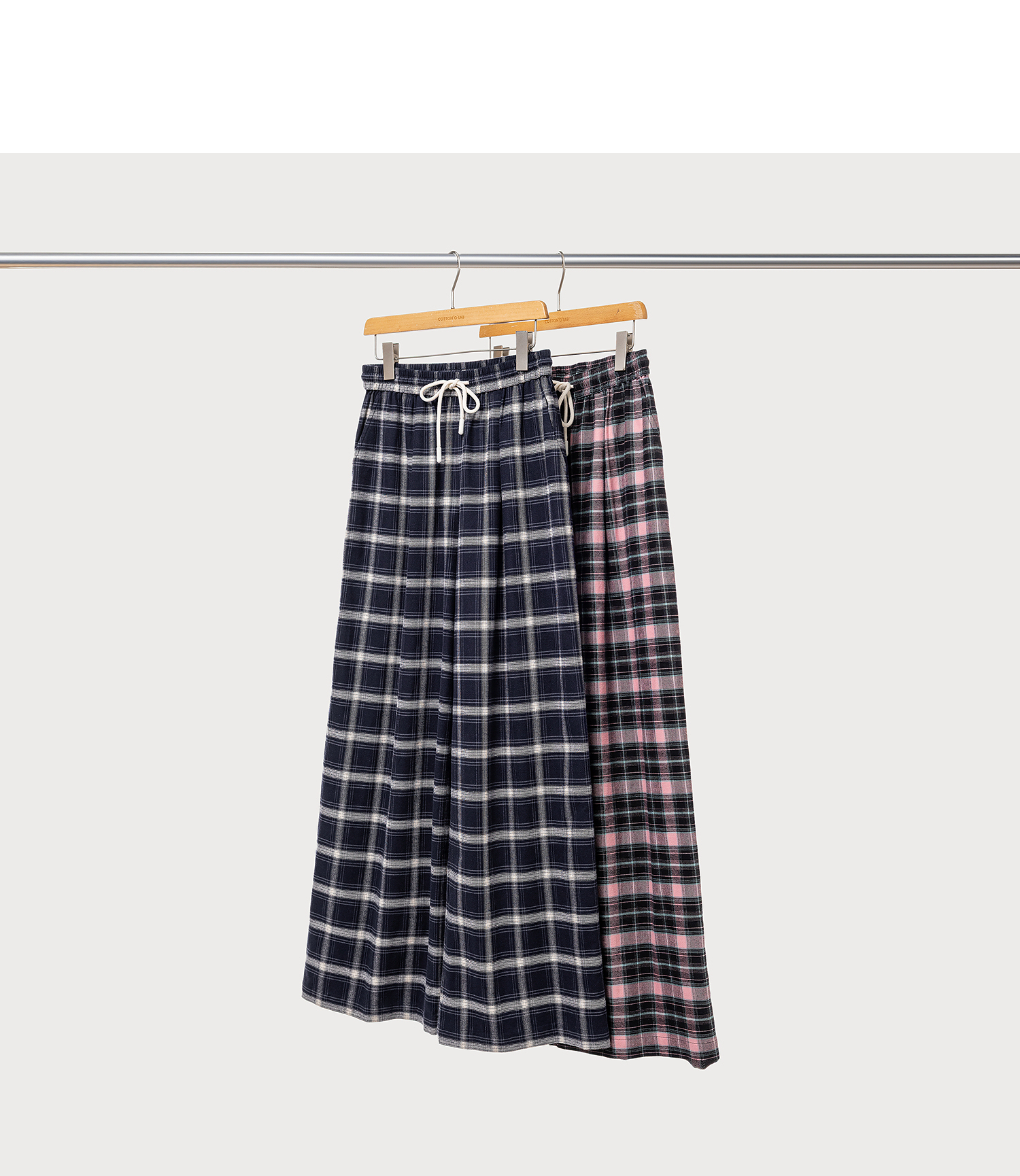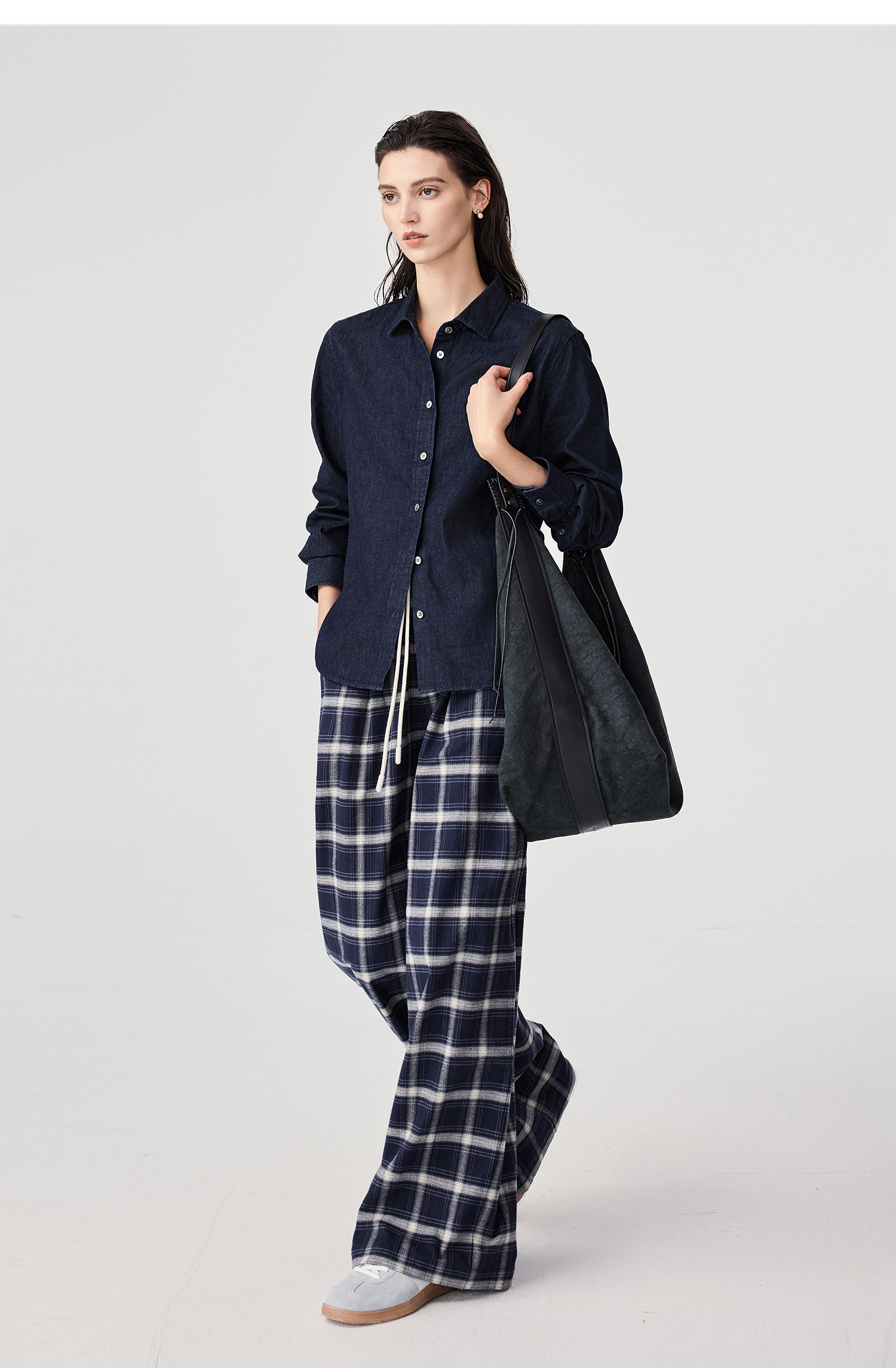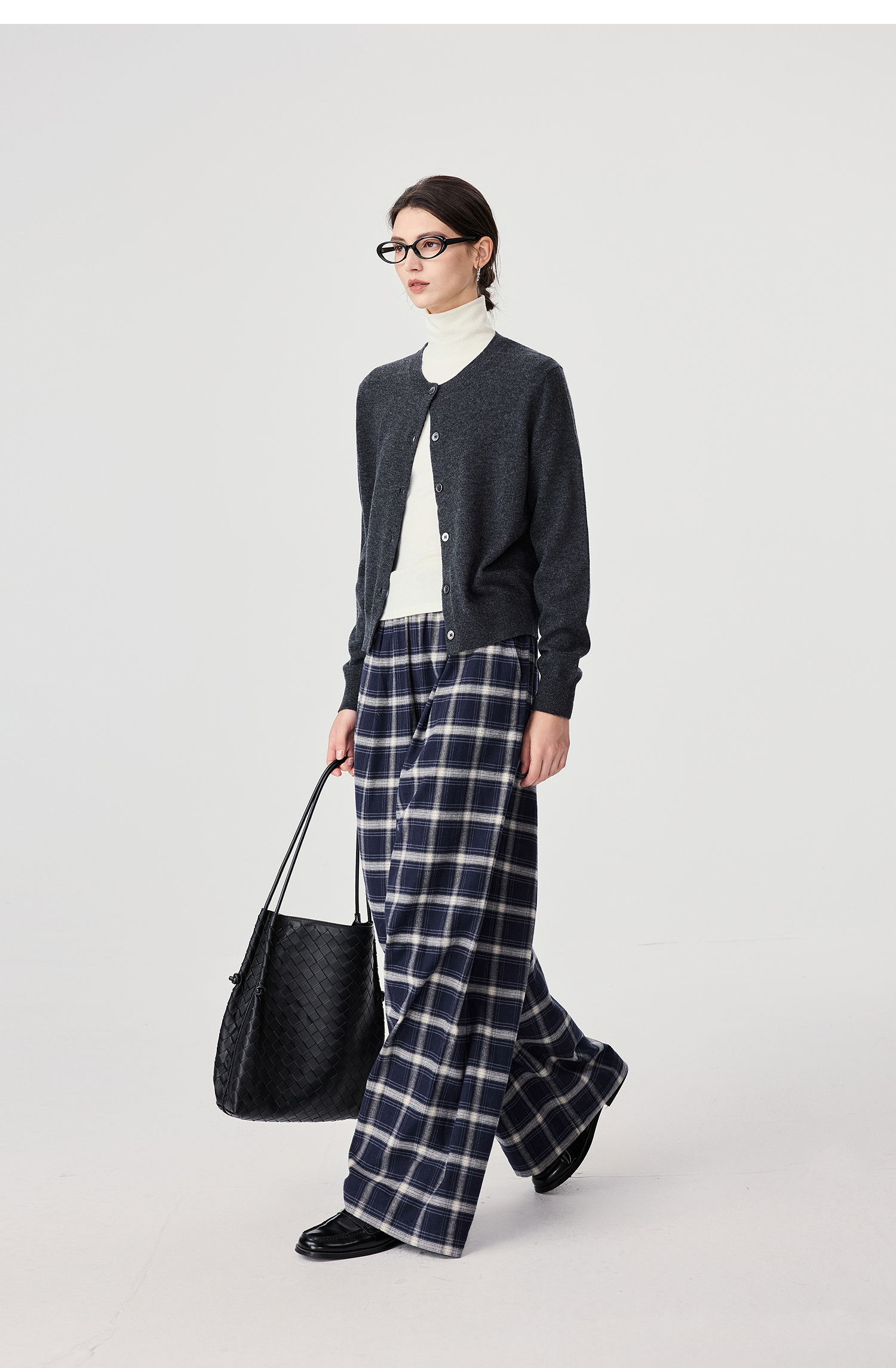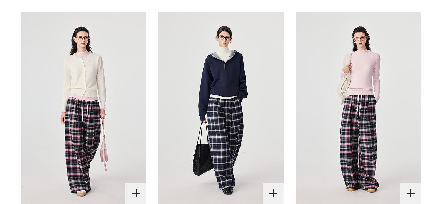 棉仓366618018-25秋绒感休闲格纹抽绳腰阔腿裤