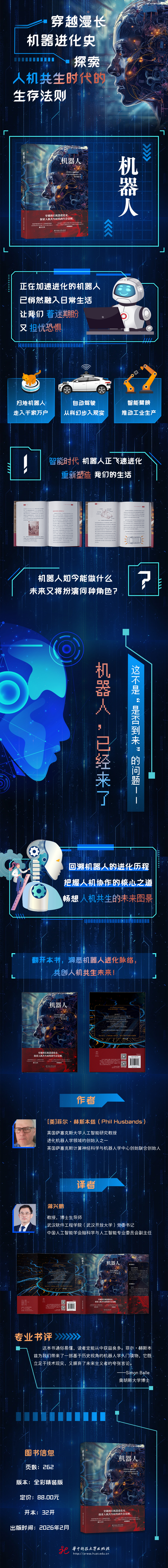③普及性。本书既回溯了机器人的前世今生,又展望了机器人的未来,是一本面向大众读者的科普读物,语言通俗易懂,没有专业背景也能轻松阅读。