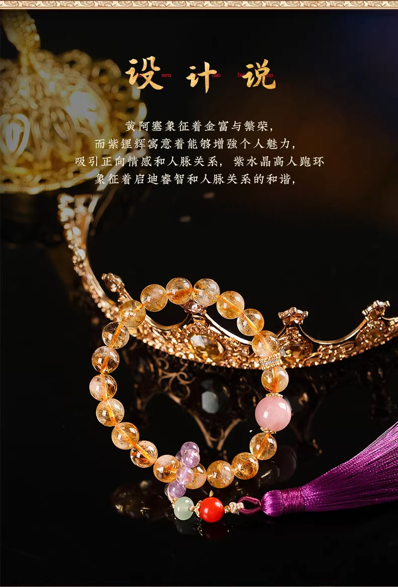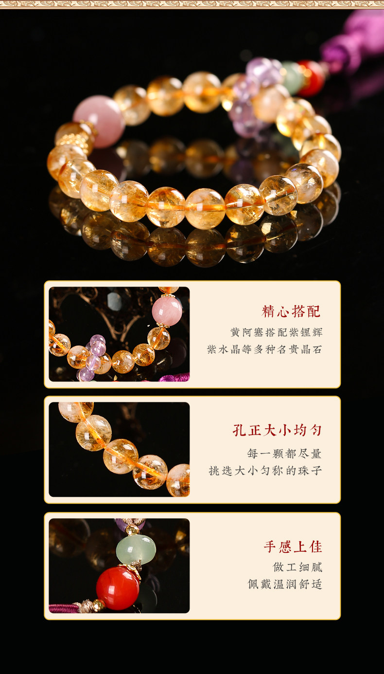 【祈愿吉品】黄阿塞手持流苏手链姻缘贵人缘手链