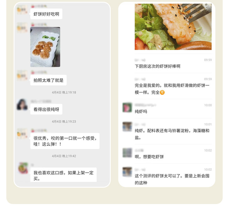 下厨房家的松叶蟹味柳和扑扑虾滑,还蛮受欢迎的哎,都是好吃又方便的肉肉,很适合小朋友和减脂控卡人!其实他家的扑扑虾饼我也已经默默吃很久了,就也更一下下,和虾滑一样,都是啖啖虾肉,区别就是,它已经塑形完成,都是一张一张小圆饼子,不用解冻就可煎可烤可煮,更快手些!