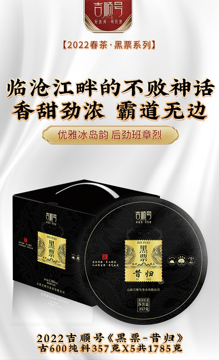 吉顺号普洱茶2022年古600黑票昔归临沧云南古树普洱茶生茶饼357g/饼
