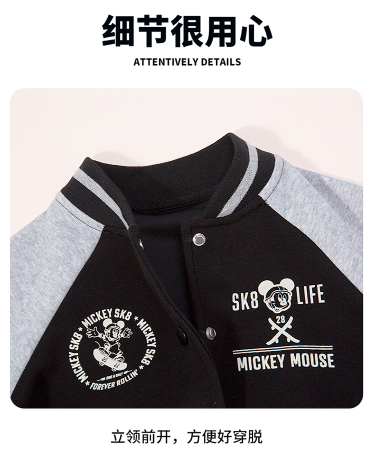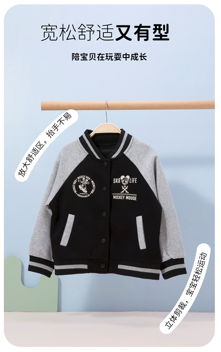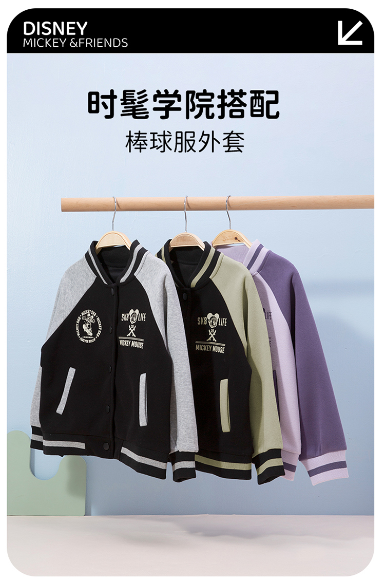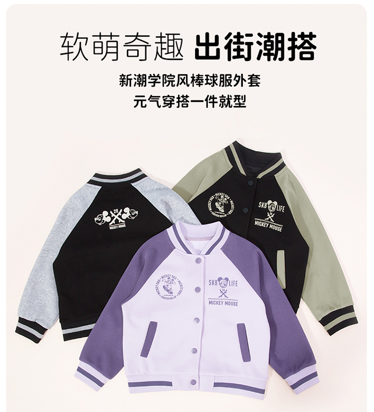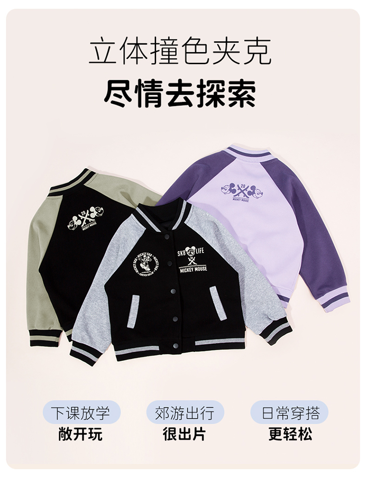 迪士尼【撞色棒球服】24秋季新款男童外套中大童运动休闲夹克百搭开衫HSND24050