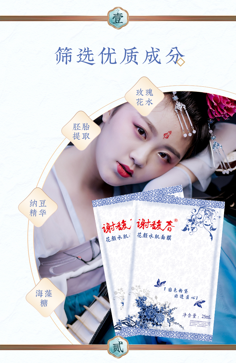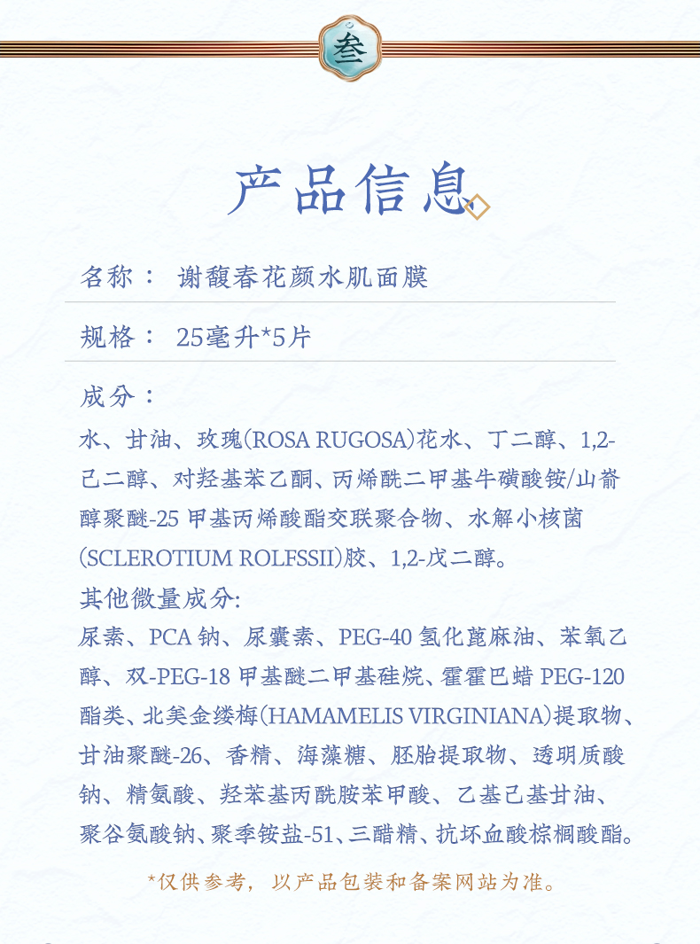 【拍同款,买三送一】谢馥春花颜水肌面膜 5片