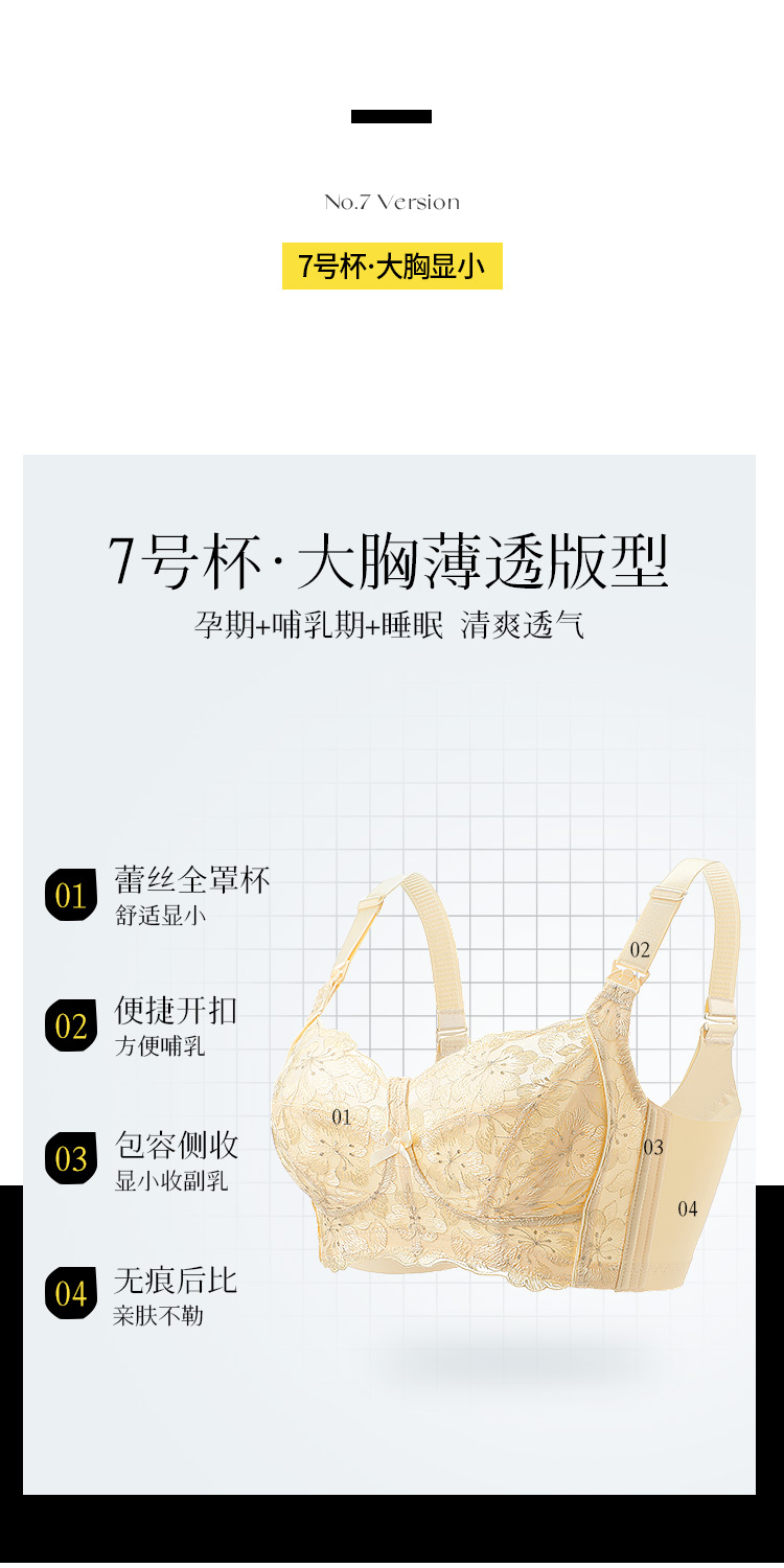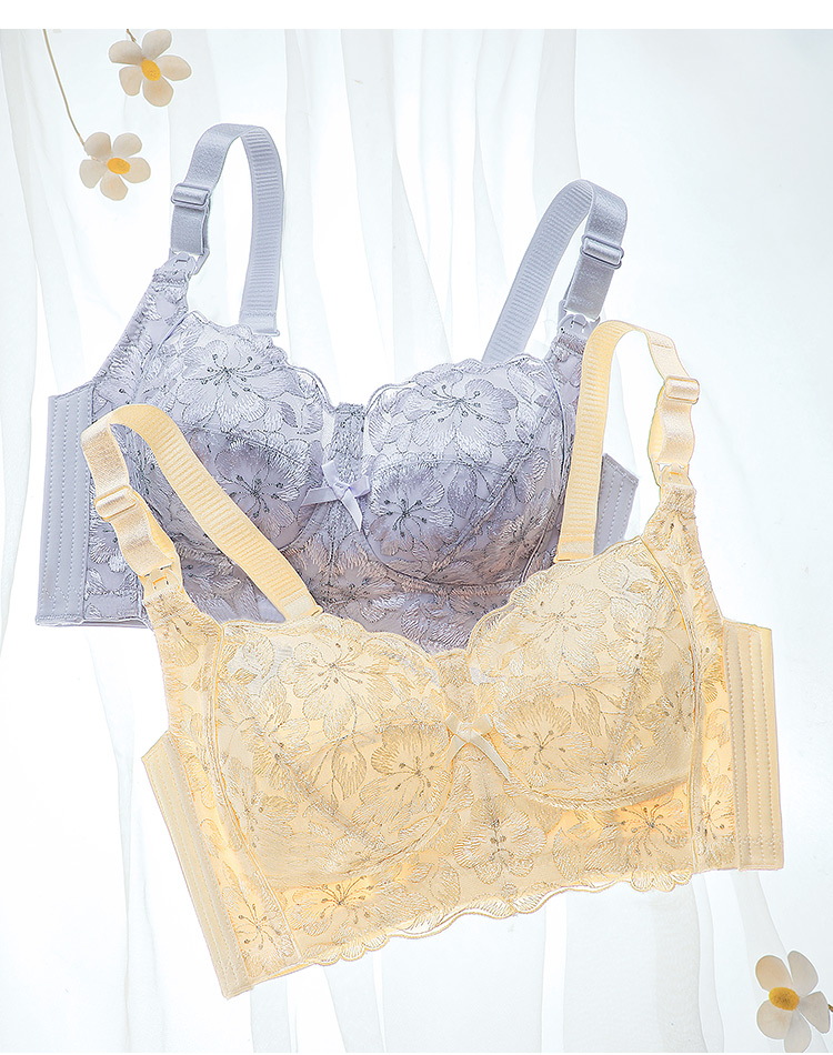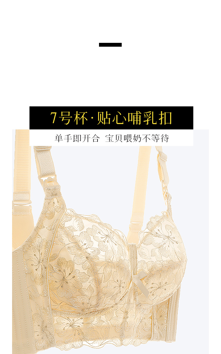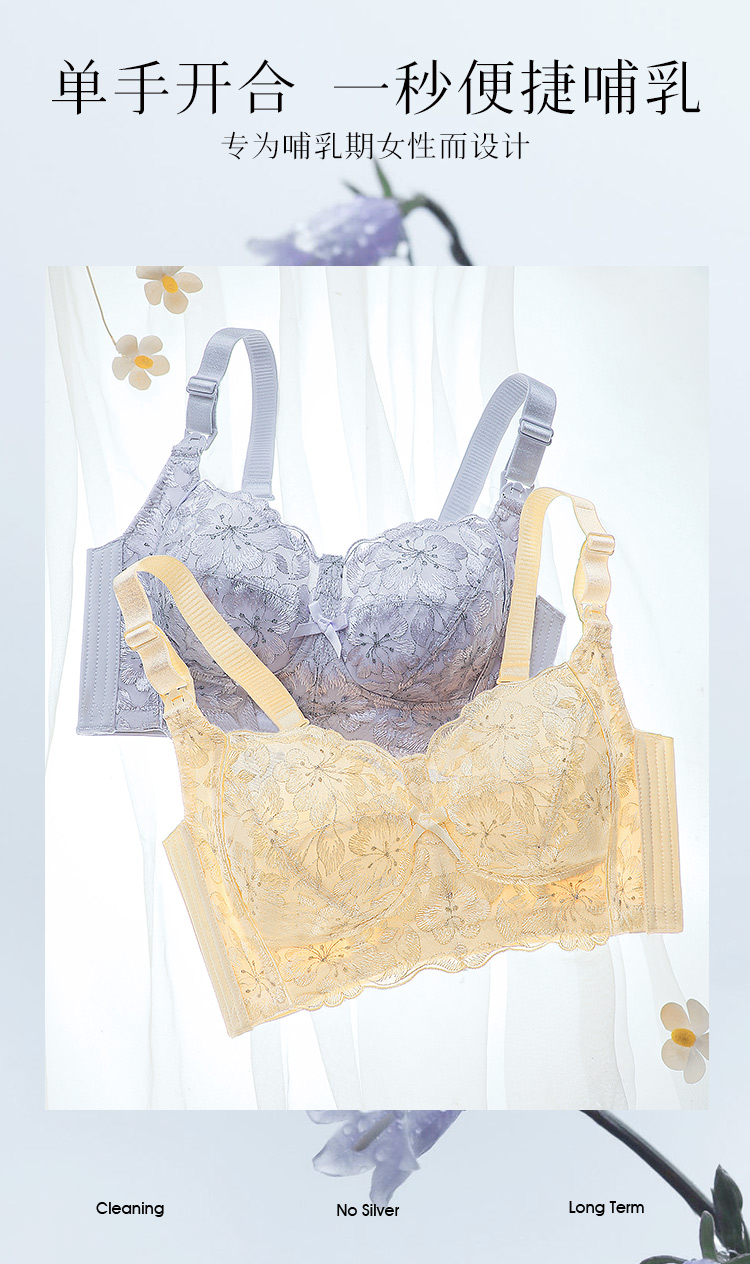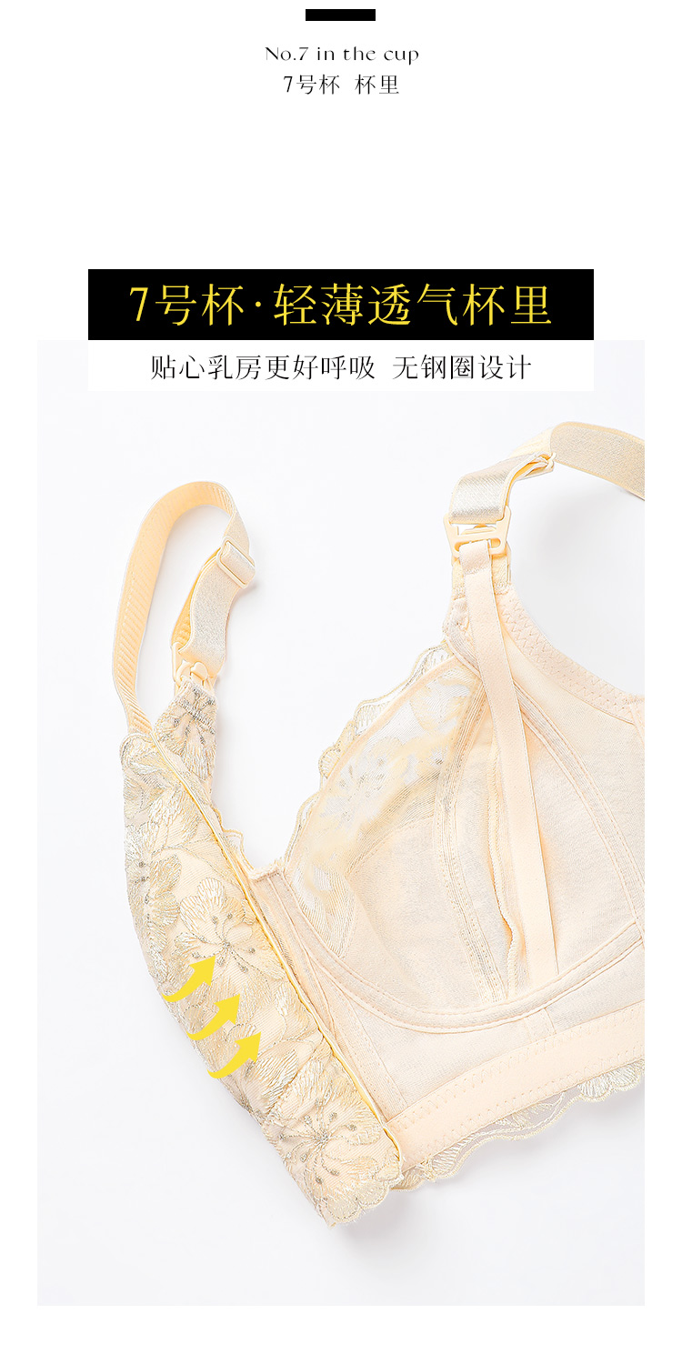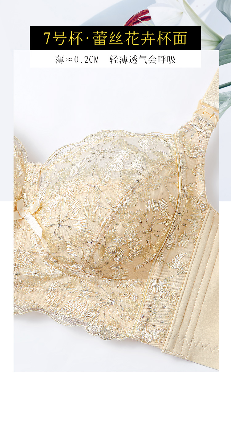 D2-【B-E杯】孕妇内衣哺乳文胸薄款无钢圈防下垂产后喂奶便捷肩搭扣哺乳内衣女 桃花绿水【大胸-蕾丝】
