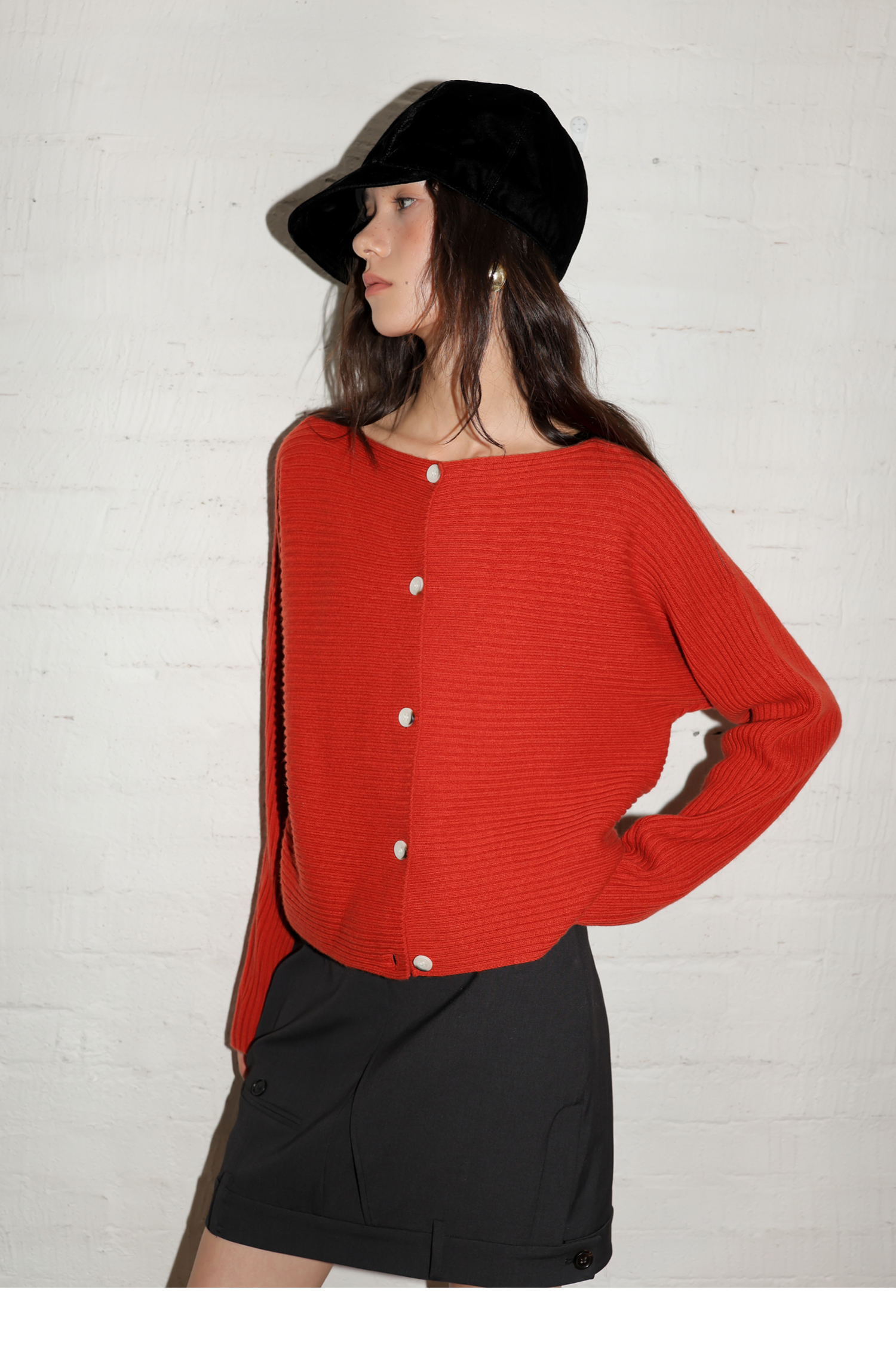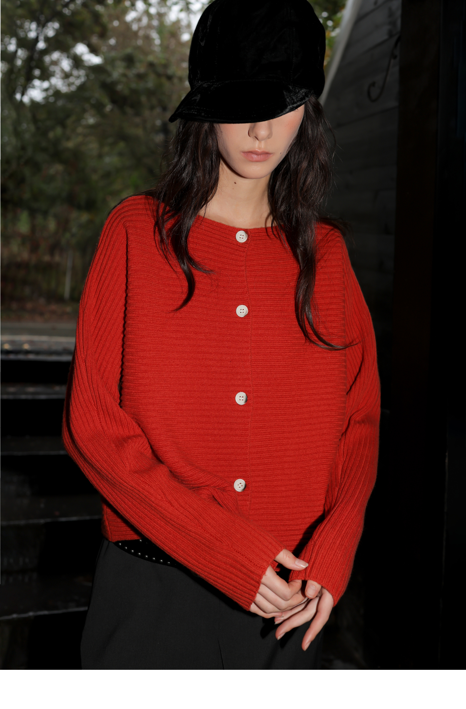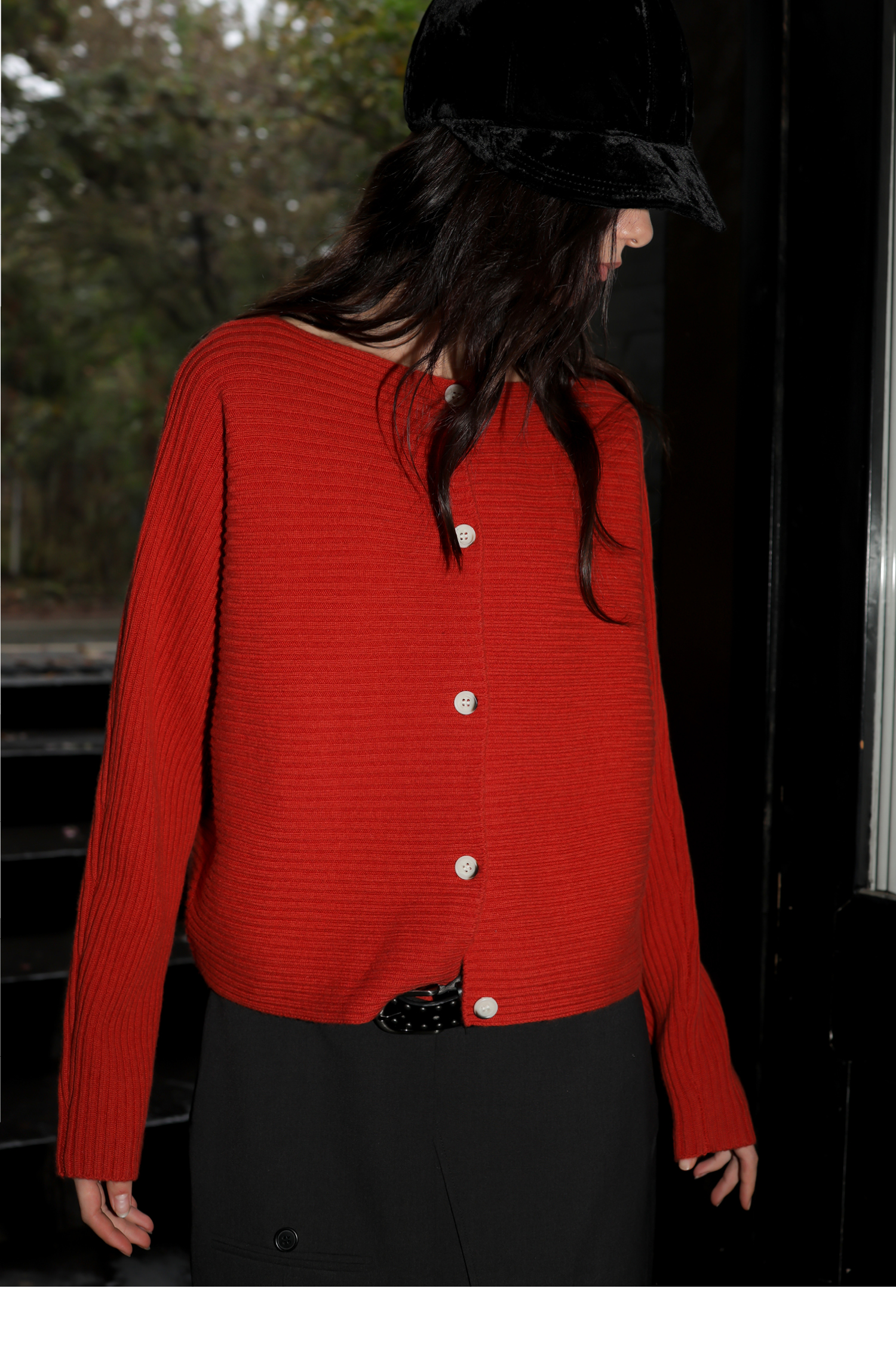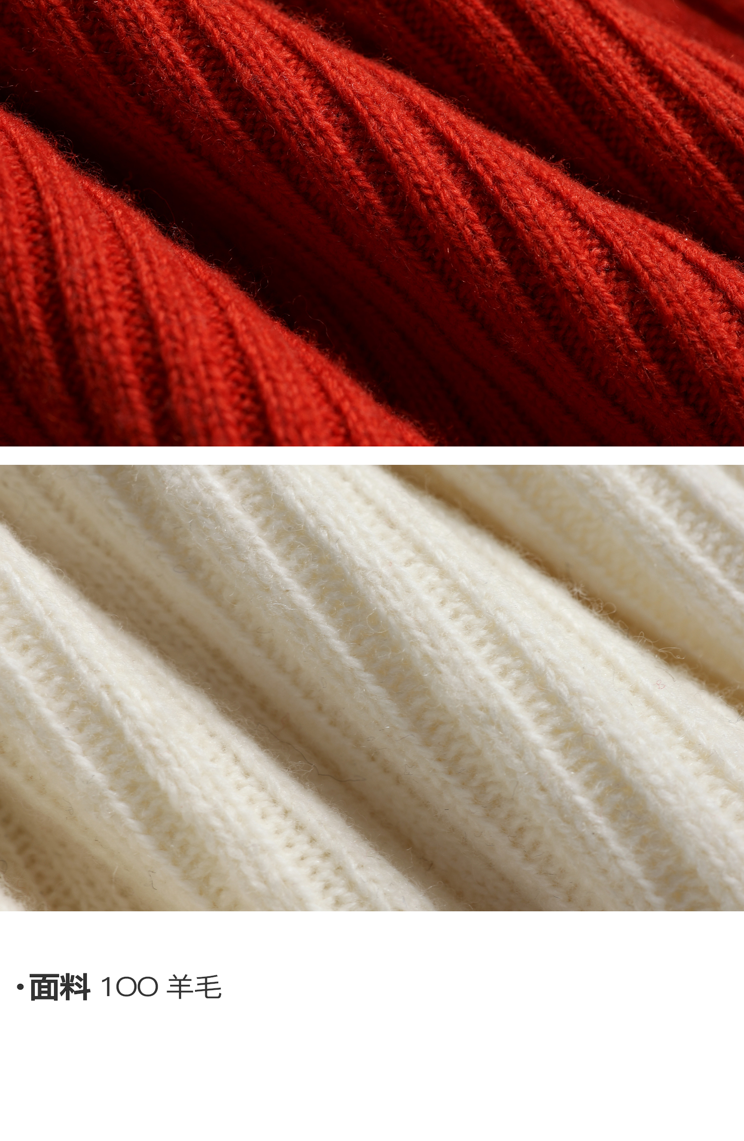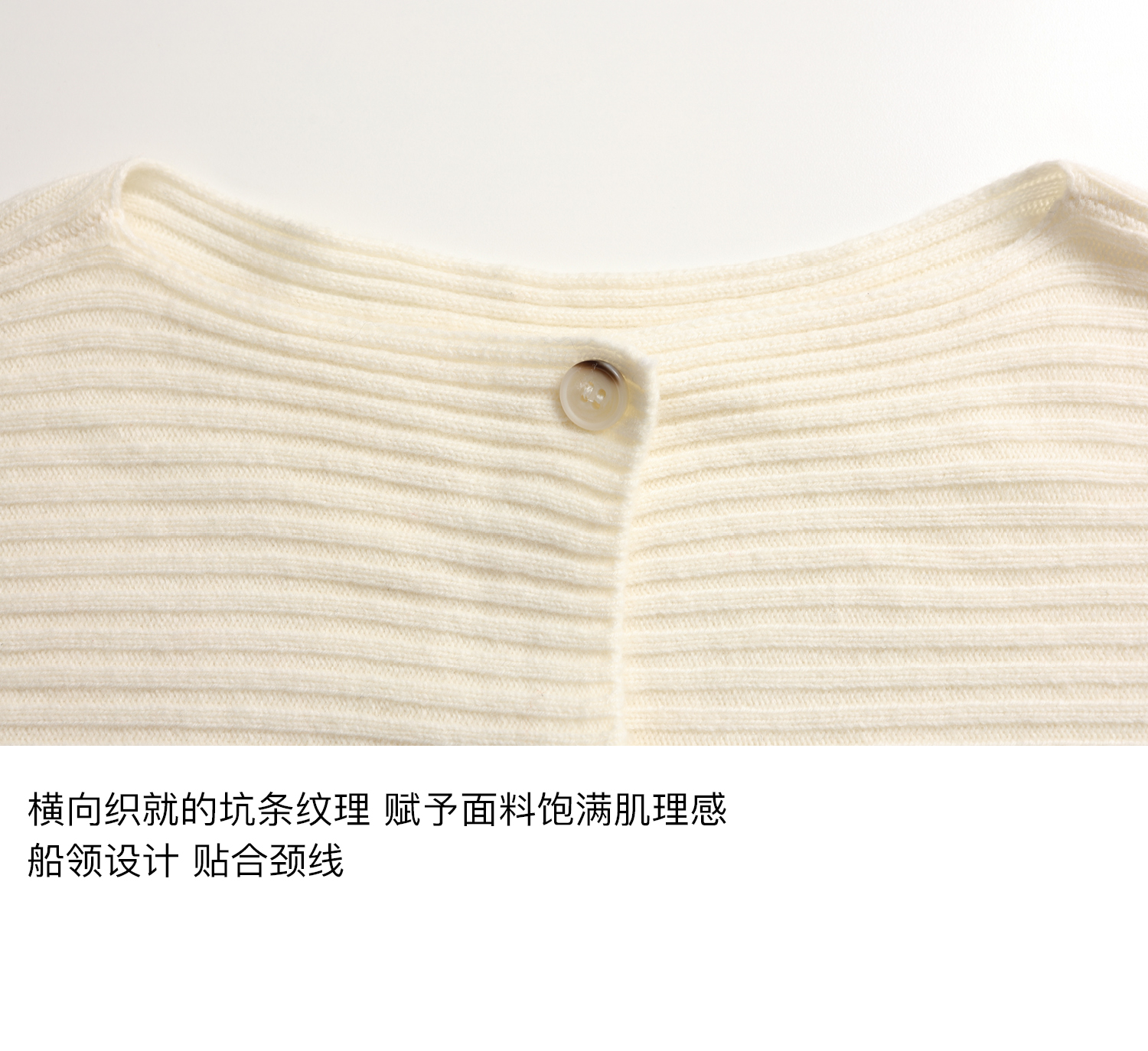 素舶 美利奴羊毛老钱正反两穿显瘦舒适亲肤坑条船领针织套衫