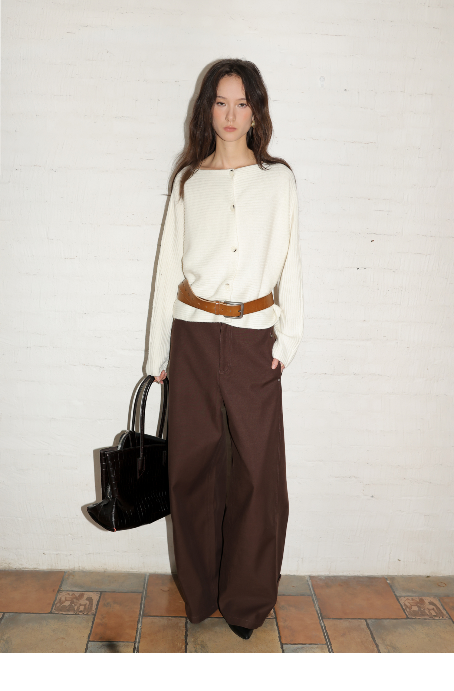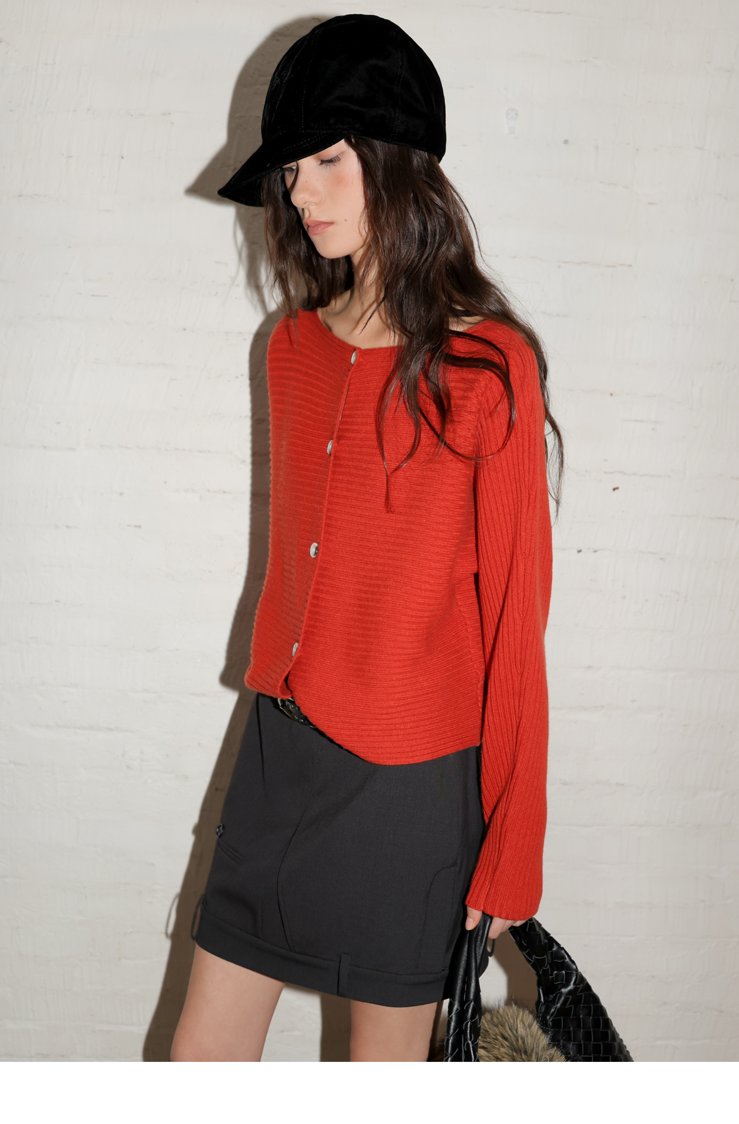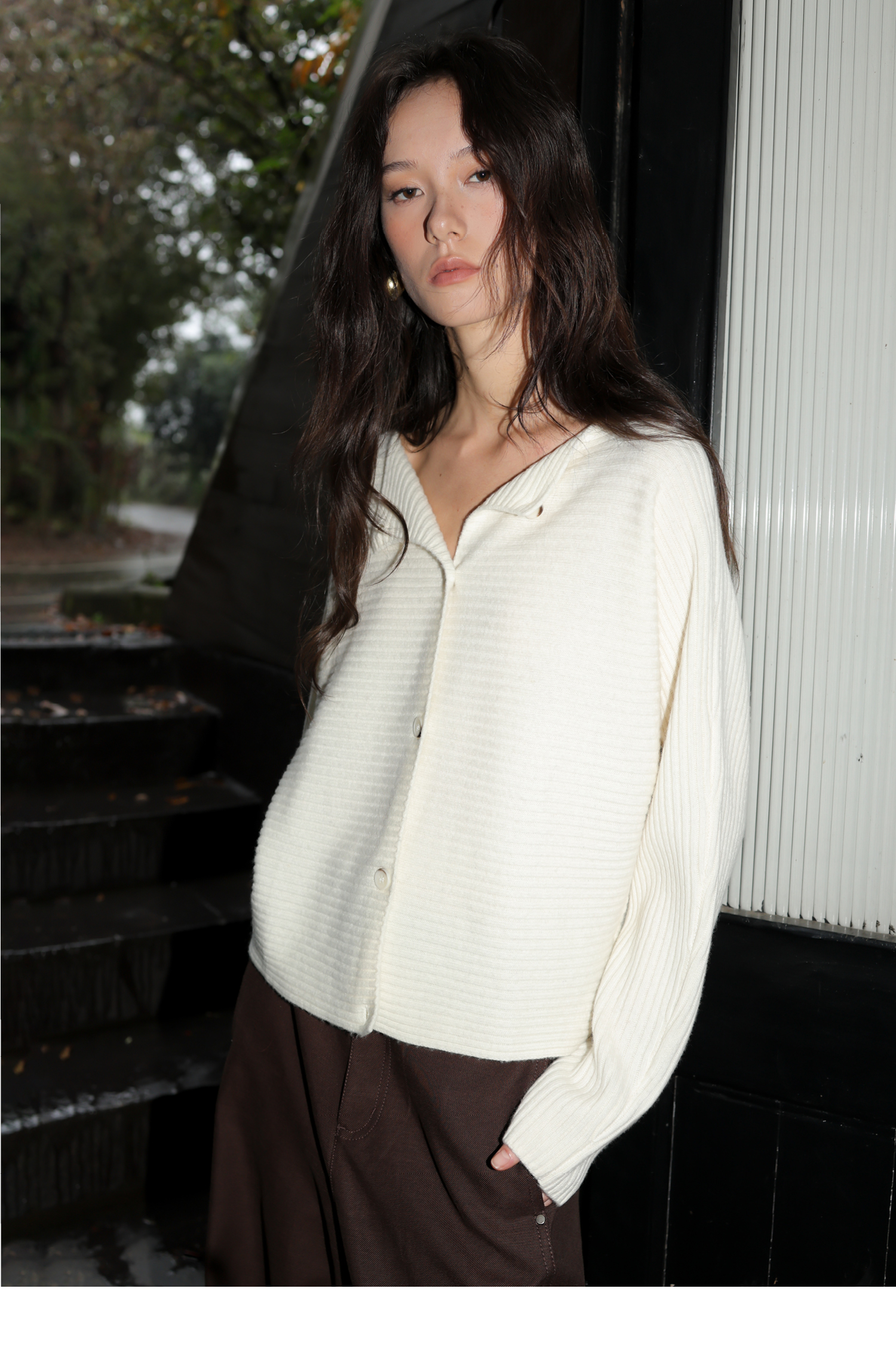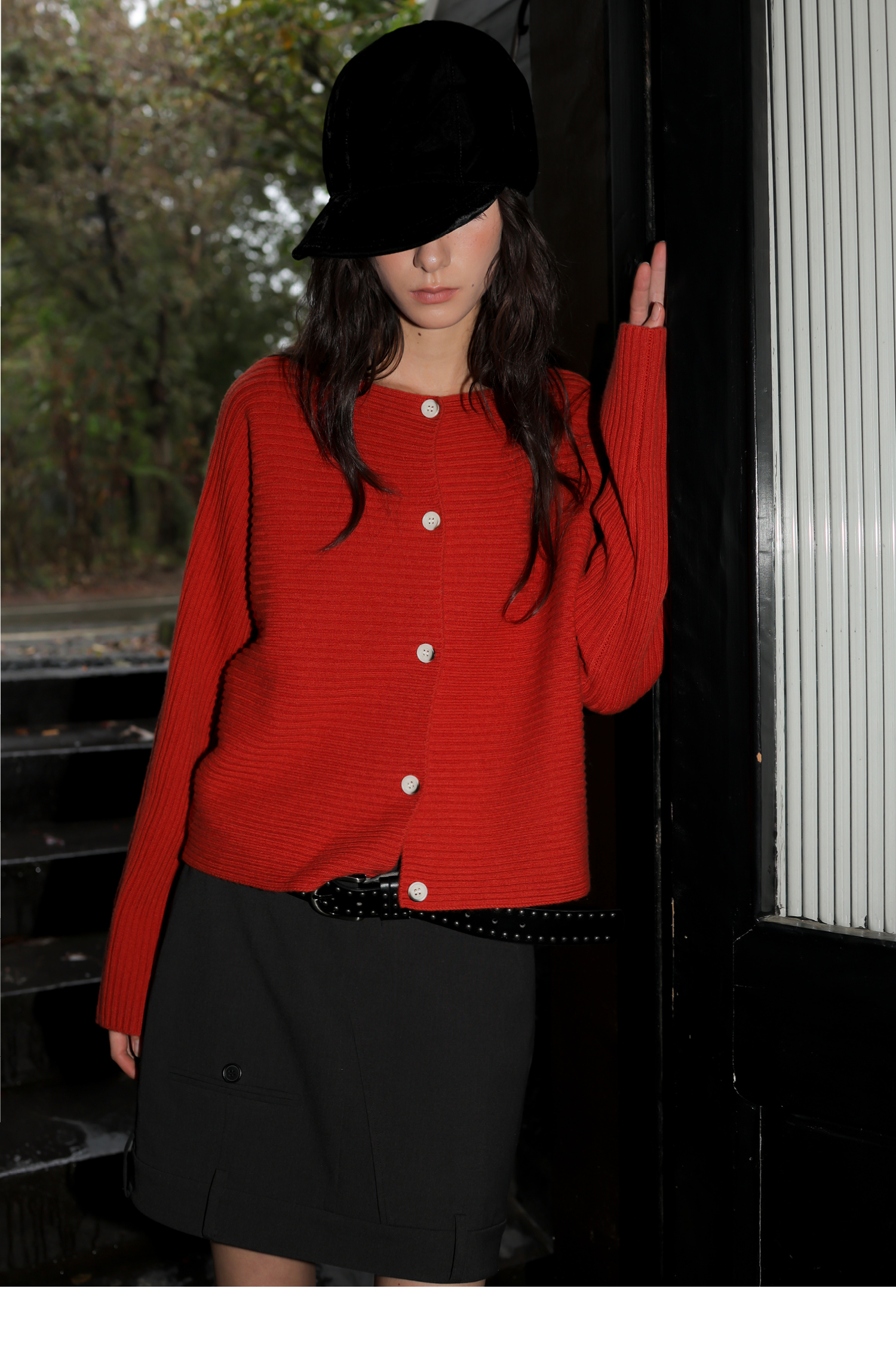 素舶 美利奴羊毛老钱正反两穿显瘦舒适亲肤坑条船领针织套衫