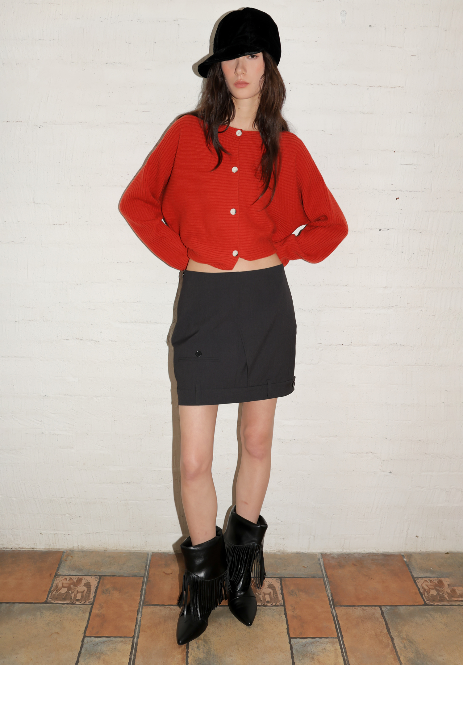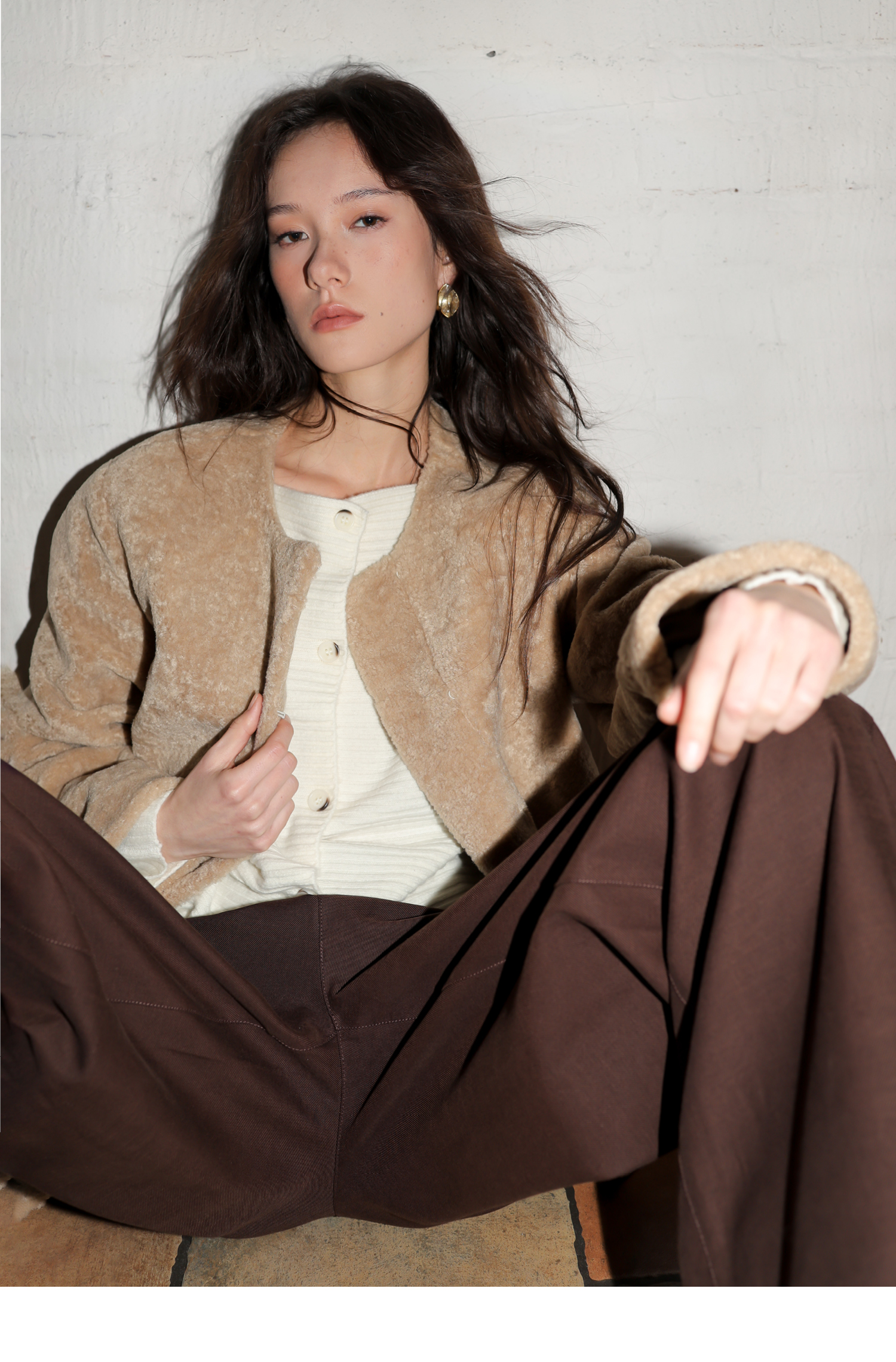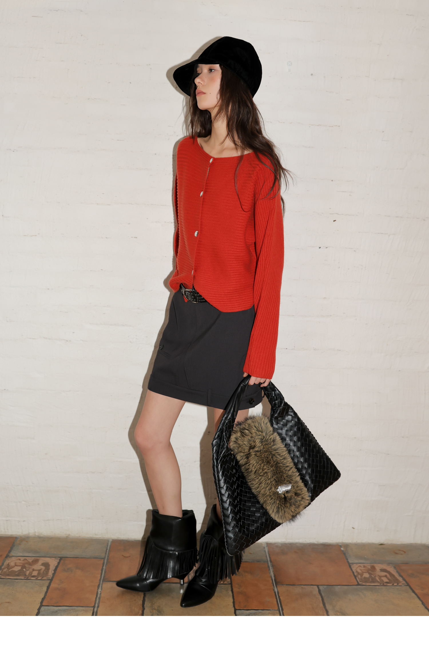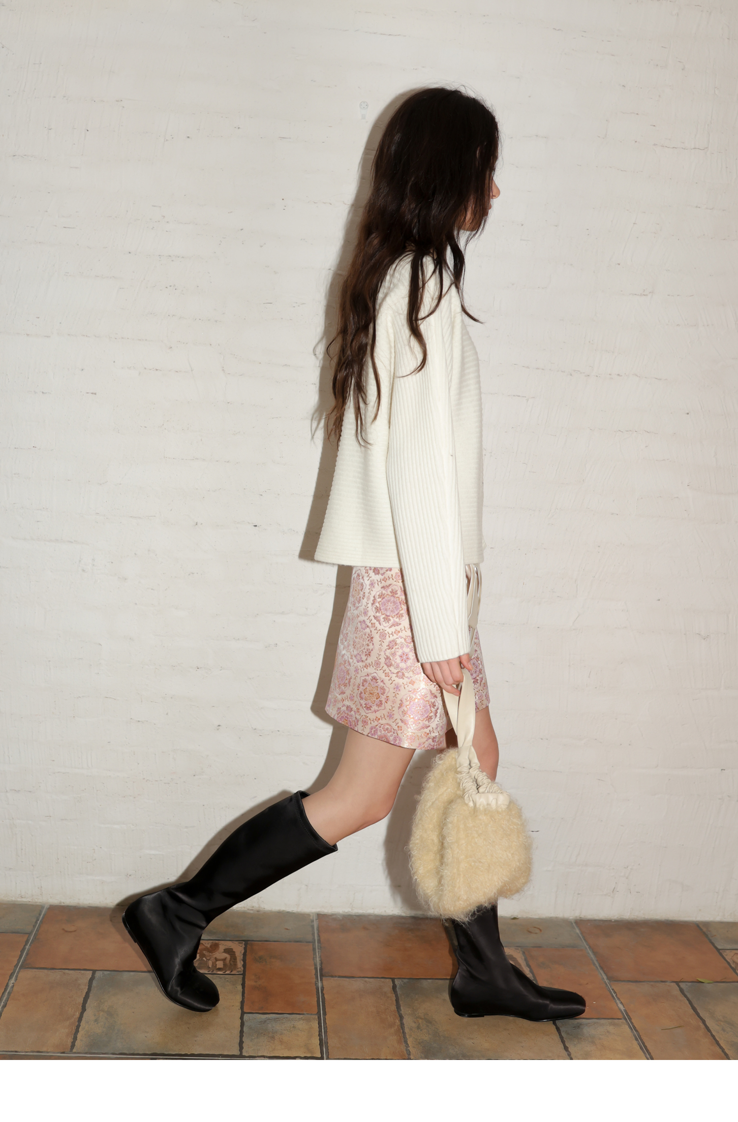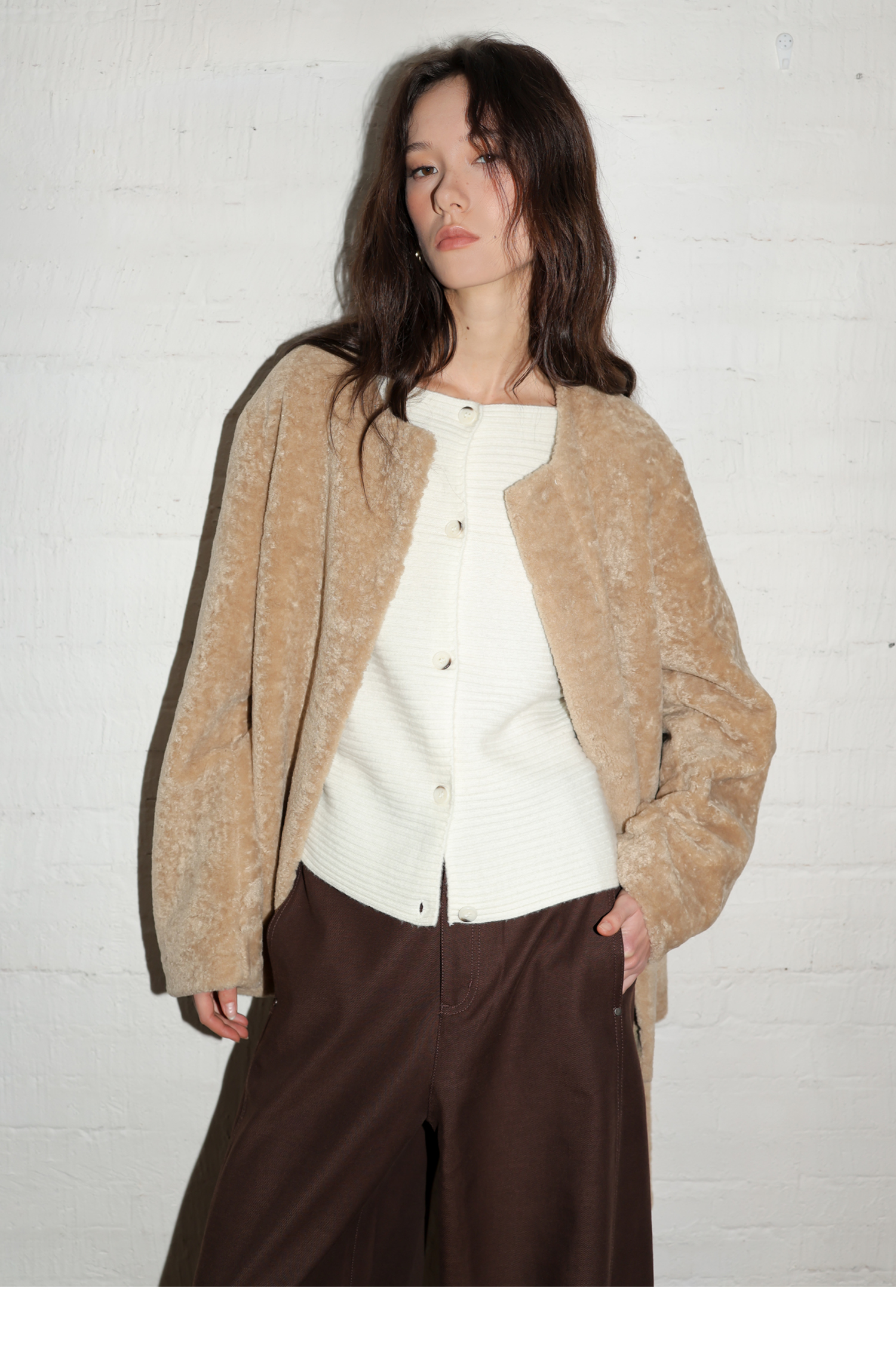 素舶 美利奴羊毛老钱正反两穿显瘦舒适亲肤坑条船领针织套衫