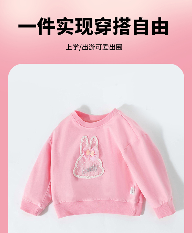 贝贝怡童装女童卫衣秋装2024新款洋气上衣儿童长袖纯棉春秋打底衫ZB3DS006