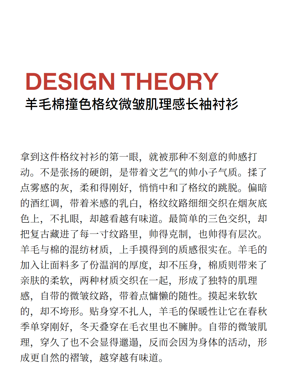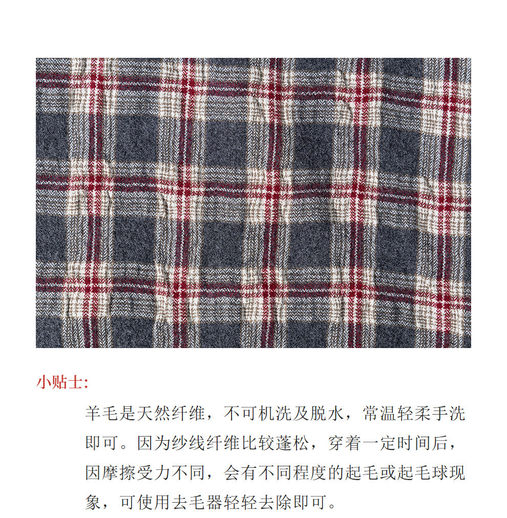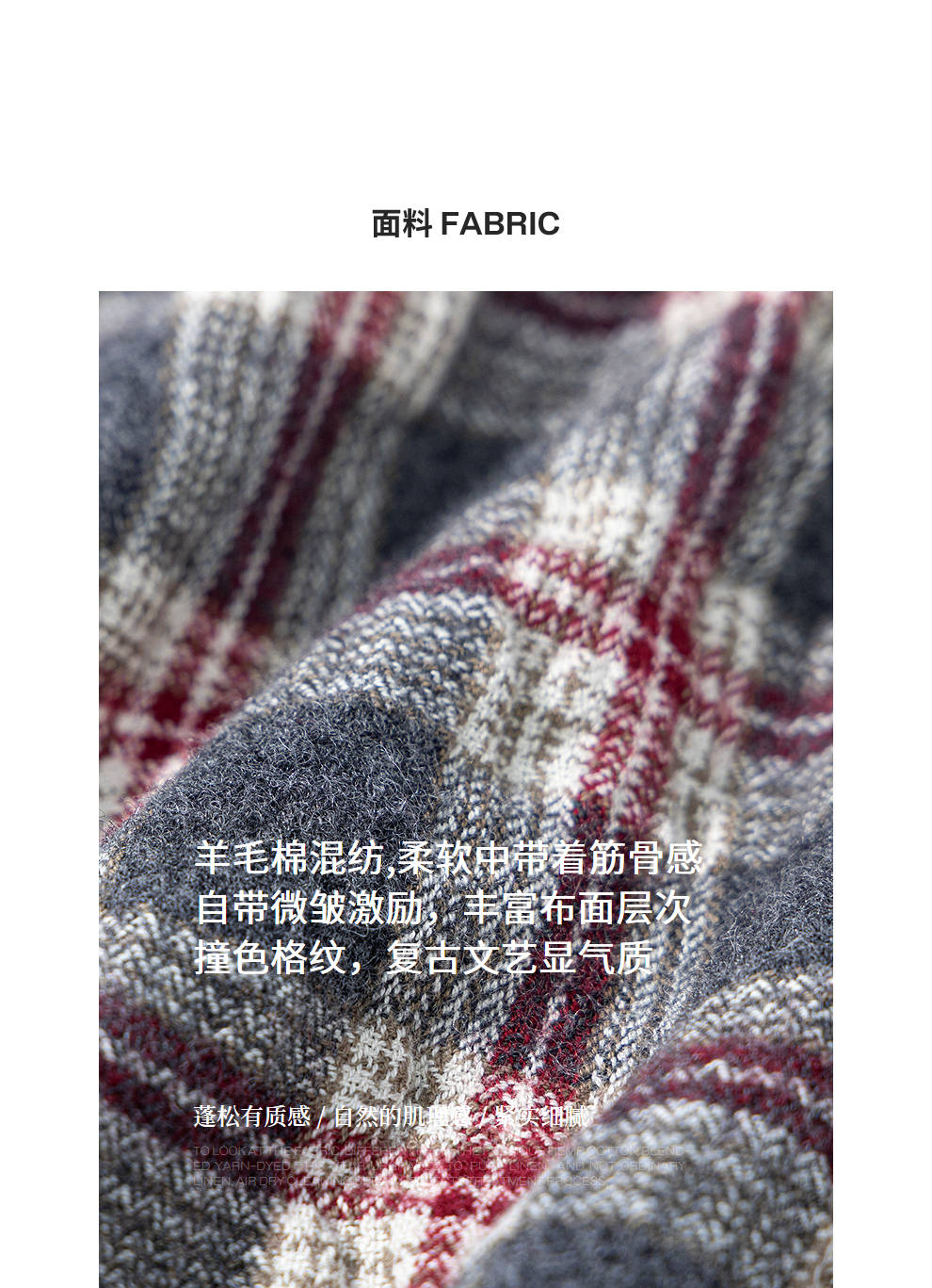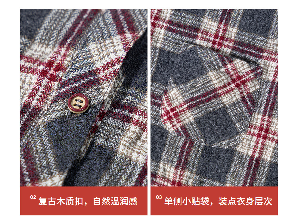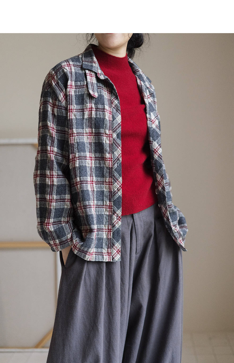 绽放839朵/羊毛棉撞色格纹微皱肌理感长袖衬衫女文艺百搭立领衬衣