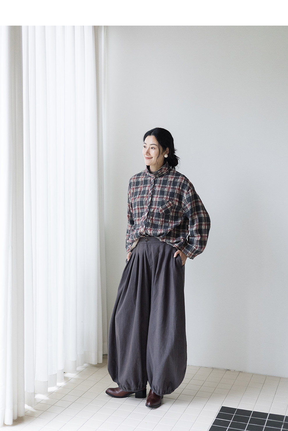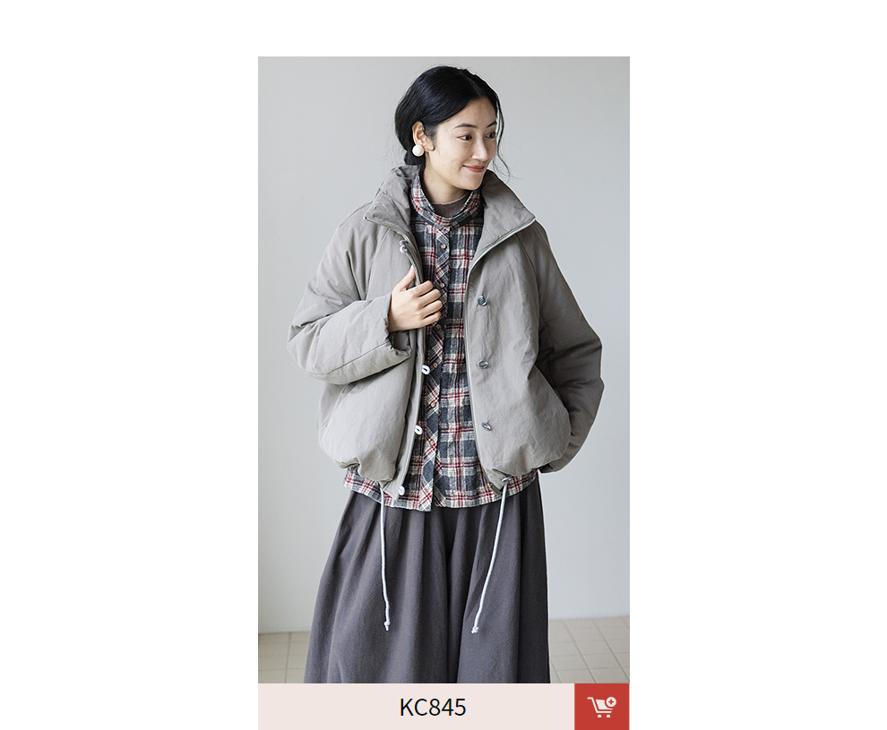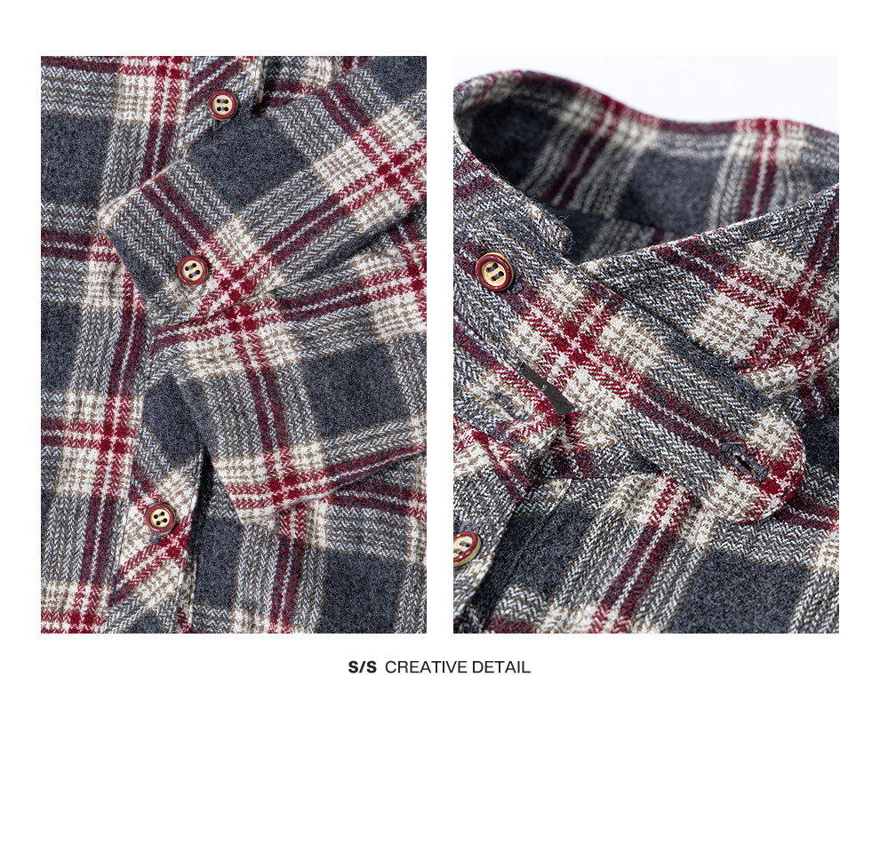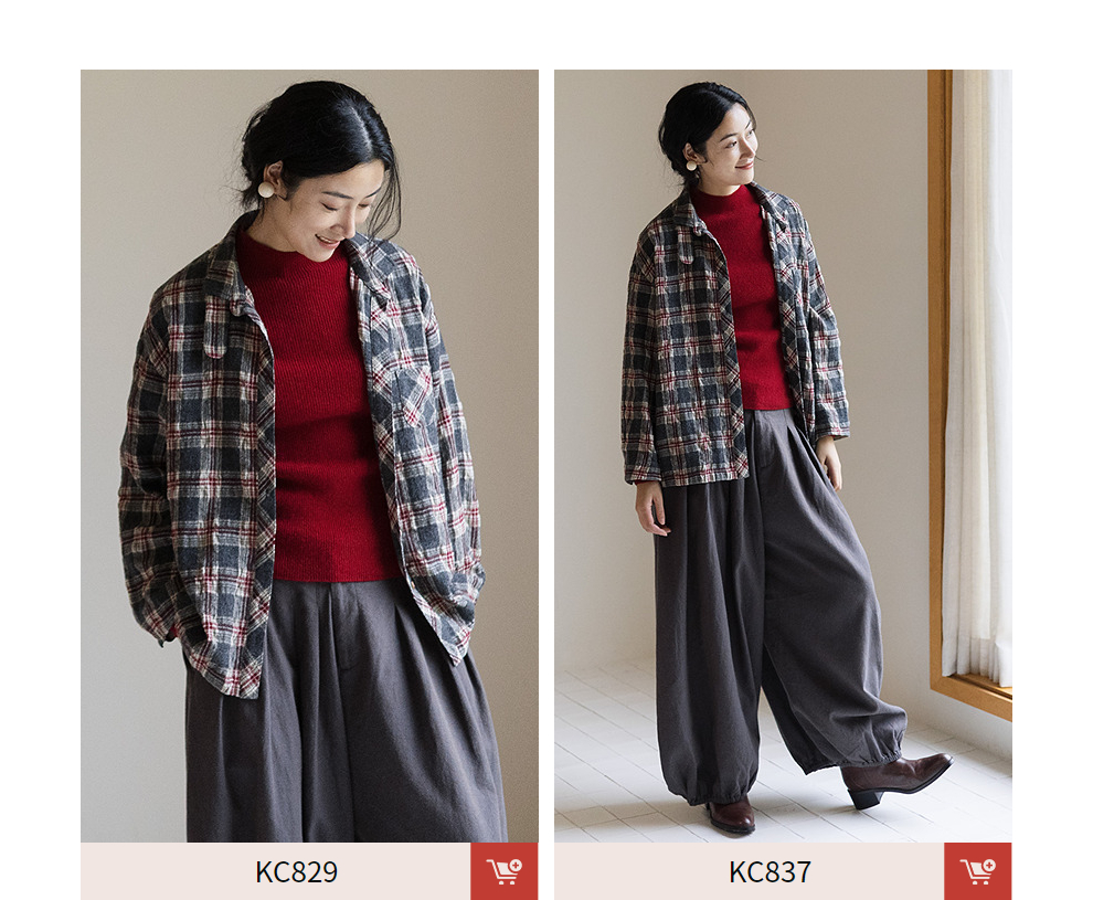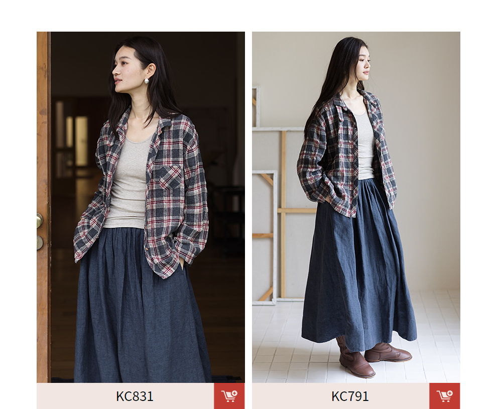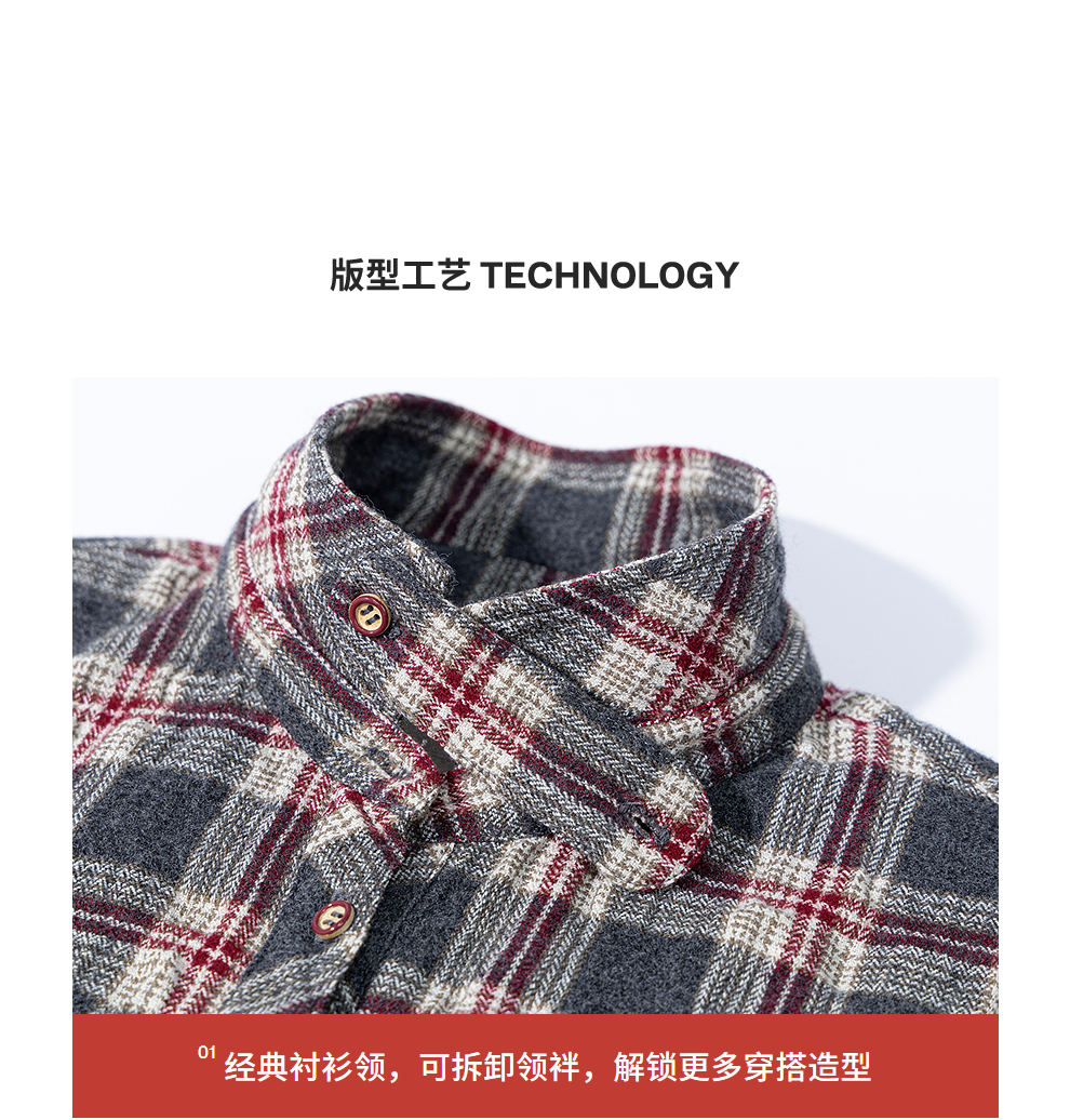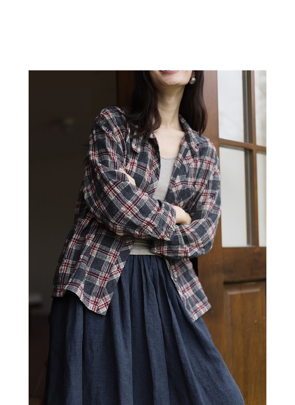 绽放839朵/羊毛棉撞色格纹微皱肌理感长袖衬衫女文艺百搭立领衬衣