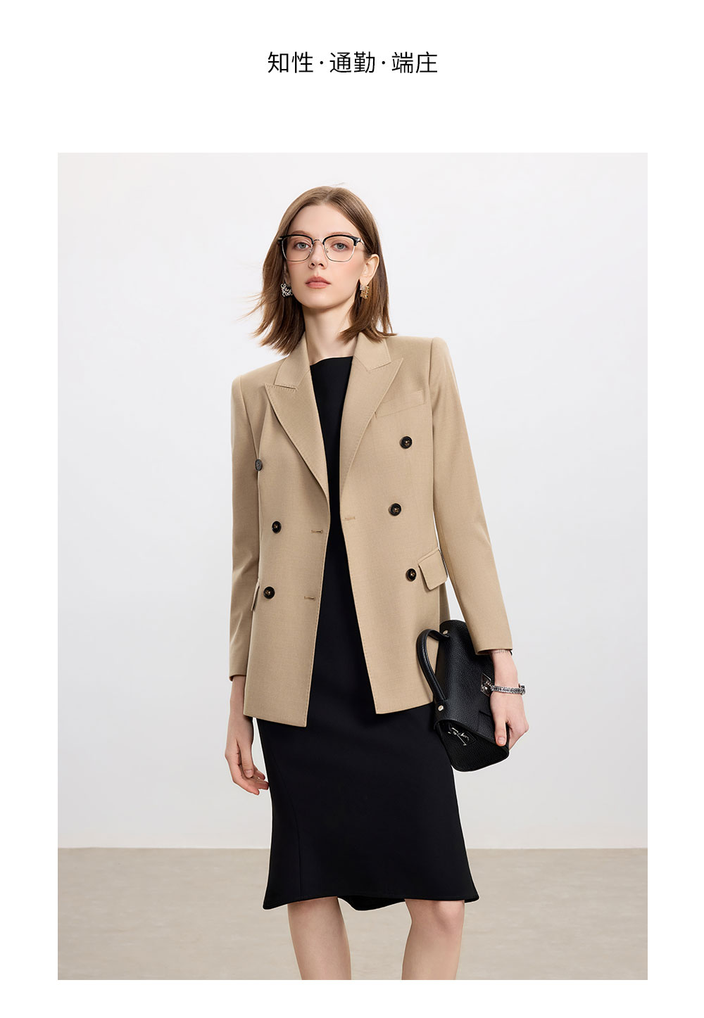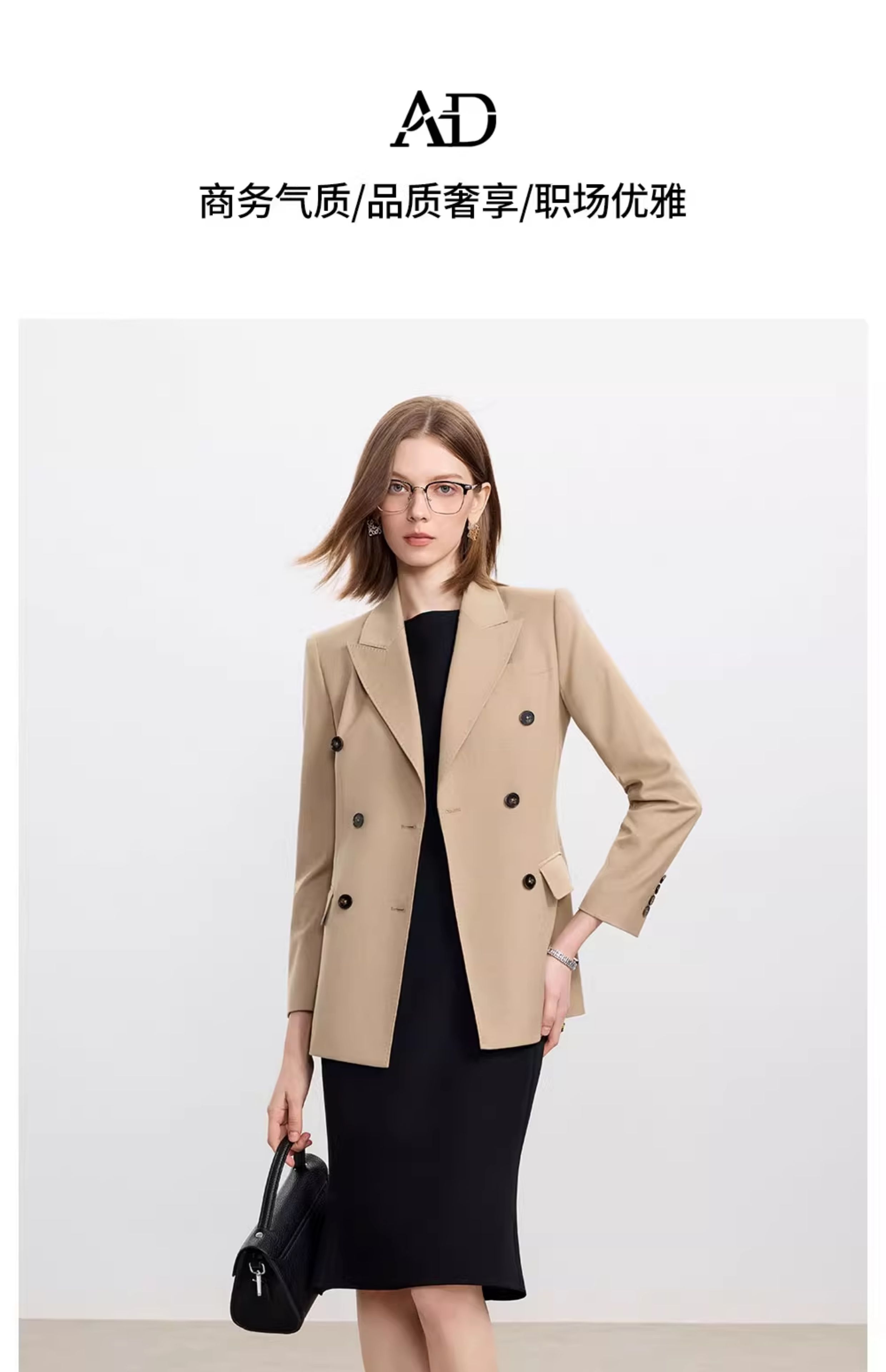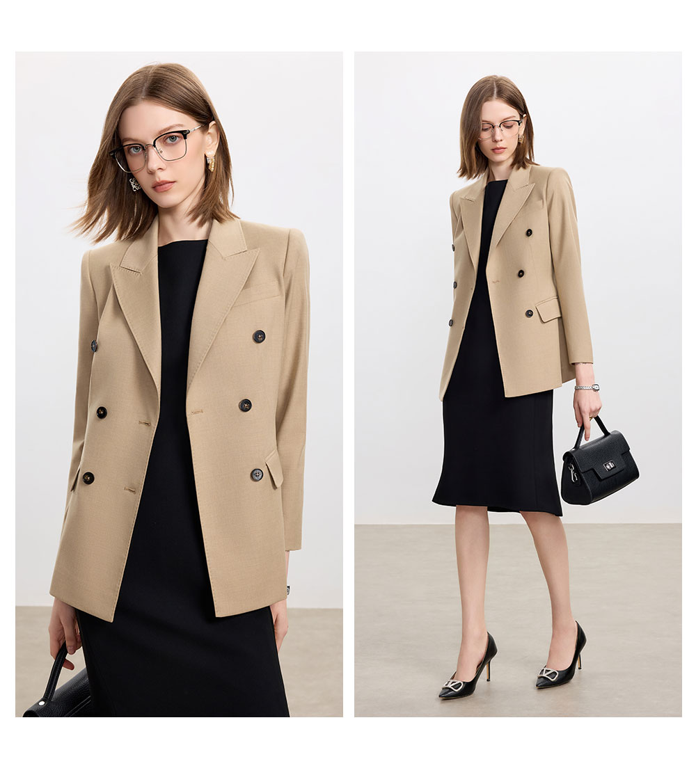 AD卡其色天丝羊毛西服女套装高级感搭配两件套无袖连衣裙2025新款