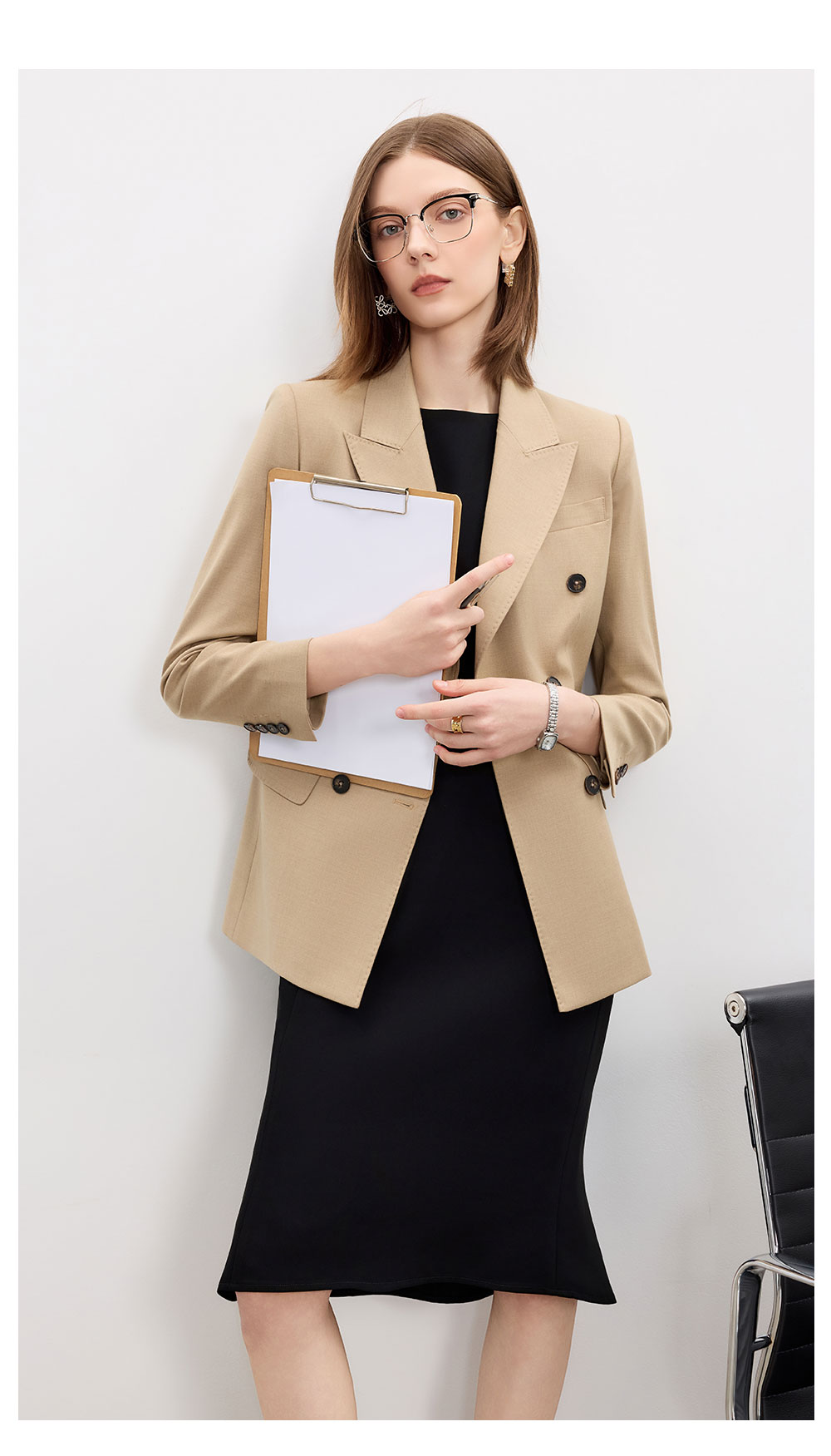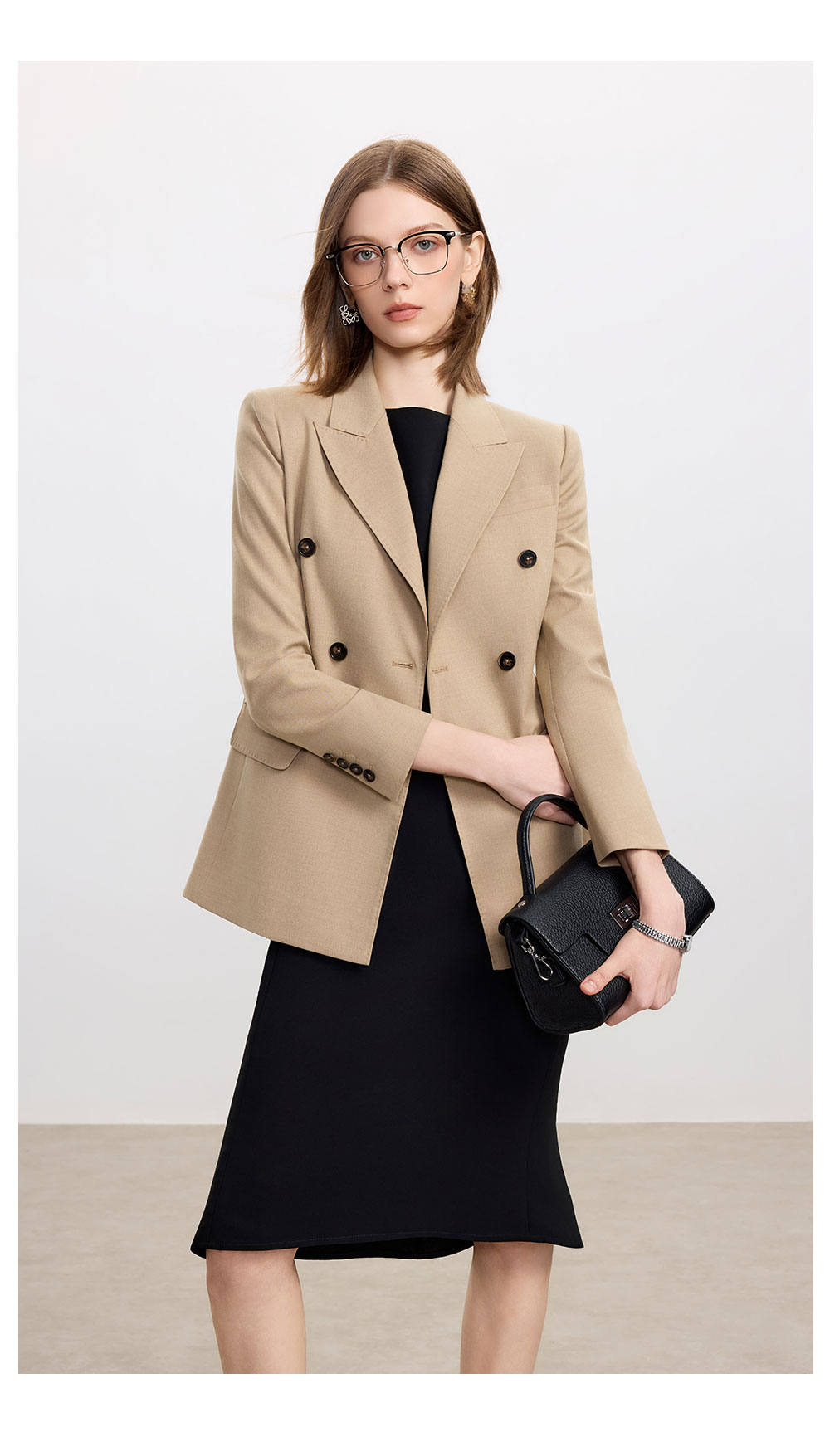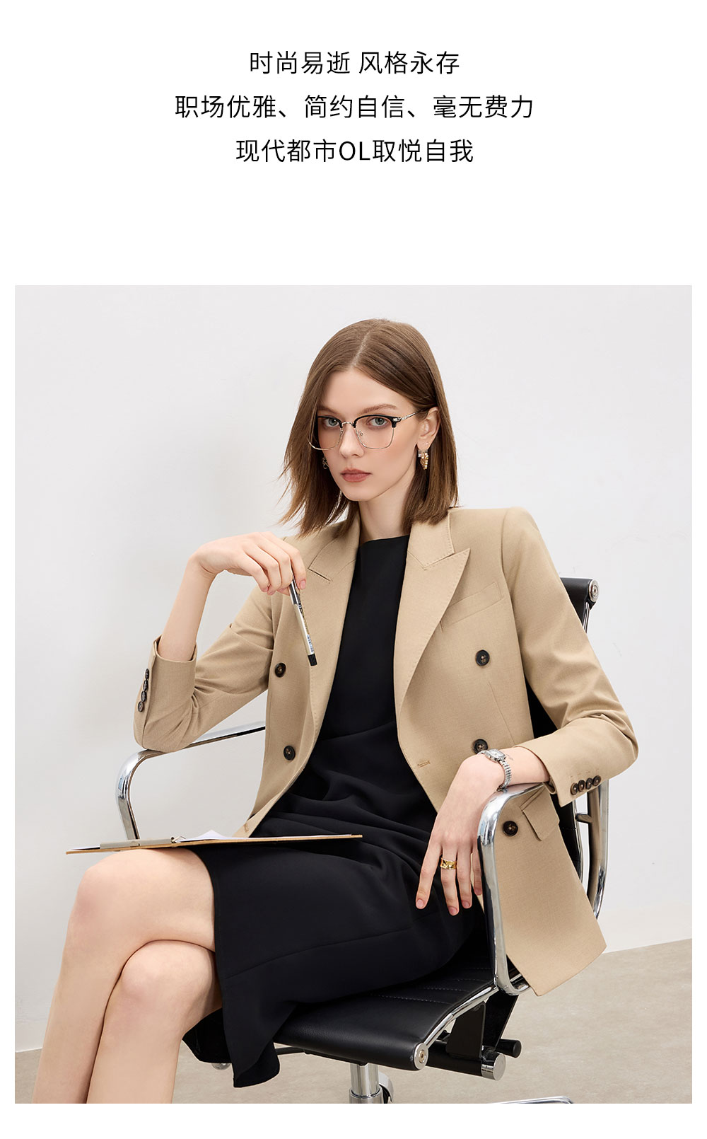 AD卡其色天丝羊毛西服女套装高级感搭配两件套无袖连衣裙2025新款