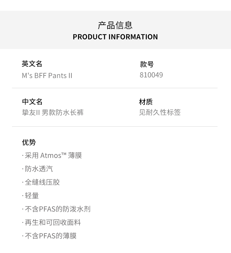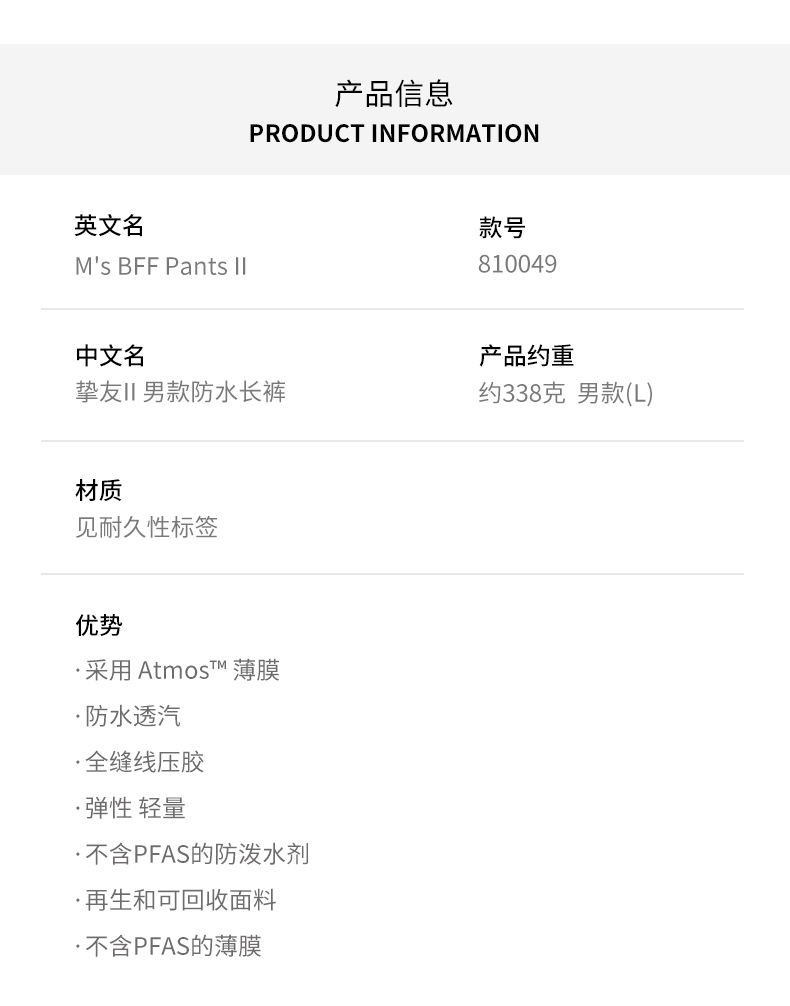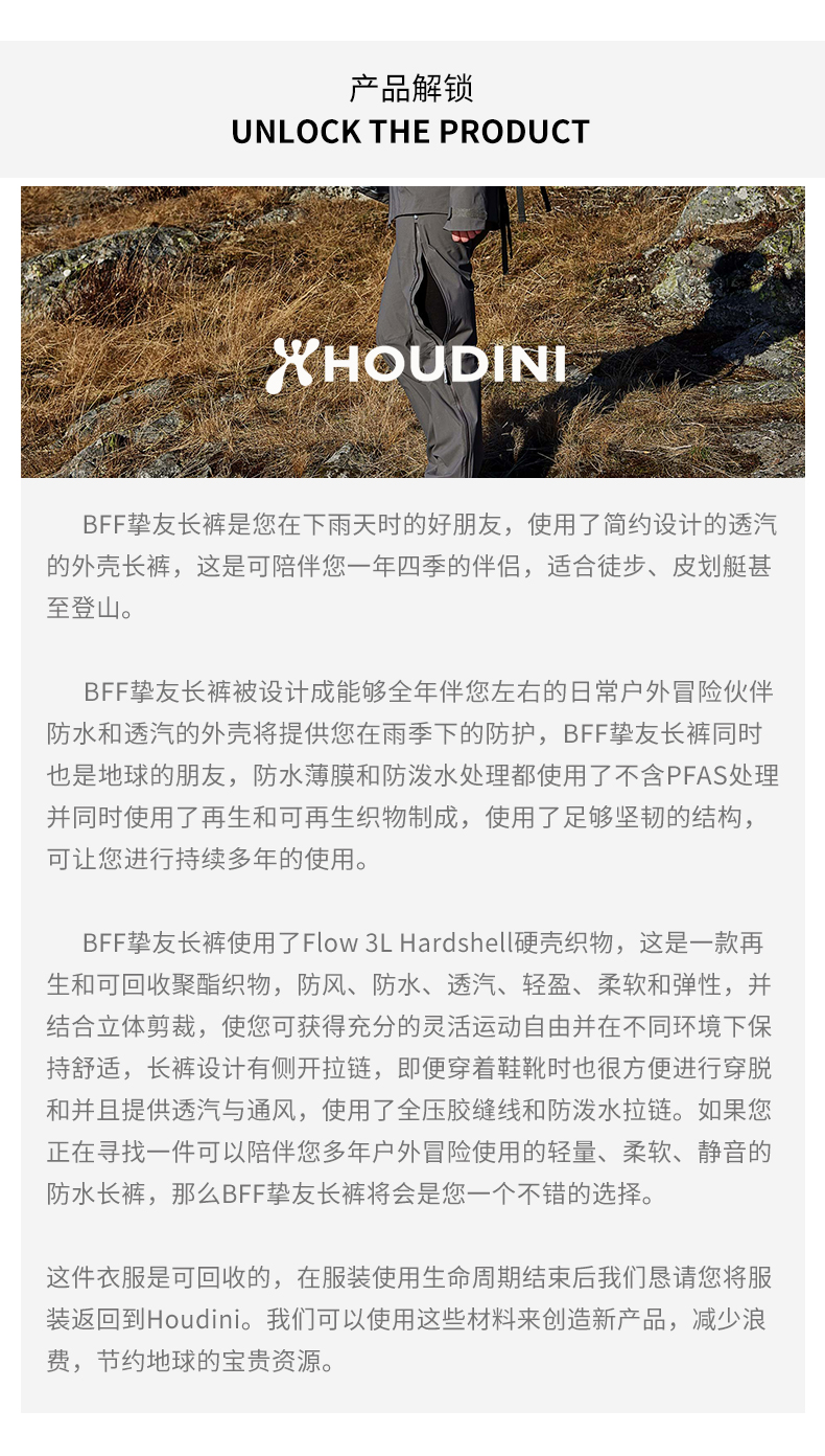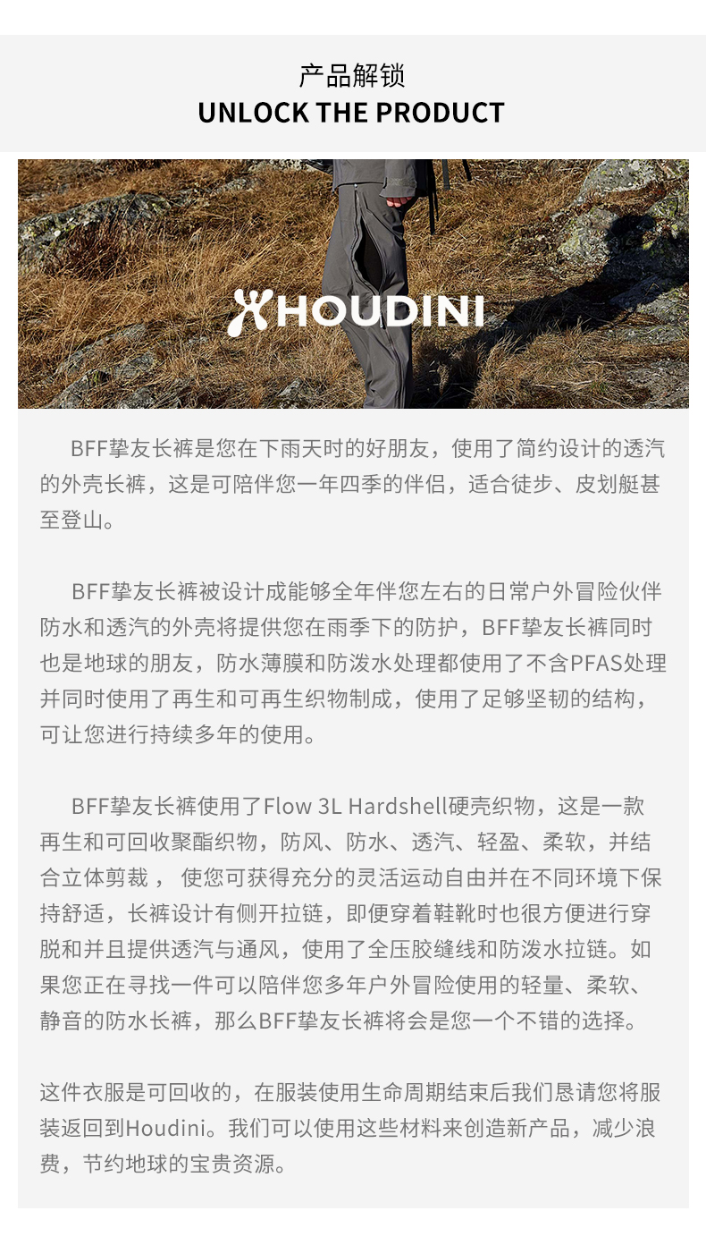 HOUDINI胡丁尼 BFF Pants挚友男户外秋冬防风防泼水徒步登山长裤 810049