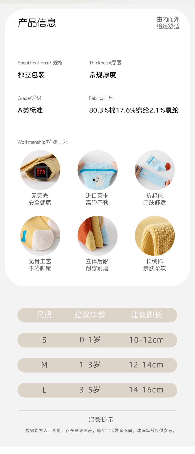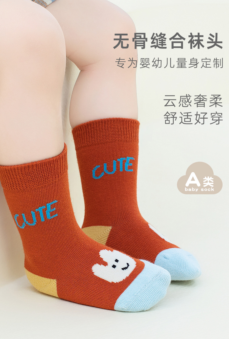 【3双装!由内而外 给足舒适】婴儿无骨松口宝宝袜子2024秋季新品初生卡通a类儿童中筒棉袜