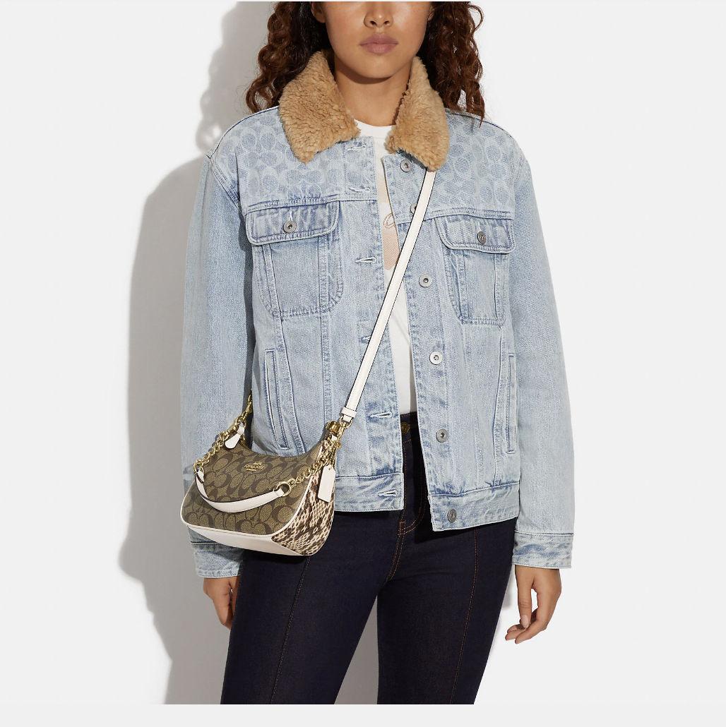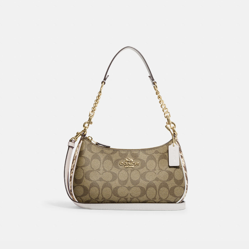 好价!Coach白拼老花腋下包链条包斜挎包 ¥1250直邮到手尺寸是:24 x 15 x 8cm