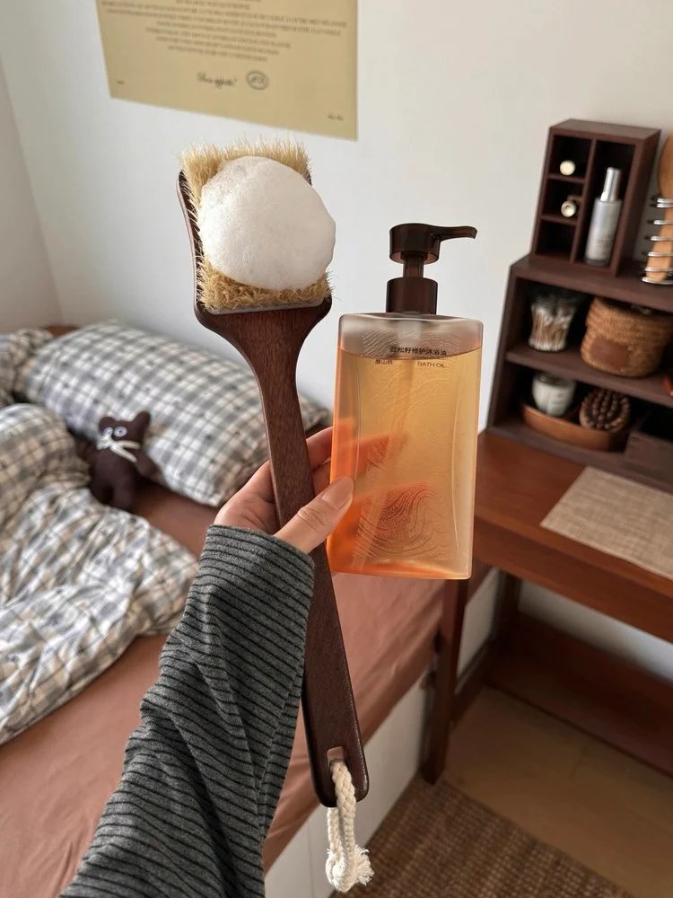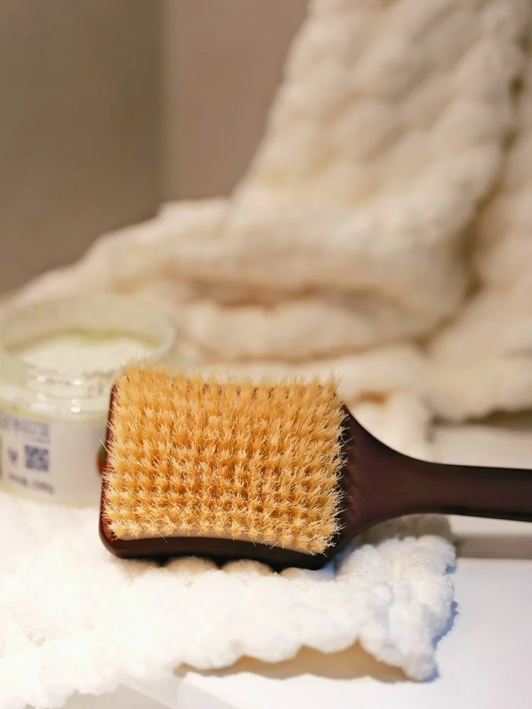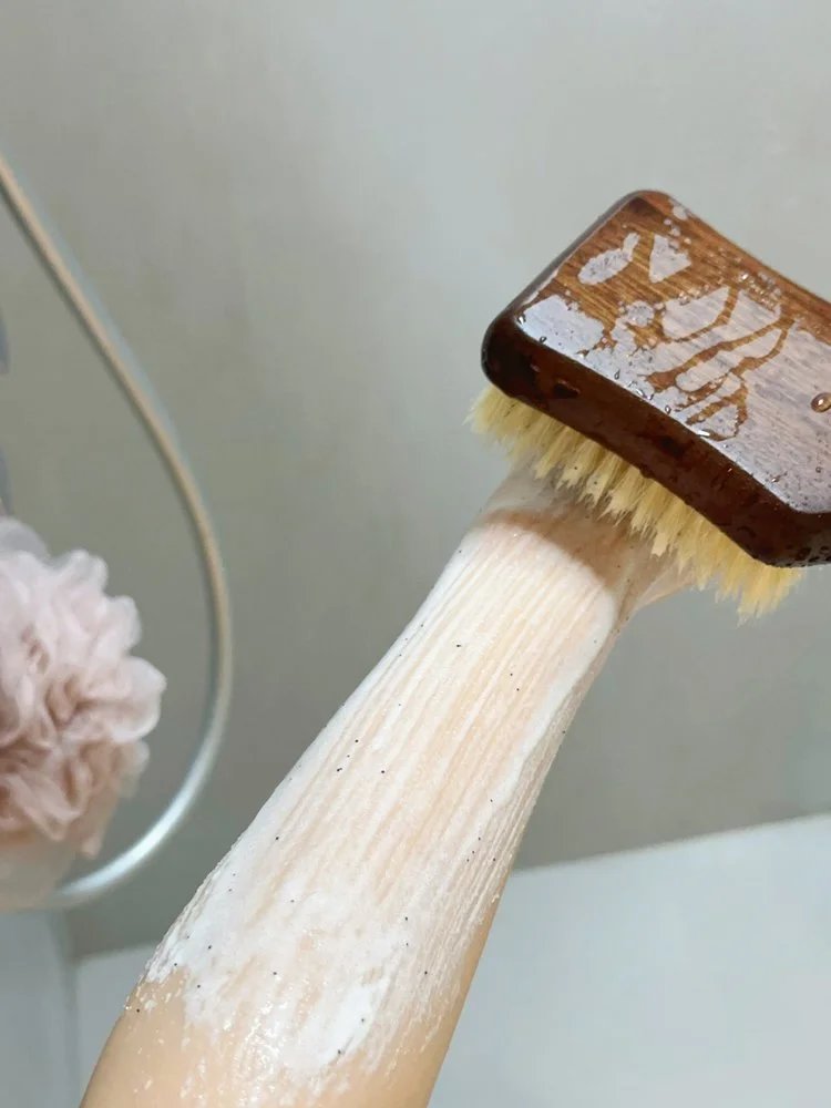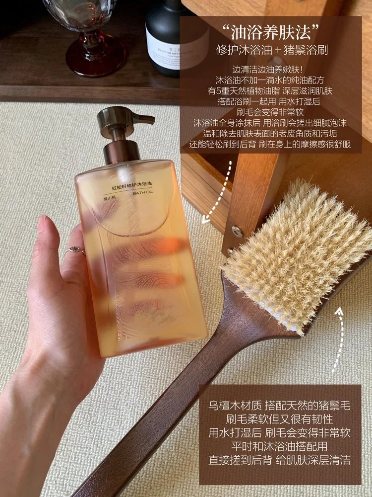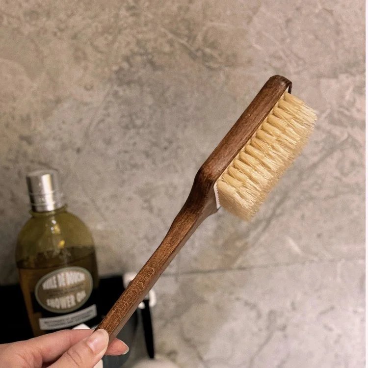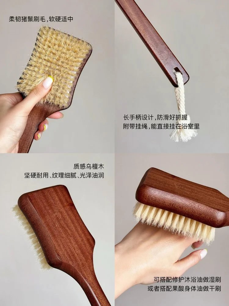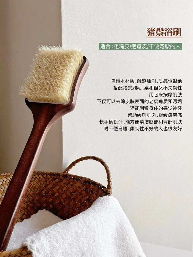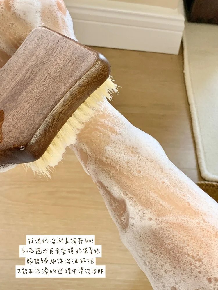 伊能静和董洁强烈安利【乌檀木猪鬃毛沐浴刷】原生乌檀木➕天然猪鬃毛,刷毛软硬适中丨干湿两用丨好拿省力!配合沐浴油或者磨砂膏一起用,洗完皮肤巨滑!嫩!润!