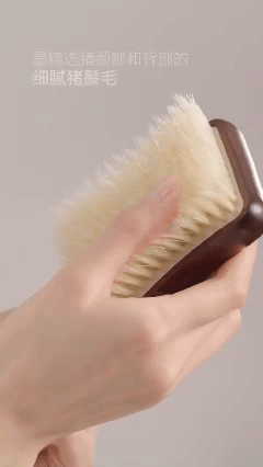 👉猪鬃毛的软硬程度适中,接触皮肤的时候不会感觉过硬而让皮肤产生刺痛感,或刺痛、伤害到皮肤