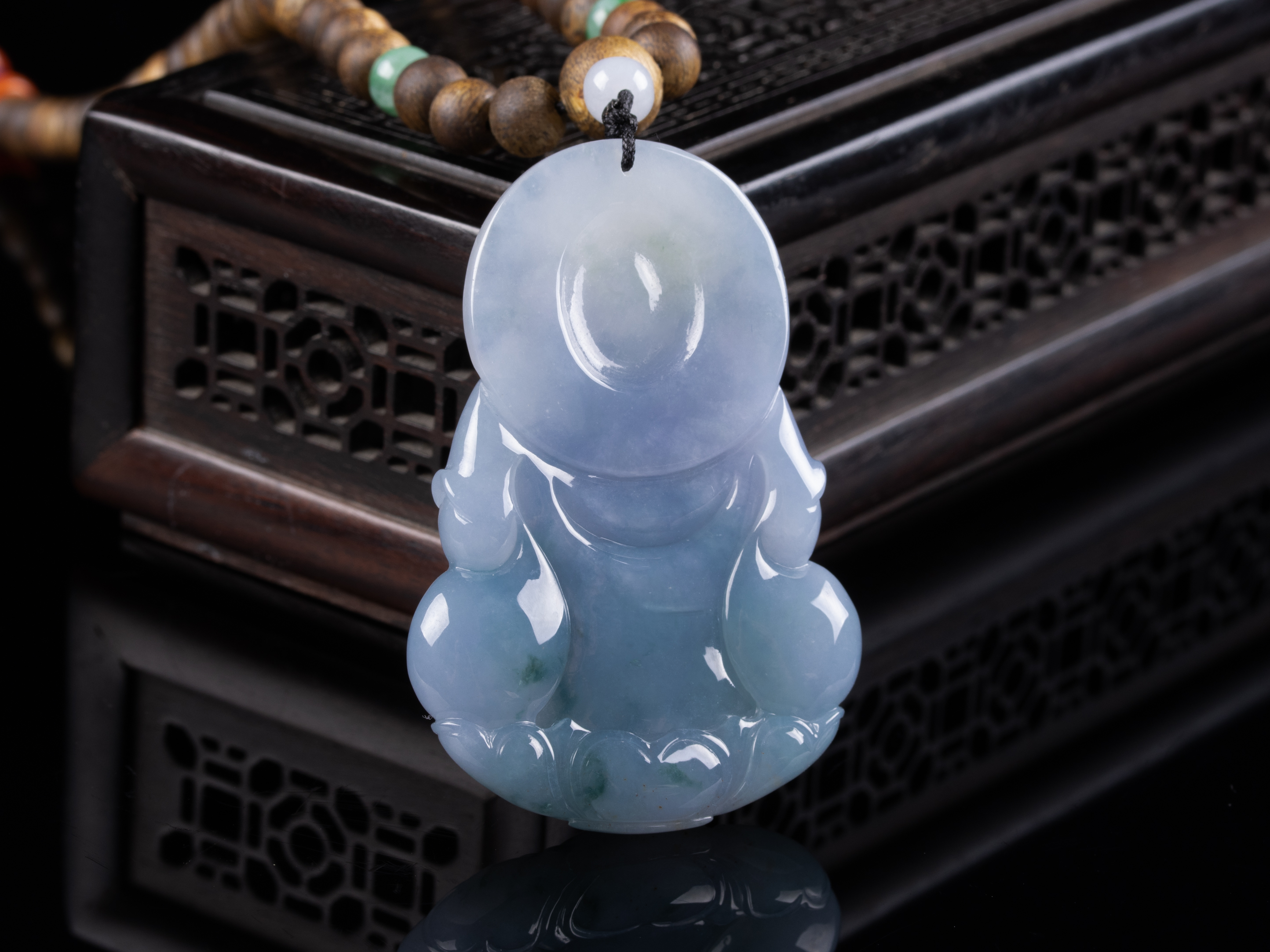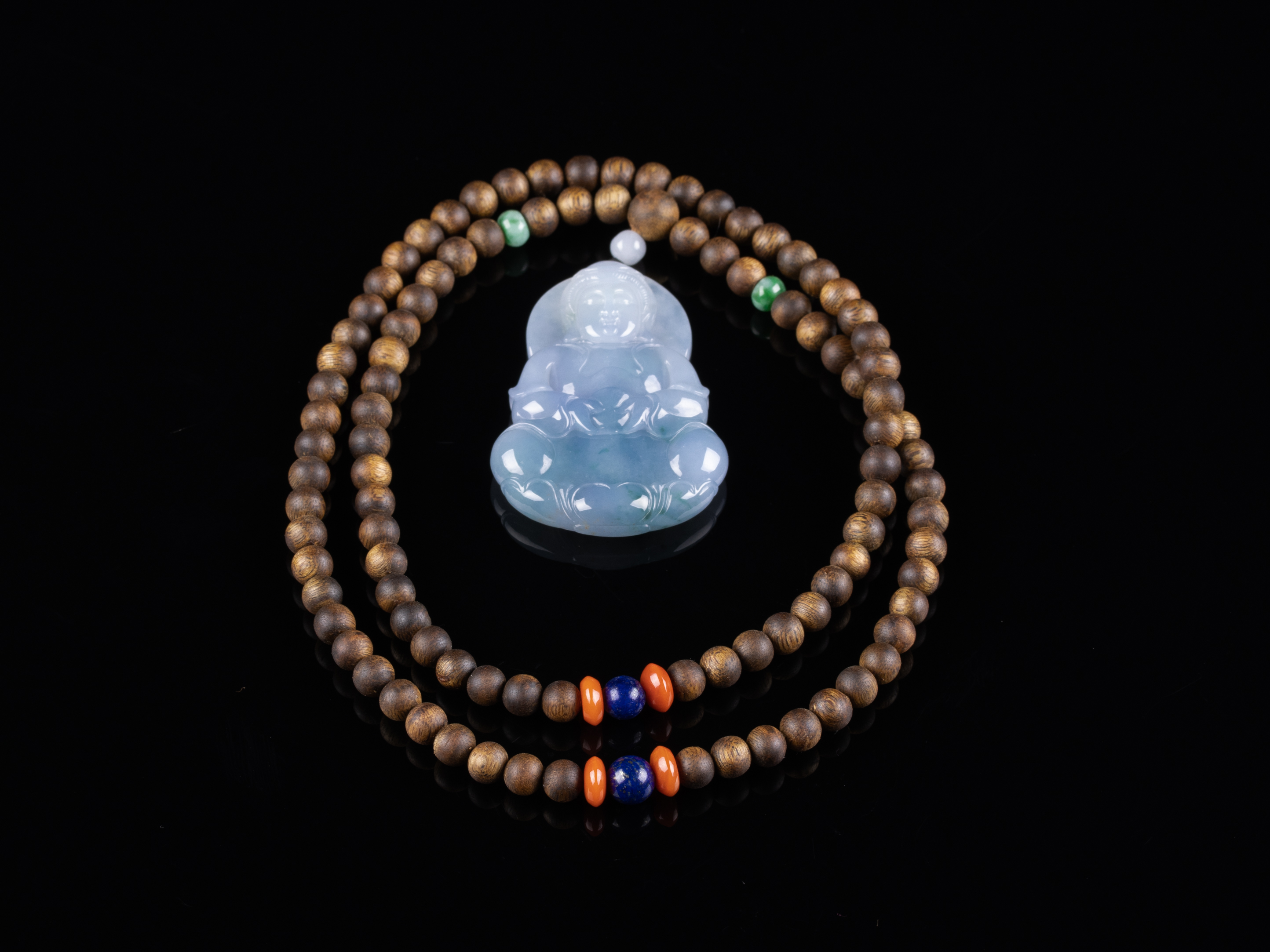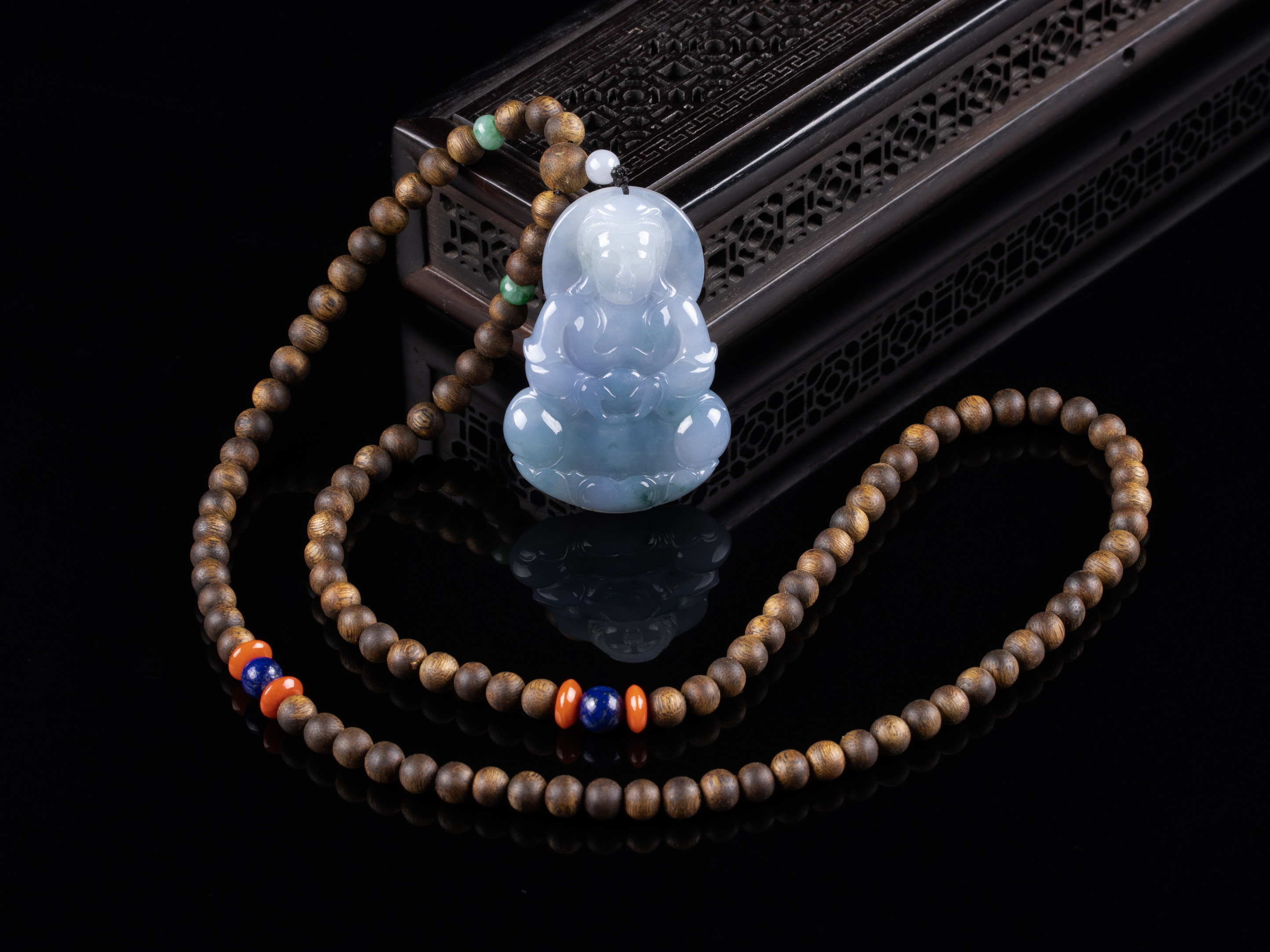 原创沉香+翡翠紫罗兰观音挂件,天然沉香圆珠6.5mm,原色原味,香味自然清甜。配珠:翡翠、南红、青金石。观音底子细腻,46.4*56.4*5.5mm,紫罗兰底色,瑞气吉祥,观音护主,庇佑平安。超值5600元