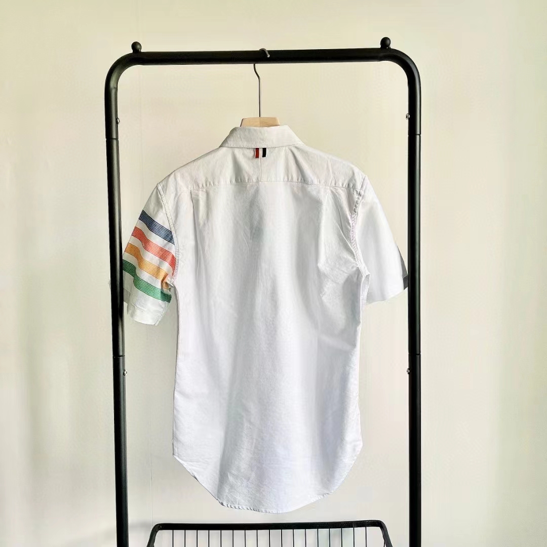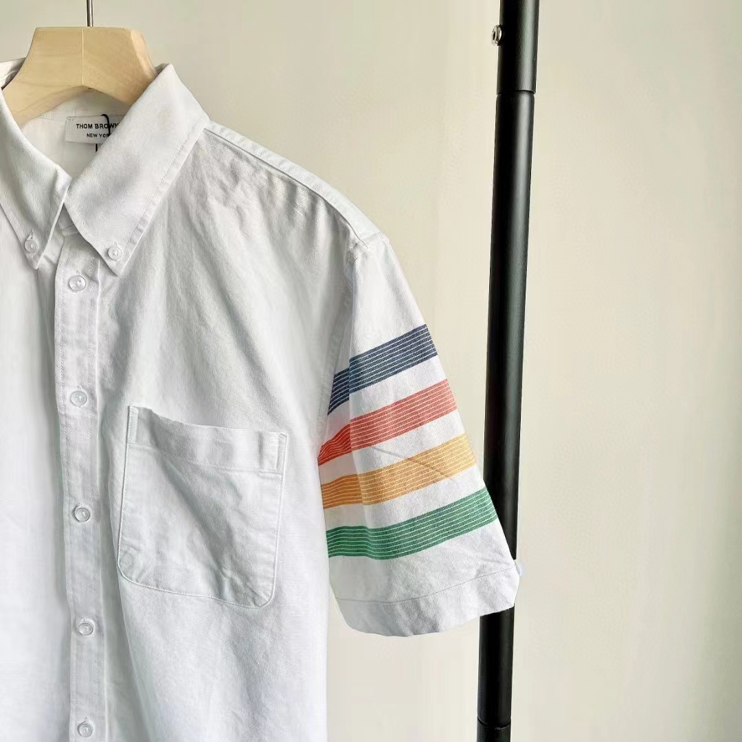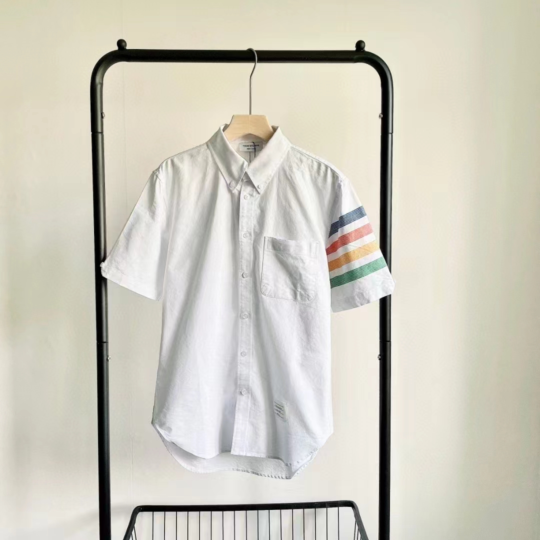 夏季手臂四道杠撞色短袖衬衫! 炒鸡百搭炒鸡好看各路潮人的醉爱 男女都可以穿 随便配休闲外套还是西装效果都赞!更难得是 采用彩线色织工艺色彩靓丽 不易褪色 和面料融为一体 穿起来更舒服,牛津纺面料挺括有型 反复穿洗不易变形穿上笔挺不会软踏踏的一眼看上去就有质感的材质合体裁剪 版型非常出色上身修身有型非常衬托气质无论内搭外穿效果都好 关键是款式真的好看