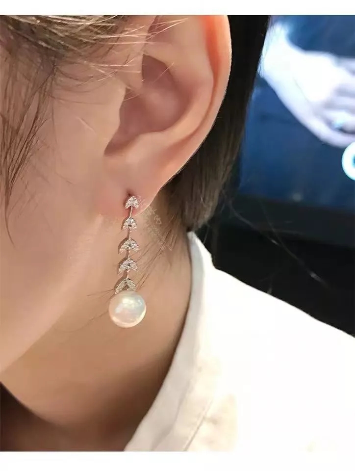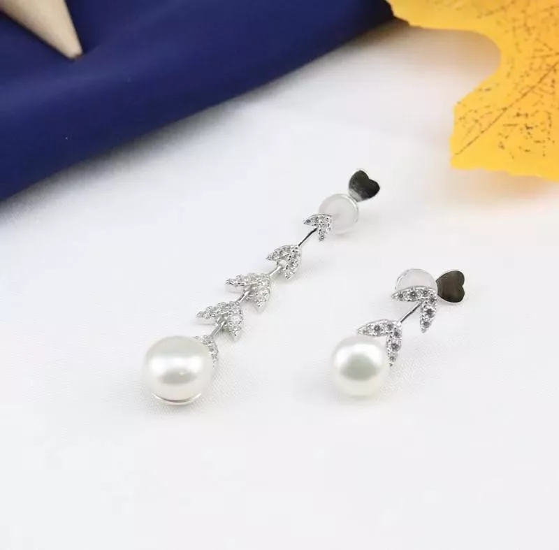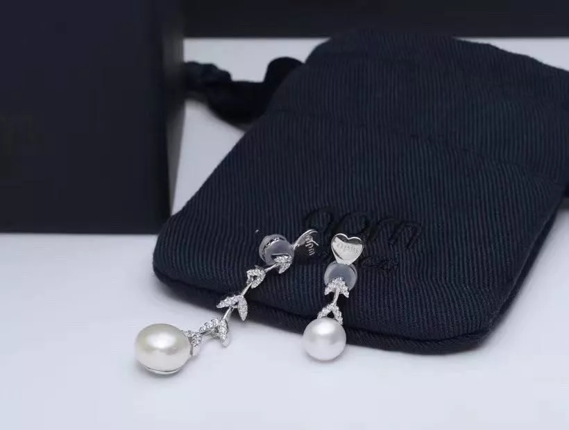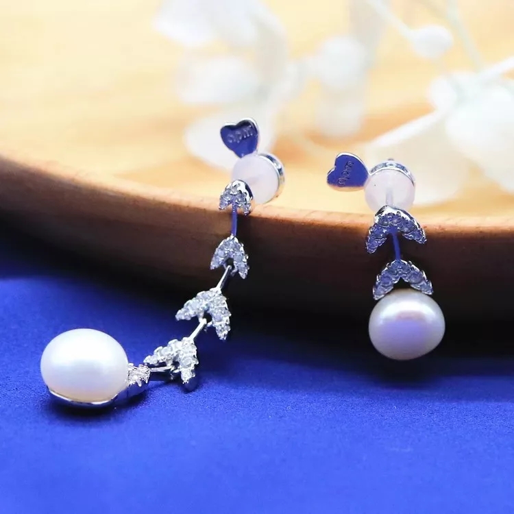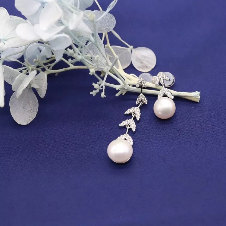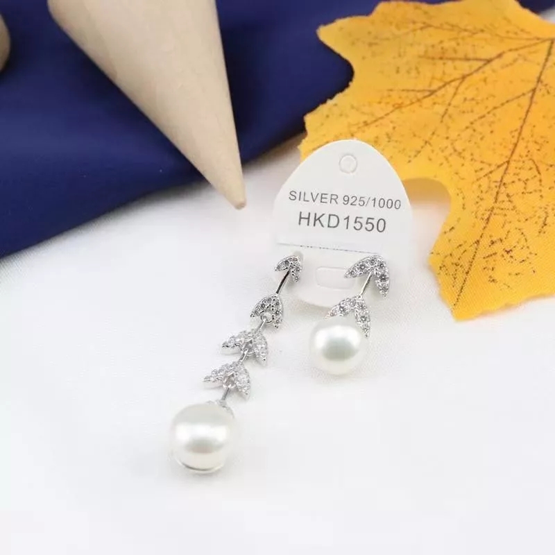 不对称银镶晶钻花瓣耳环 配淡水珍珠,珍珠花瓣点缀 简洁兼气质并具