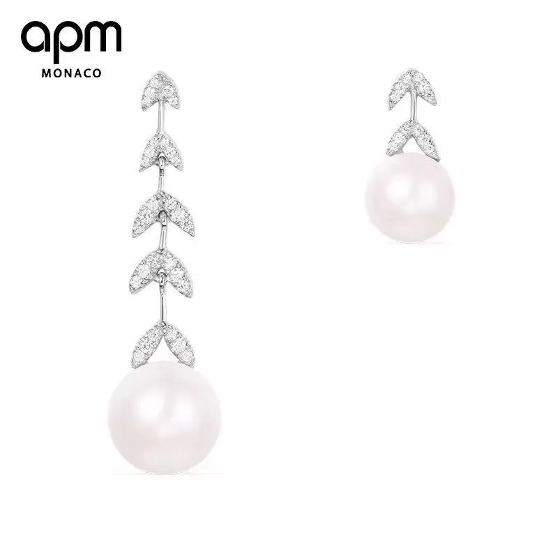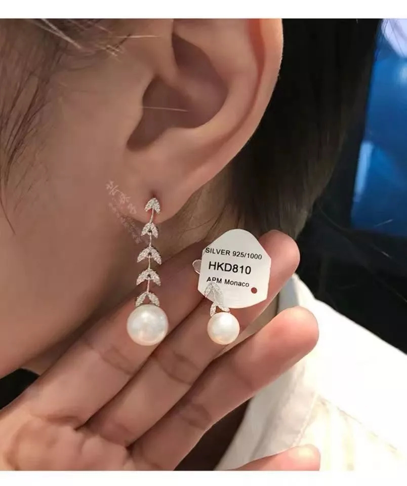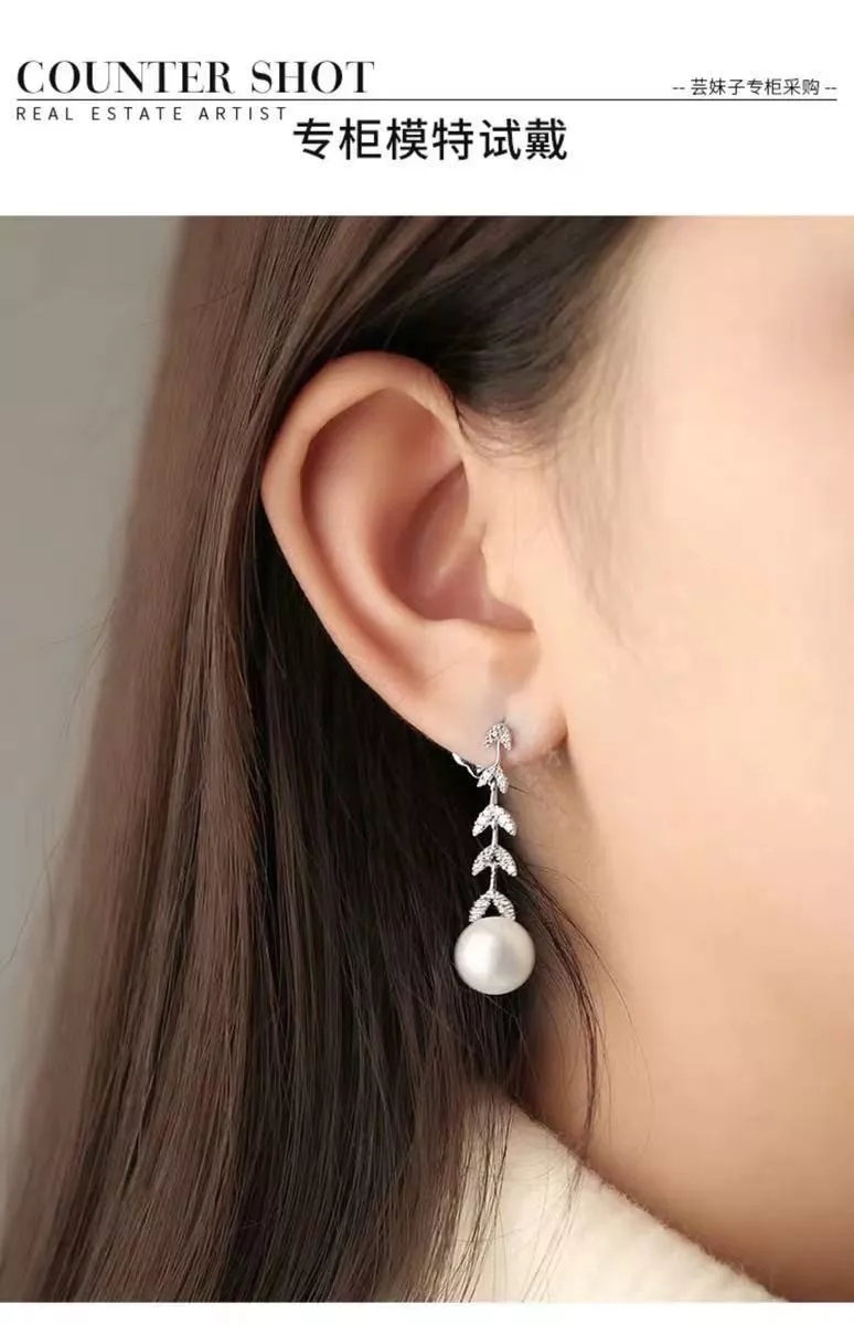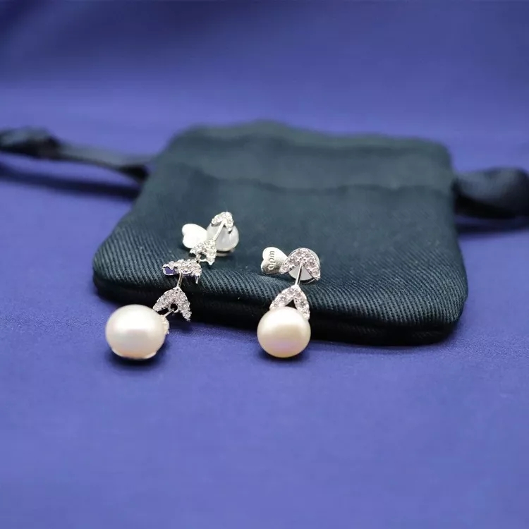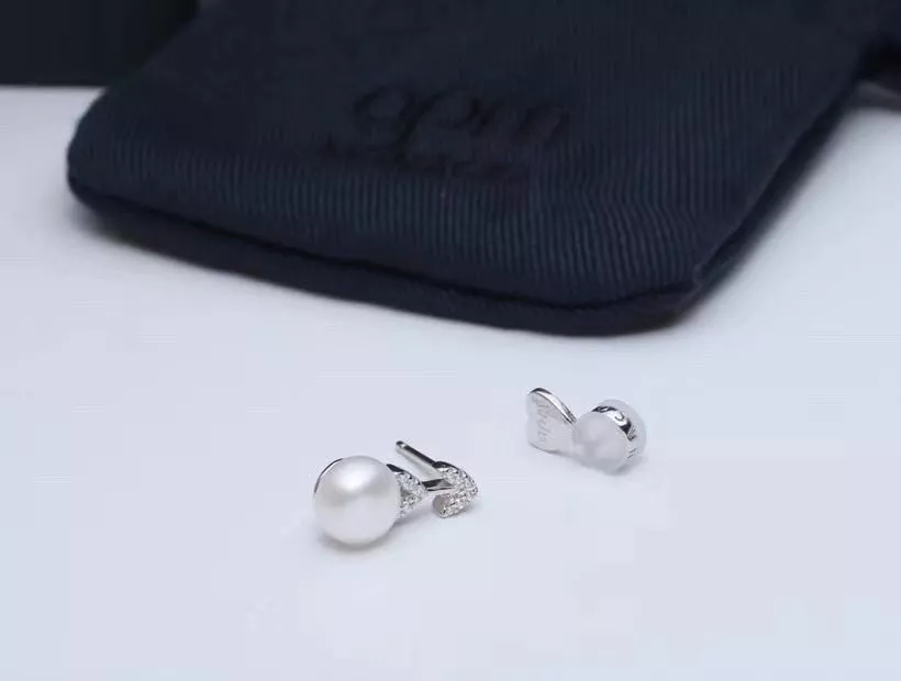 不对称银镶晶钻花瓣耳环 配淡水珍珠,珍珠花瓣点缀 简洁兼气质并具