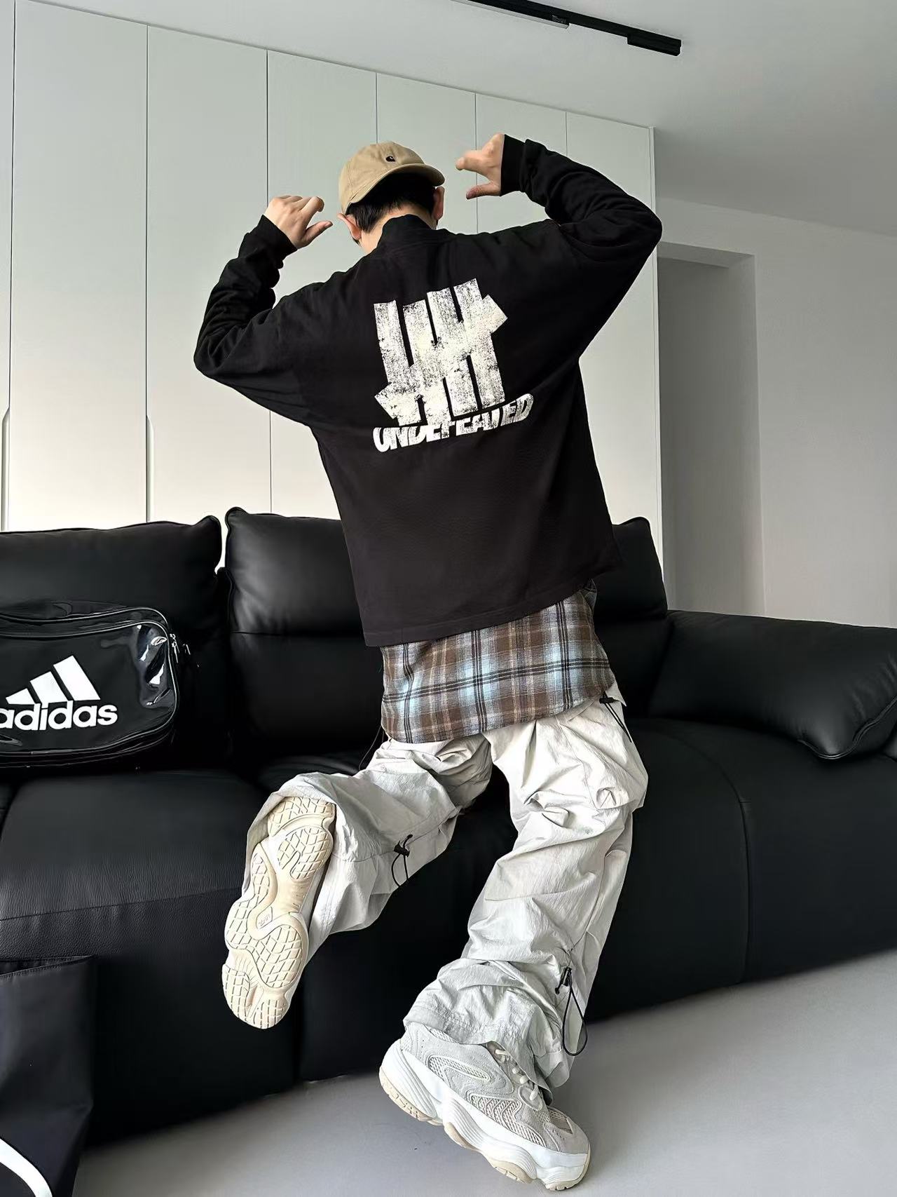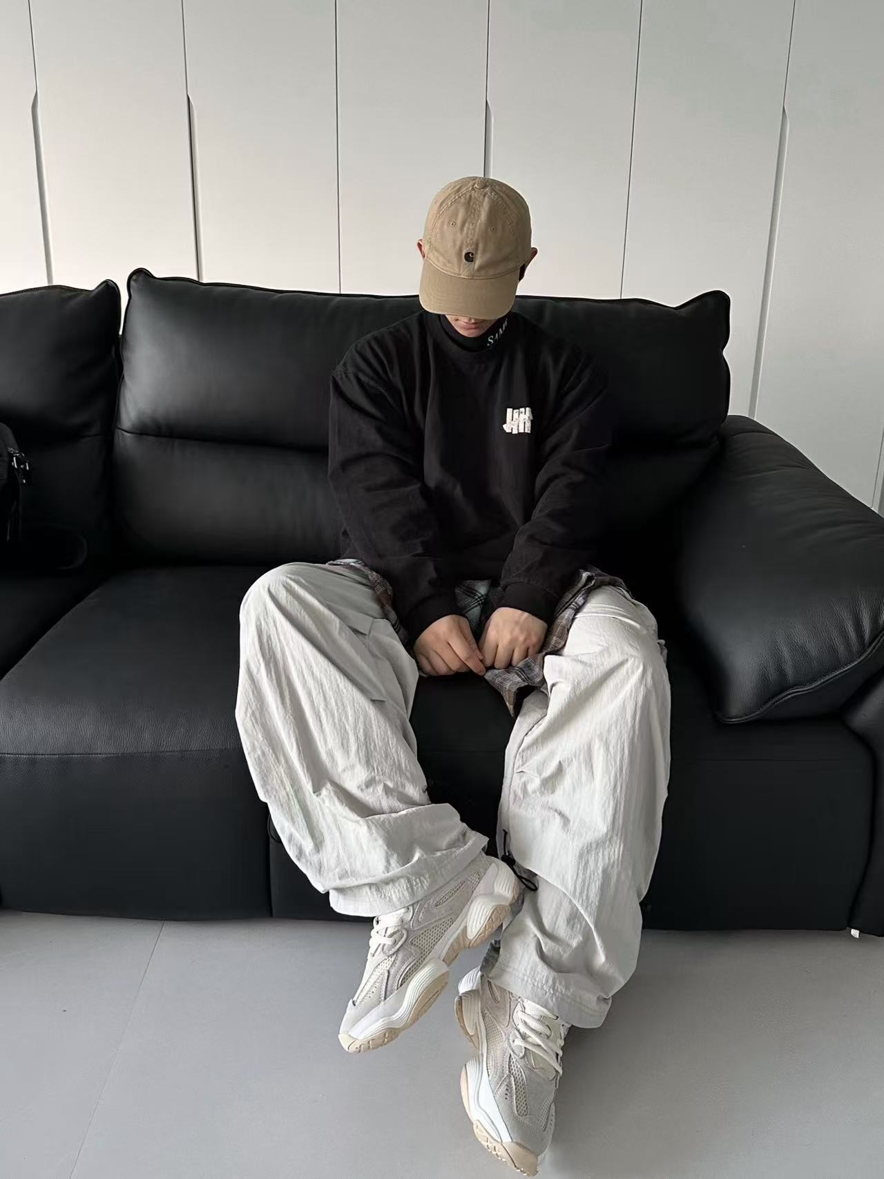 【ctx1】情侣潮流水洗做旧撞色印花打底长袖T恤!!