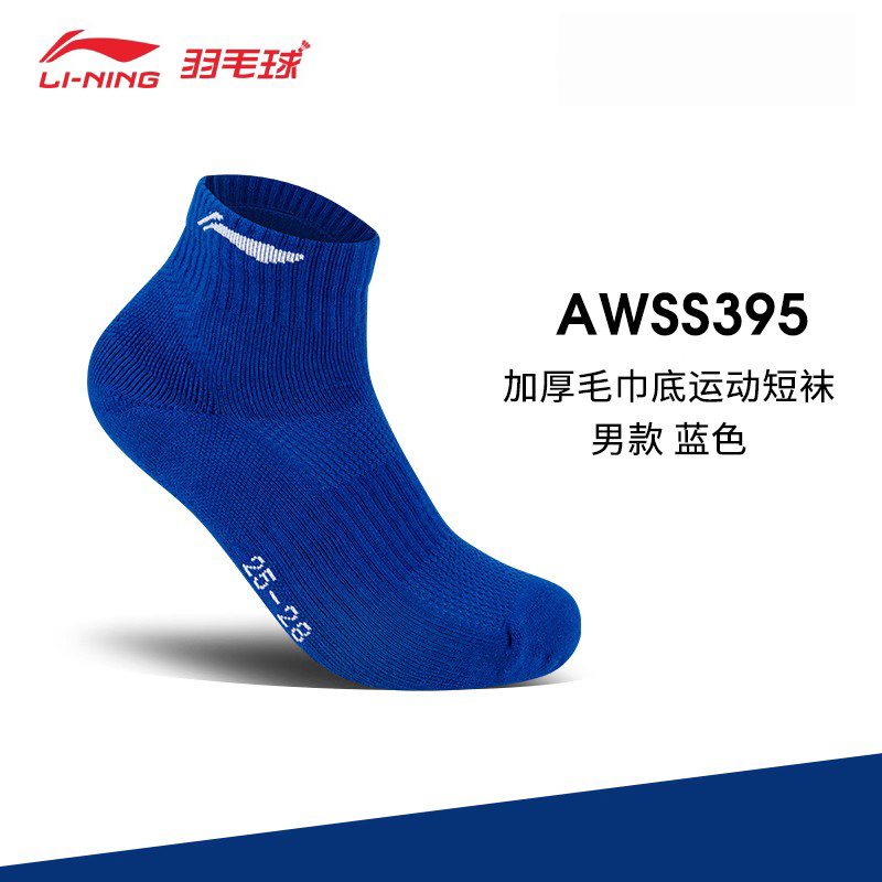 李宁 男款羽毛球袜加厚毛巾底运动袜 中筒袜 AWSS395