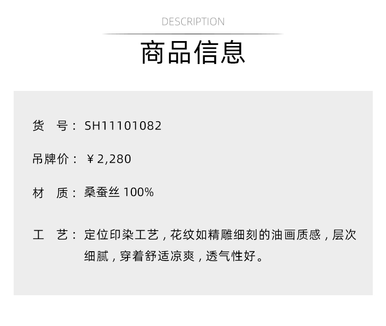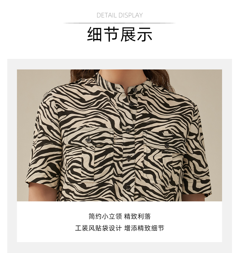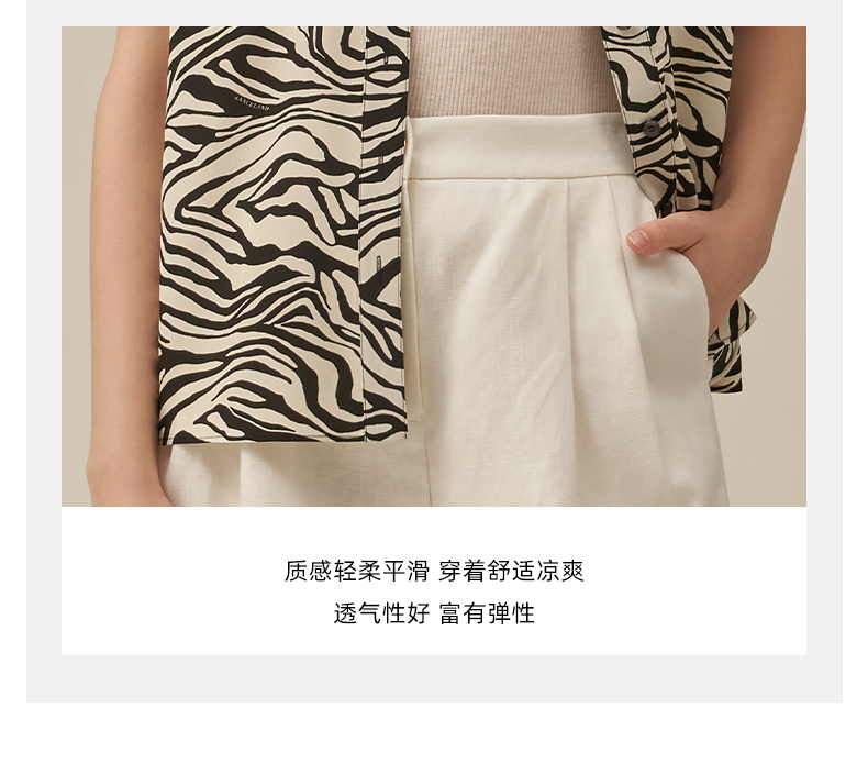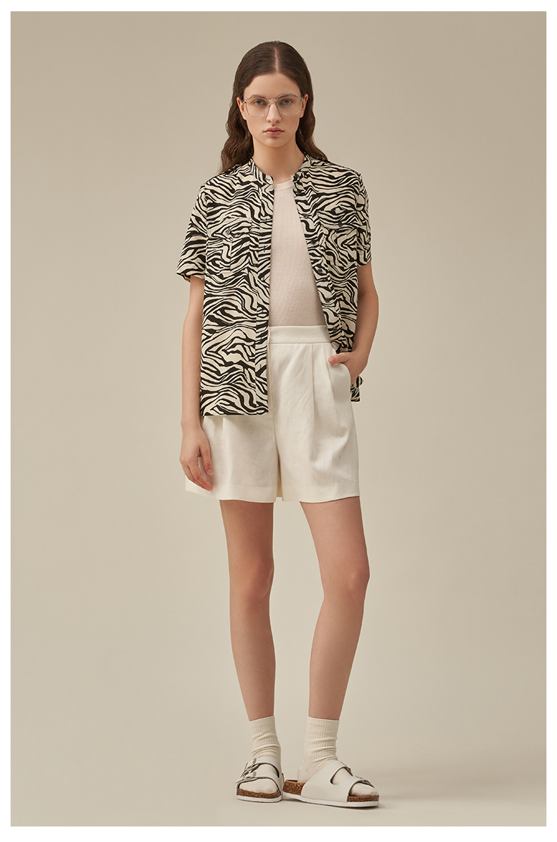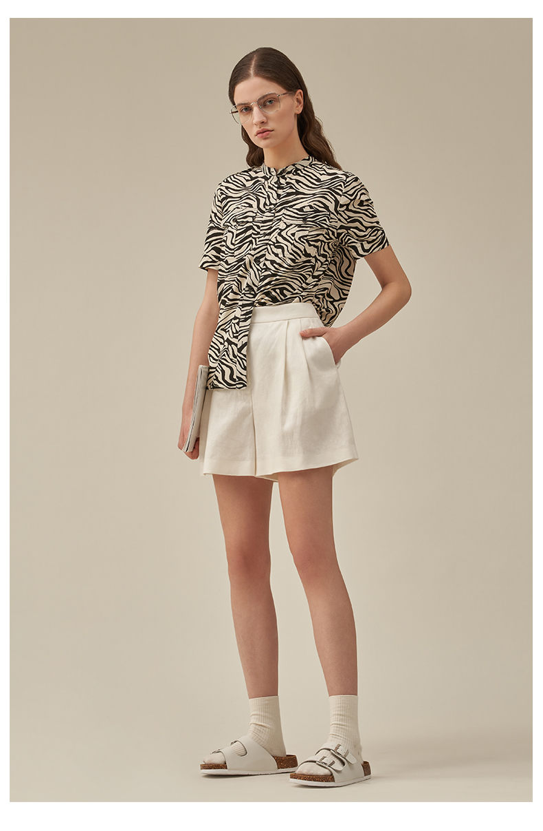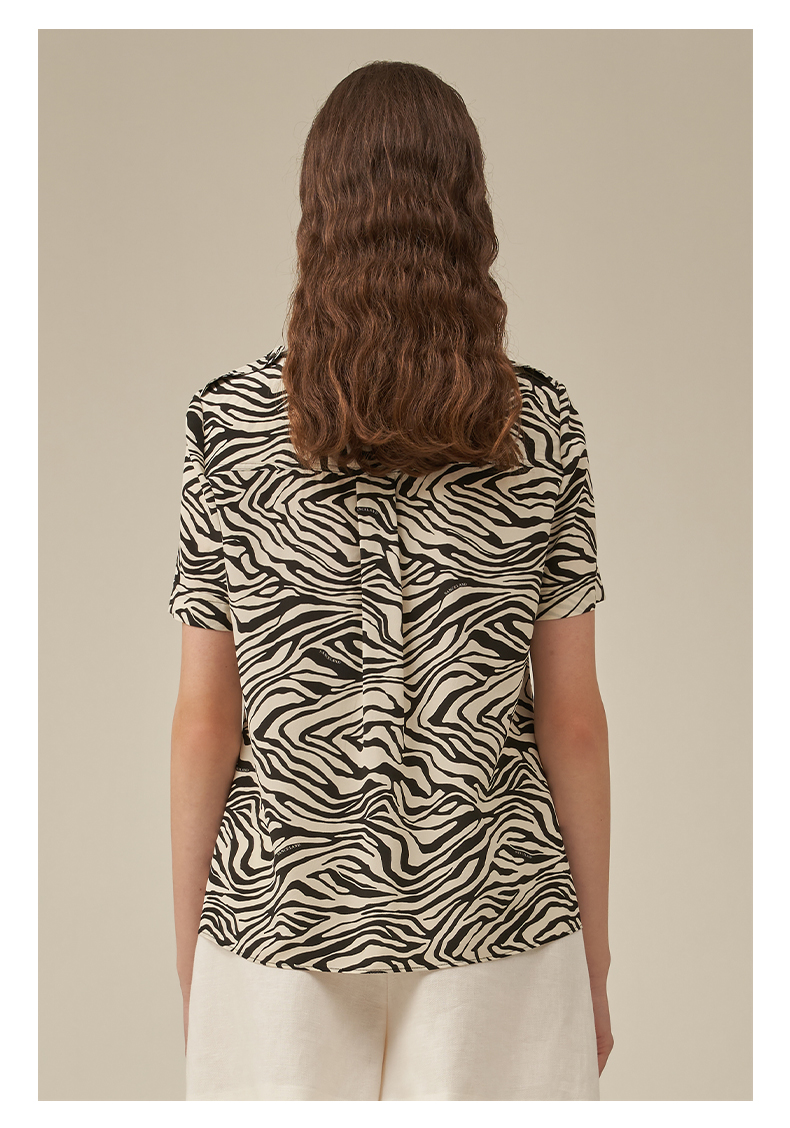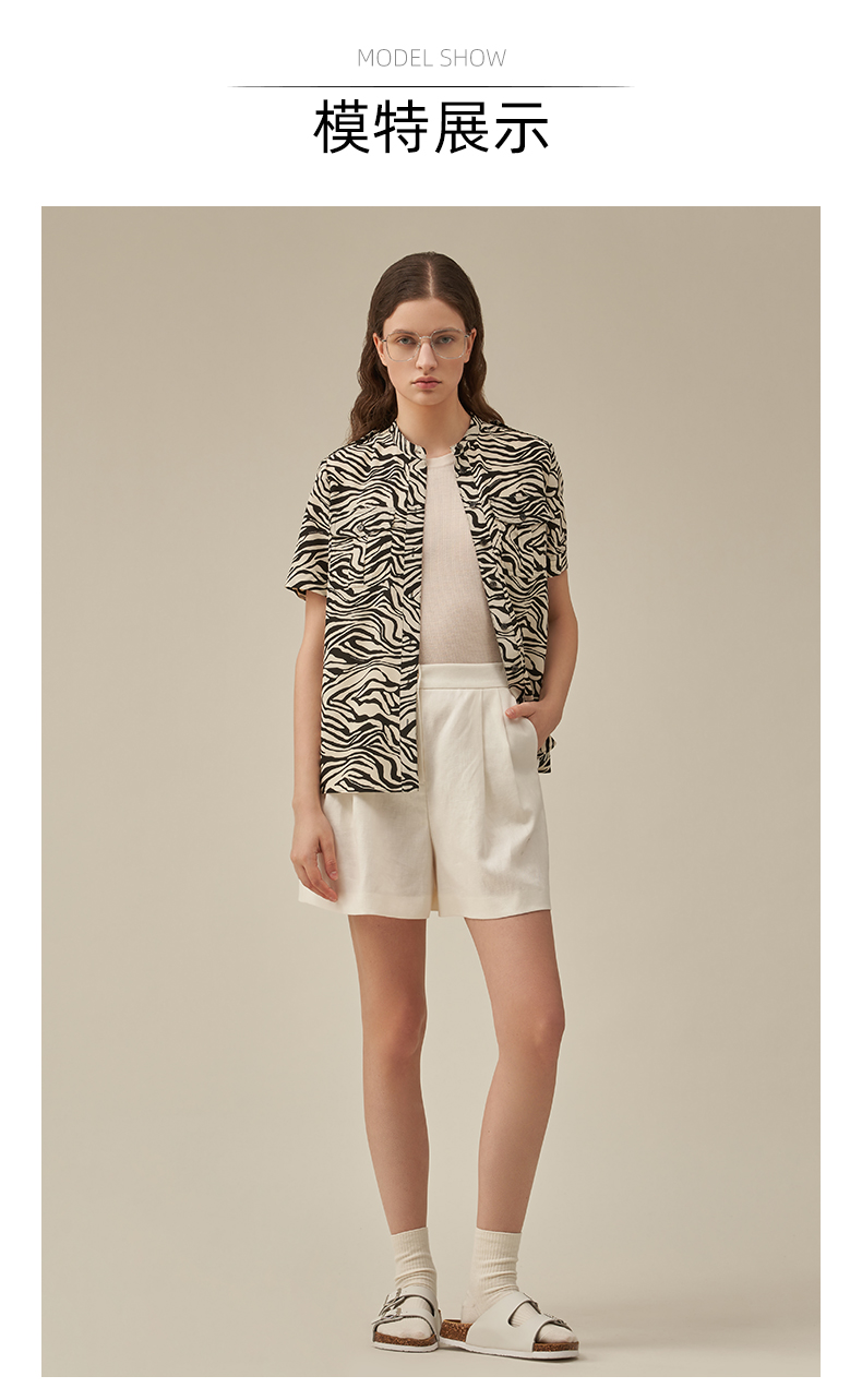 【2F】SANCELAND三石一澜23春双绉真丝衬衣短袖黑白印花衬衫SH11101082