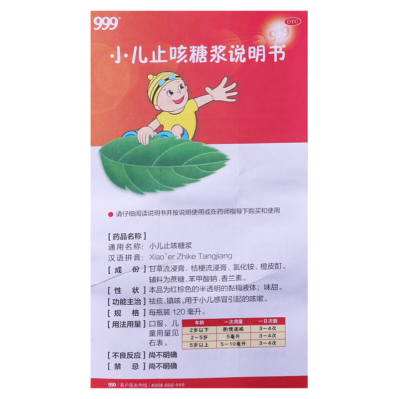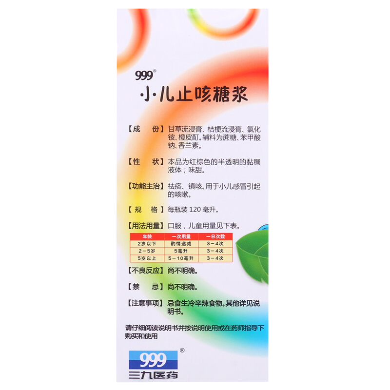 999小儿止咳糖浆120ml三九宝宝止咳药祛痰 镇咳 儿童感冒咳嗽药