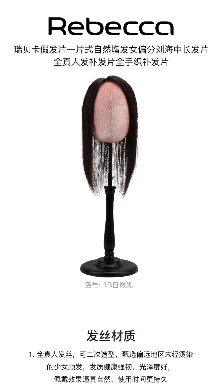 Rebecca瑞贝卡假发片一片式自然增发女偏分刘海中长发片全真人发补发片全手织补发片