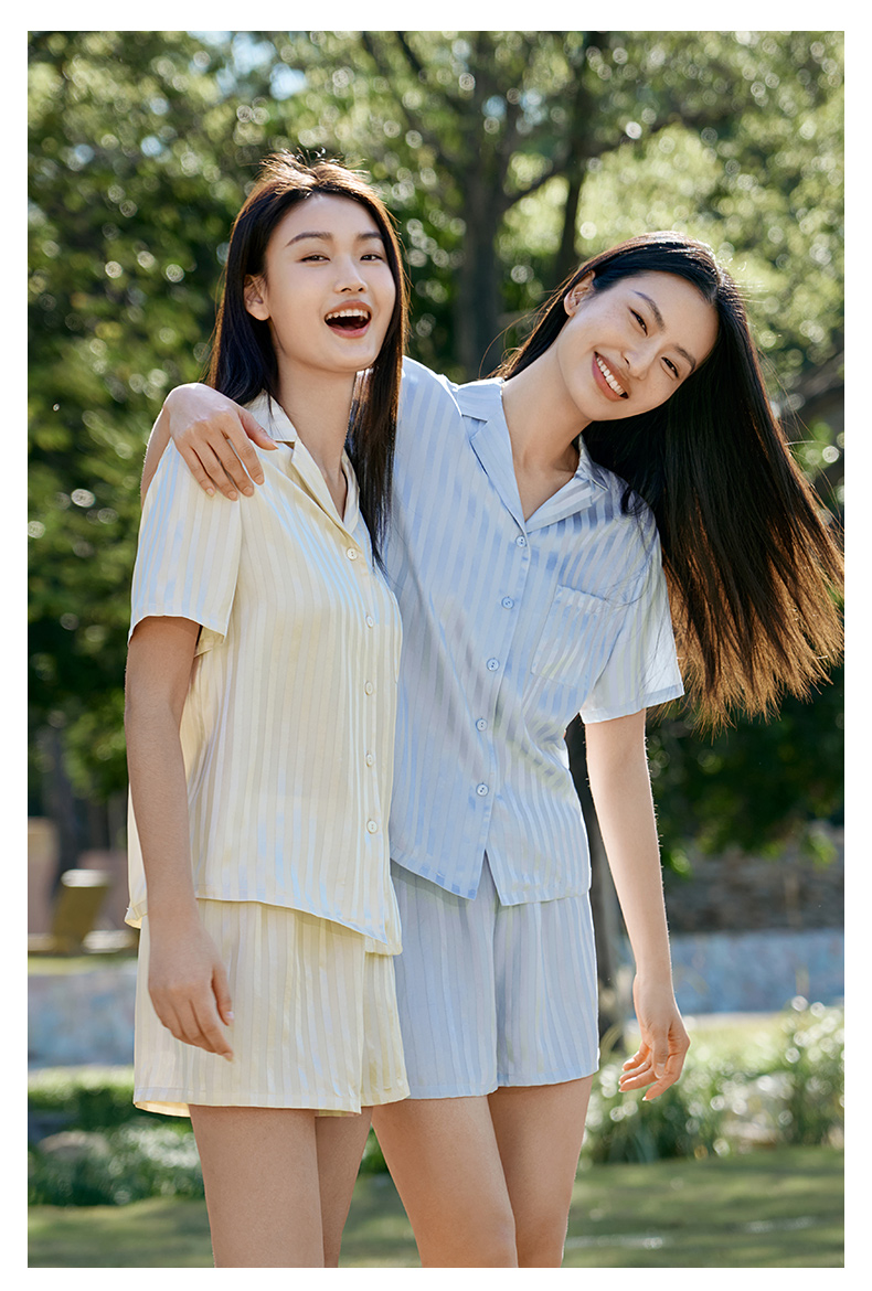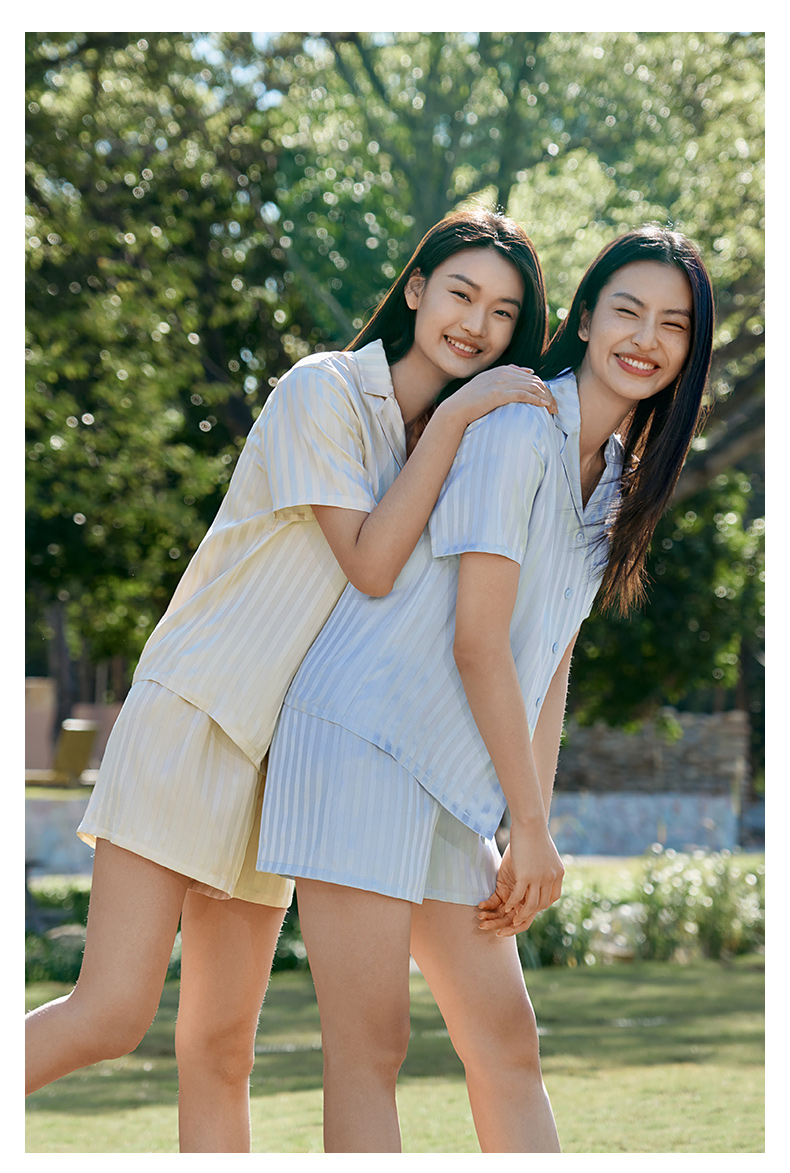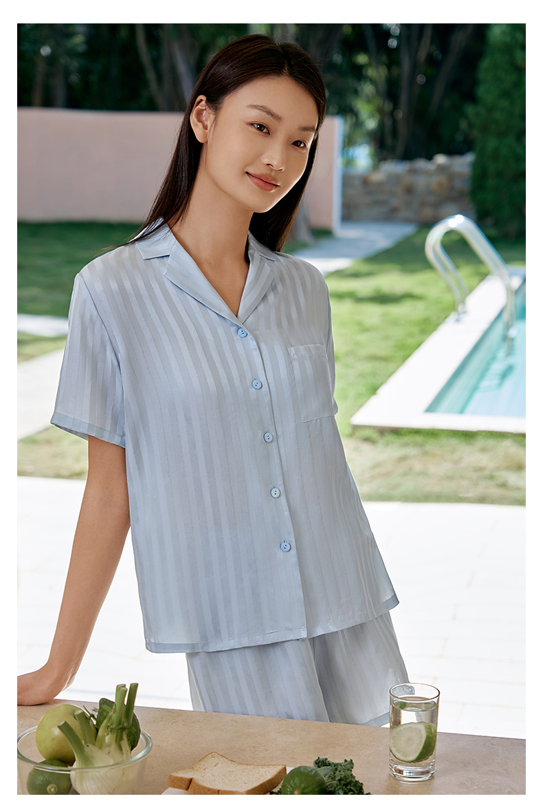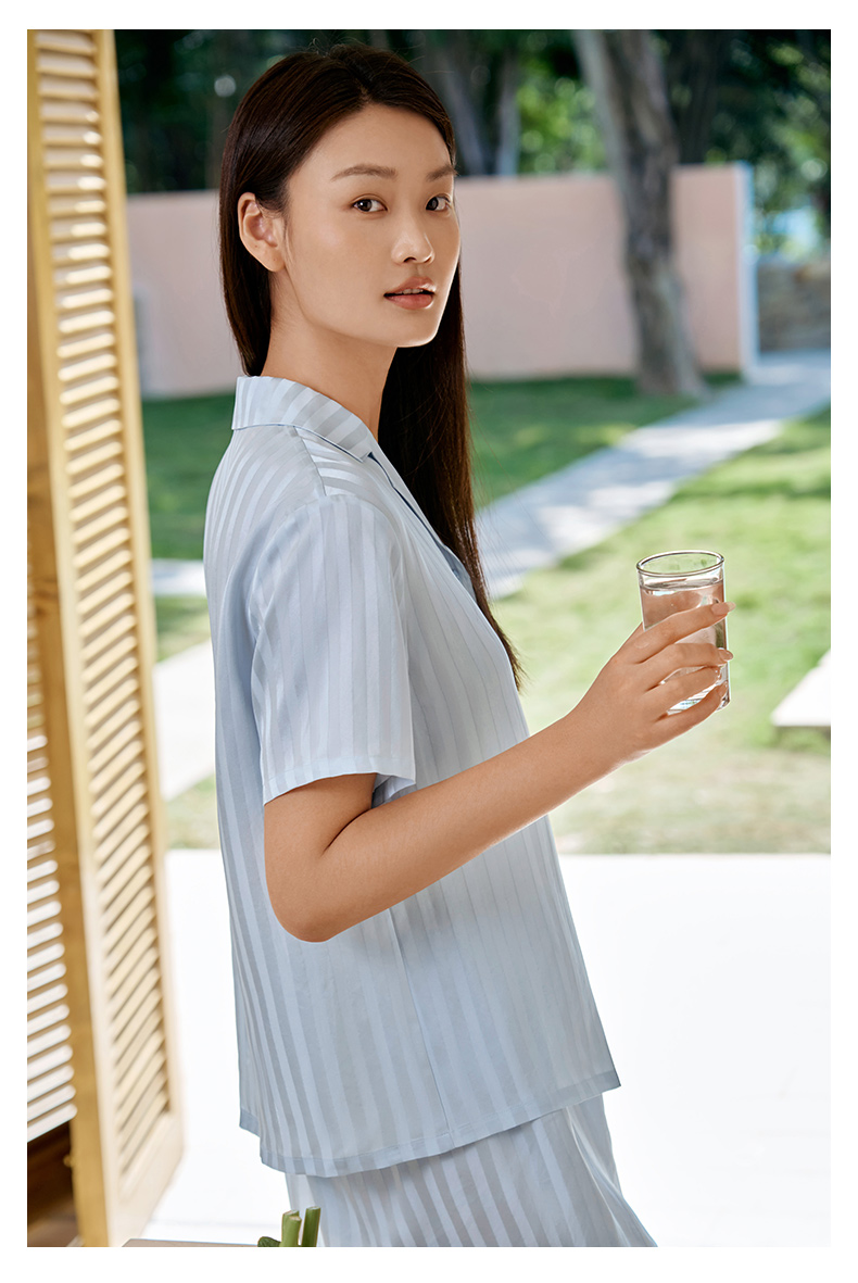 金三塔 女真丝简约条纹衣裤套