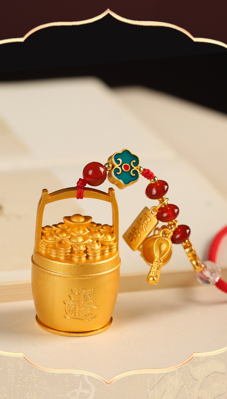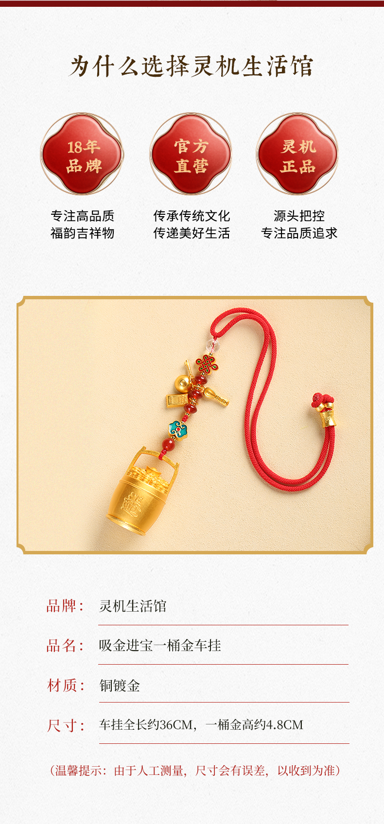 灵机吸金进宝一桶金车挂 金玉满堂 富贵无边 汽车车载后视镜挂件