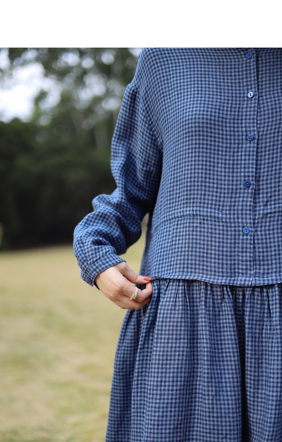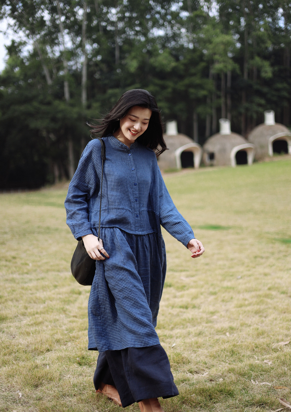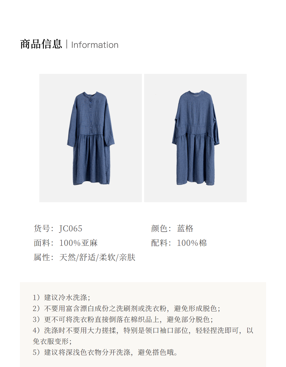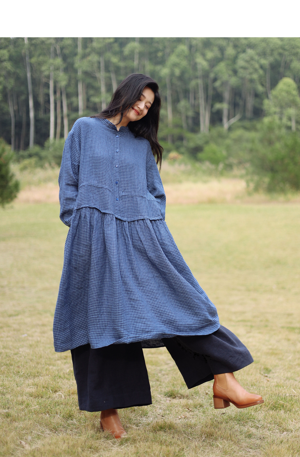 绽放065朵/2024早春新款天然色织亚麻格子腰间系绳旅游穿搭连衣裙
