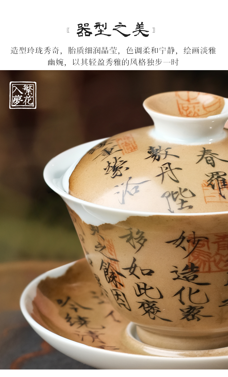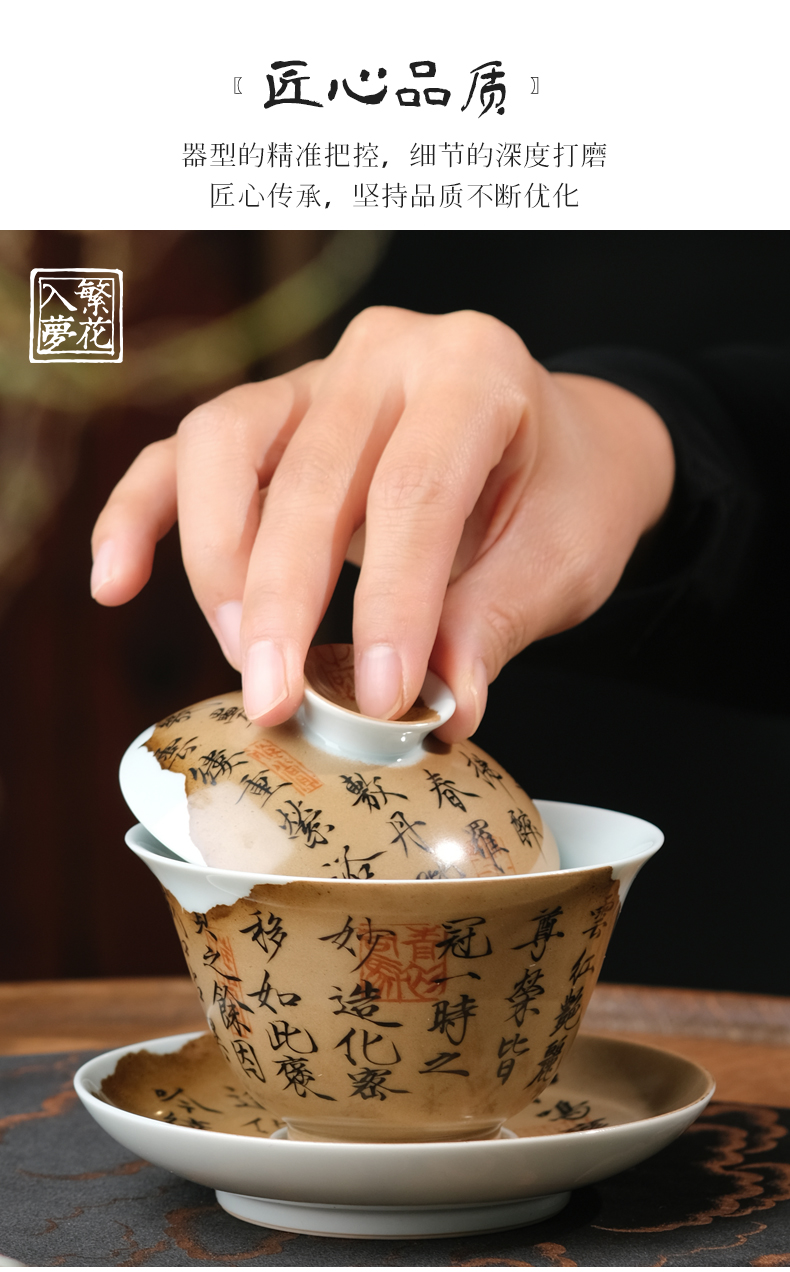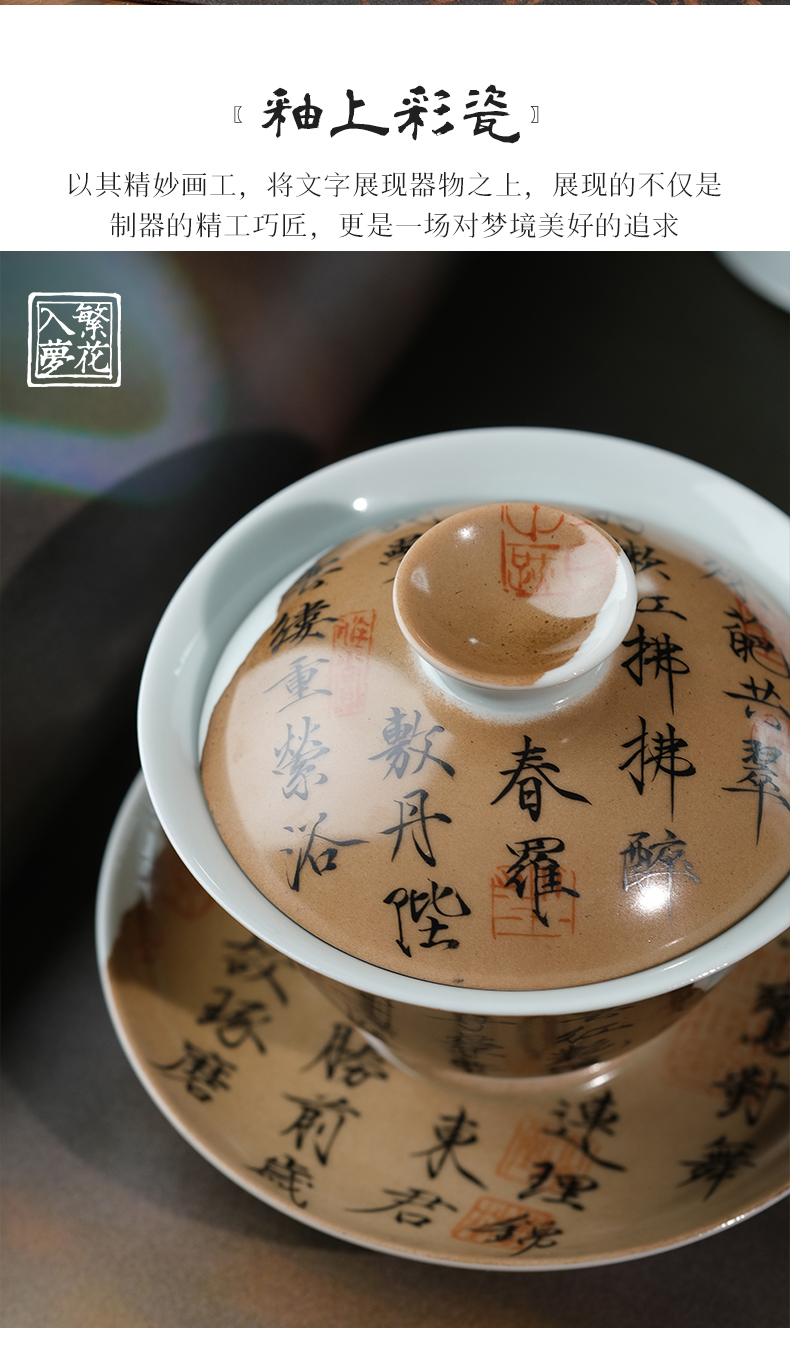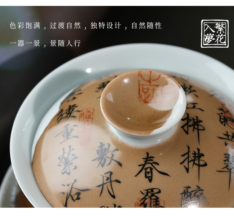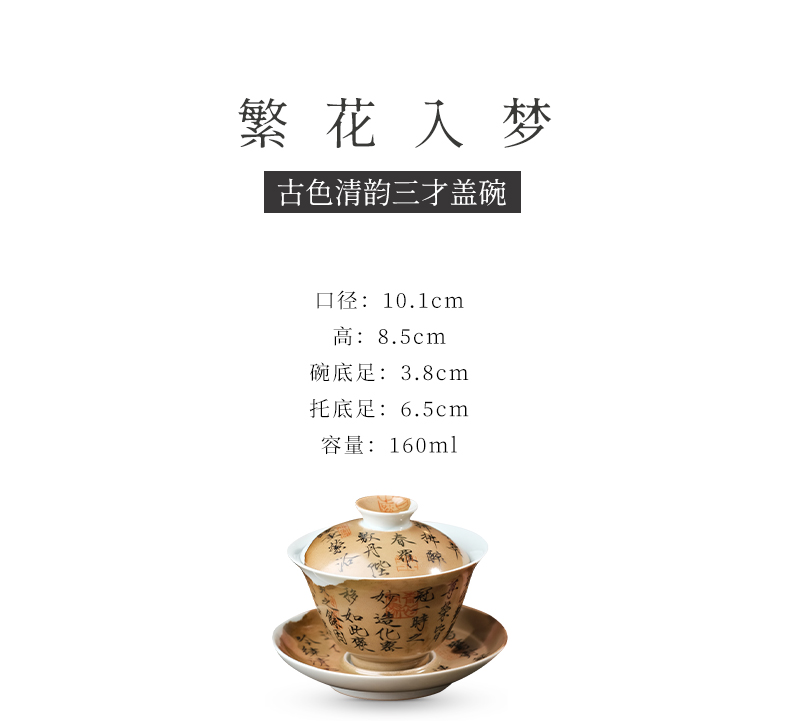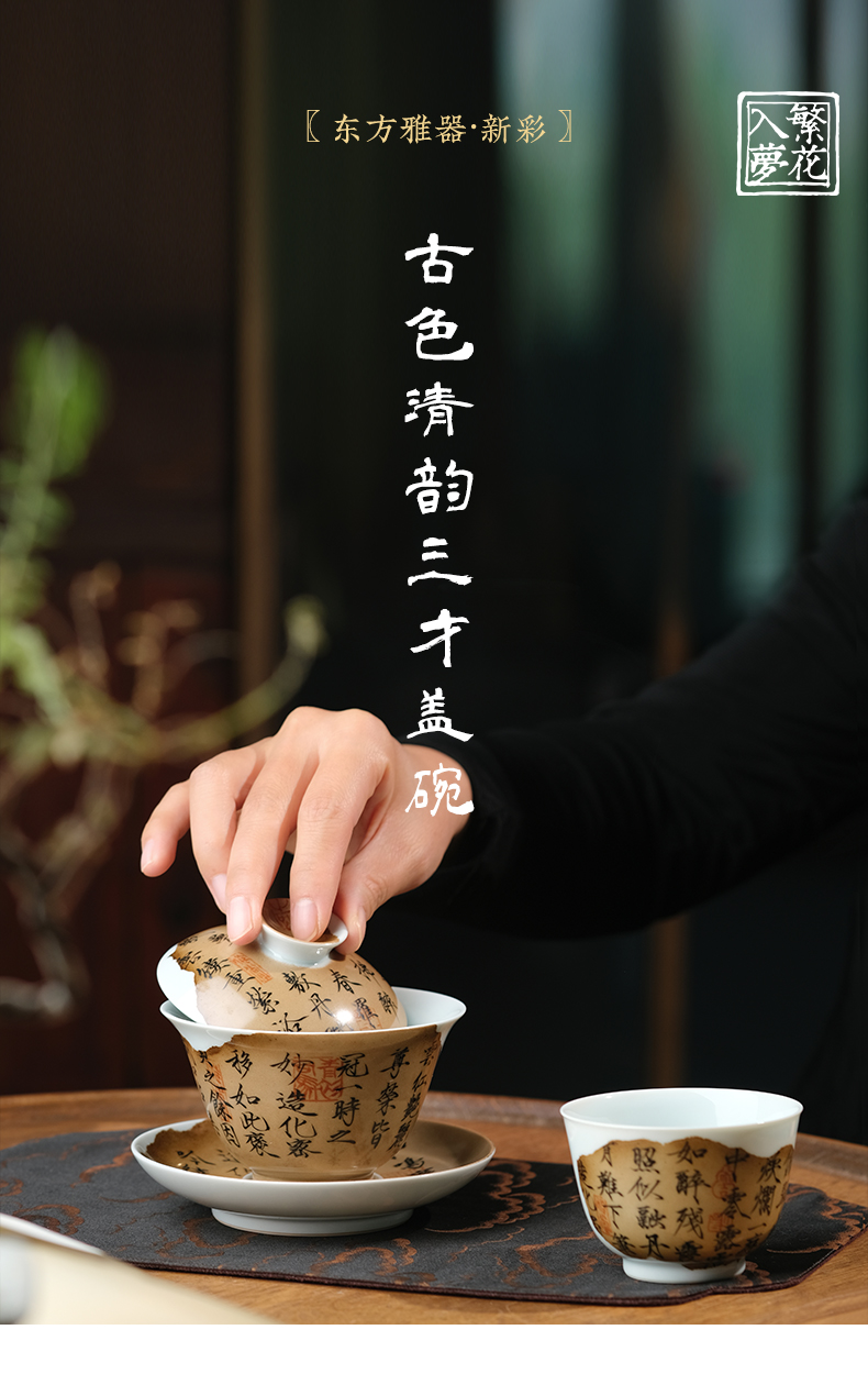 繁花入梦新彩 古色清韵三才盖碗