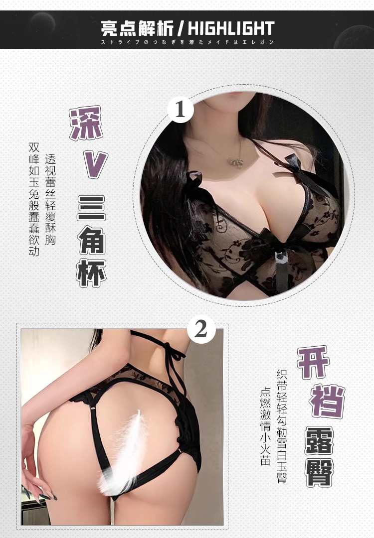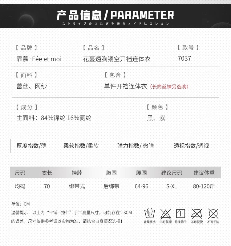霏慕 花蔓透胸镂空开裆连体衣7037
