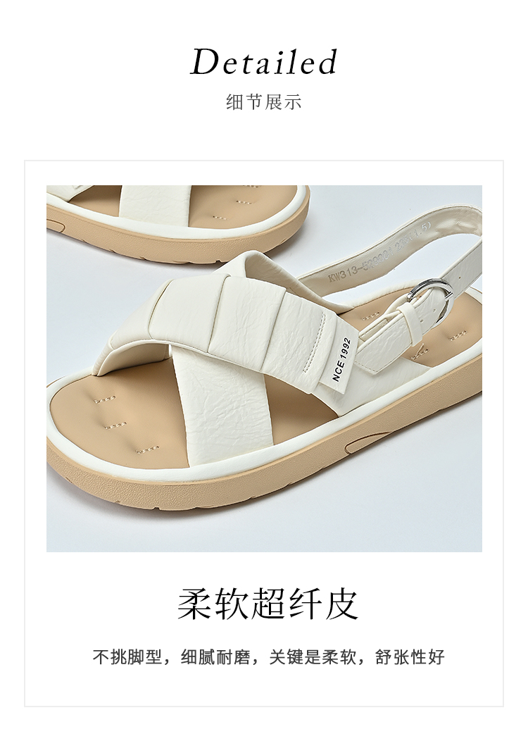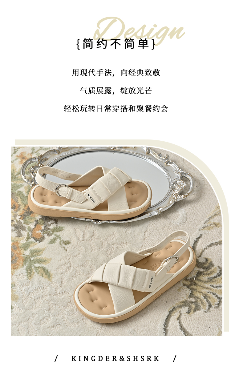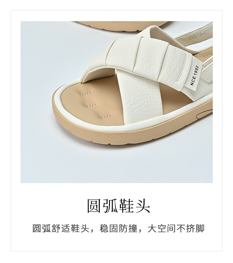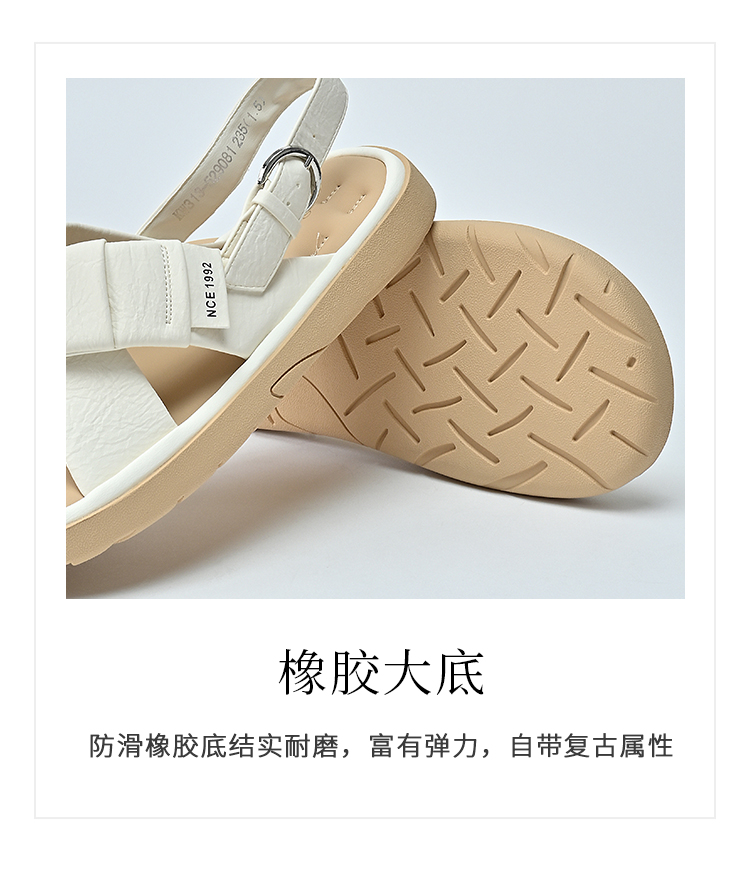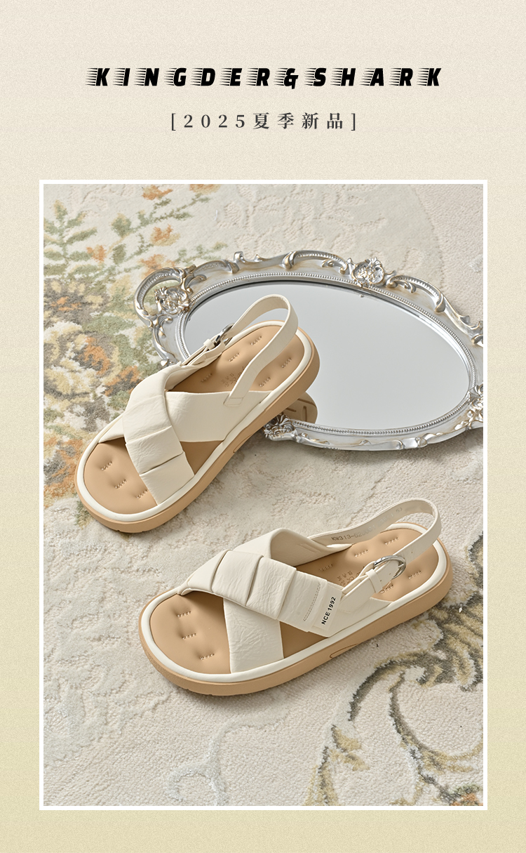 经典鲨2025年夏季新品露趾后空舒适平底日常通勤休闲凉鞋女KW313-529081