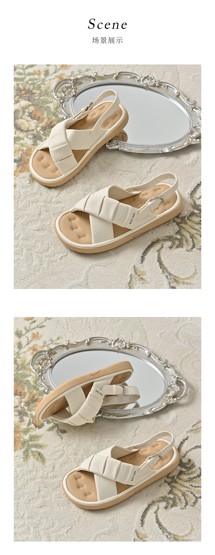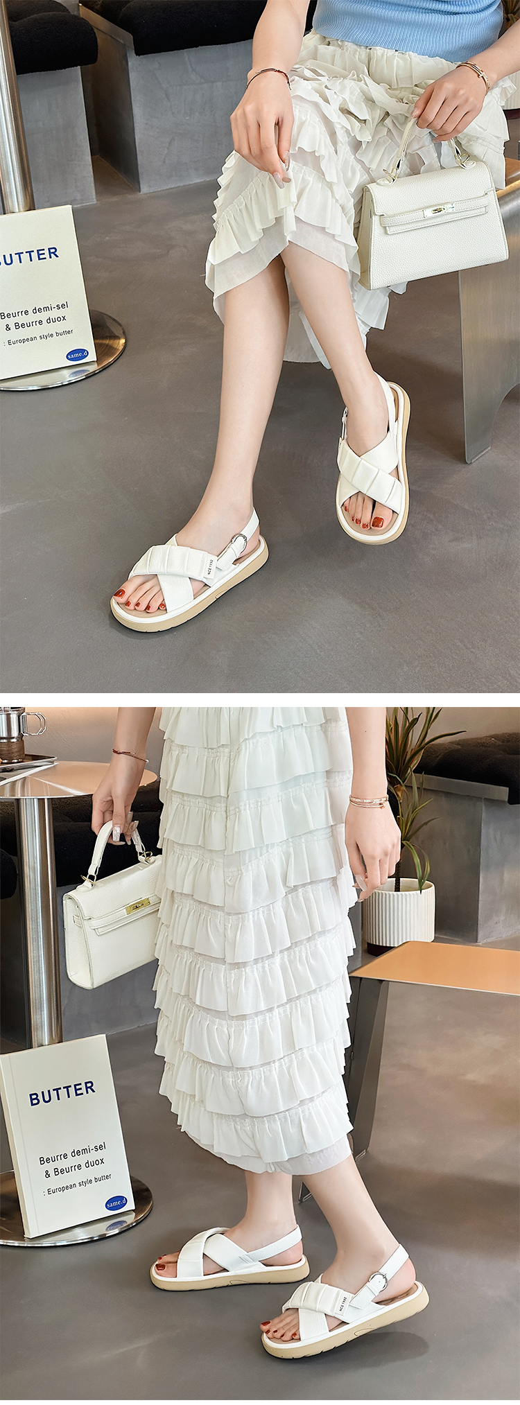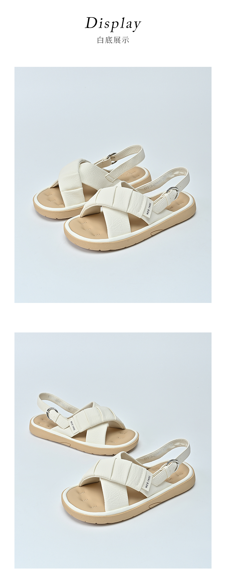 经典鲨2025年夏季新品露趾后空舒适平底日常通勤休闲凉鞋女KW313-529081