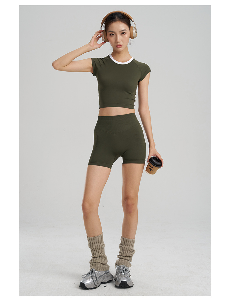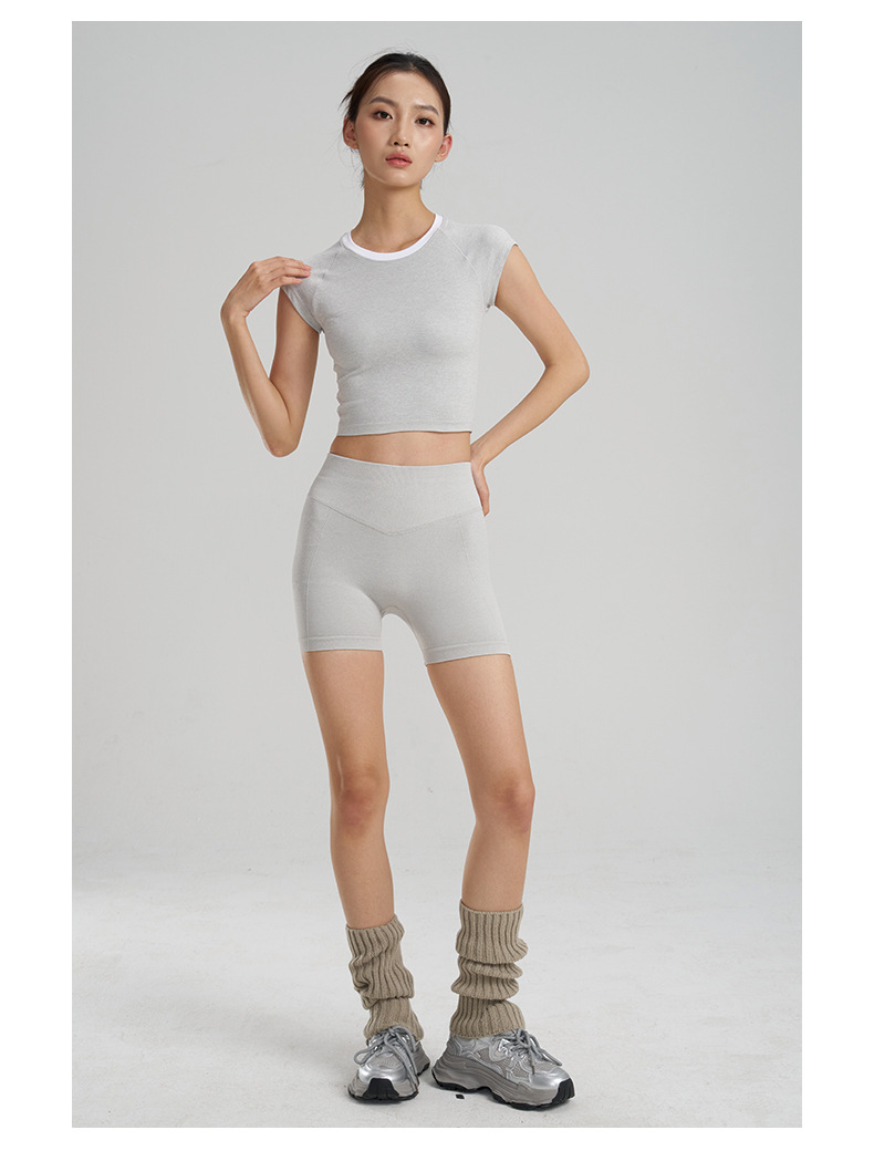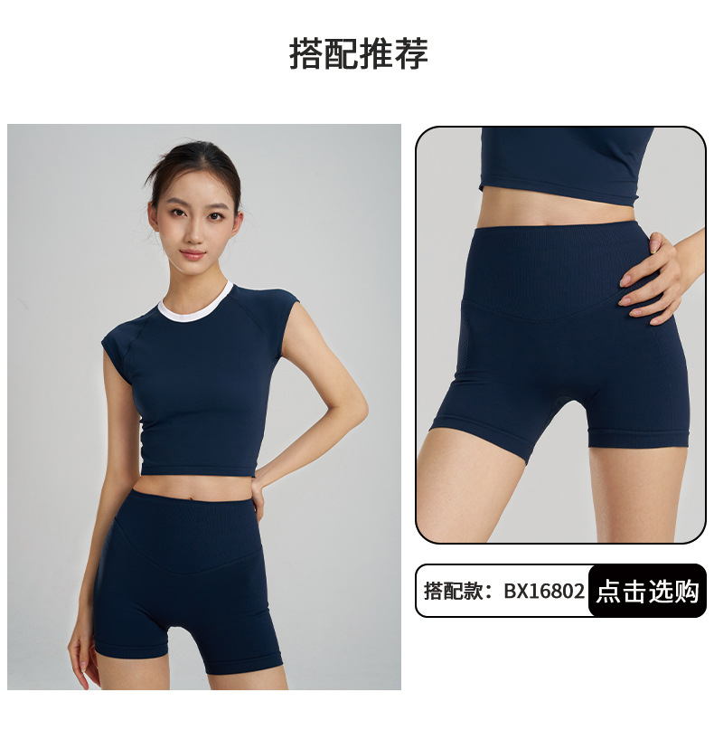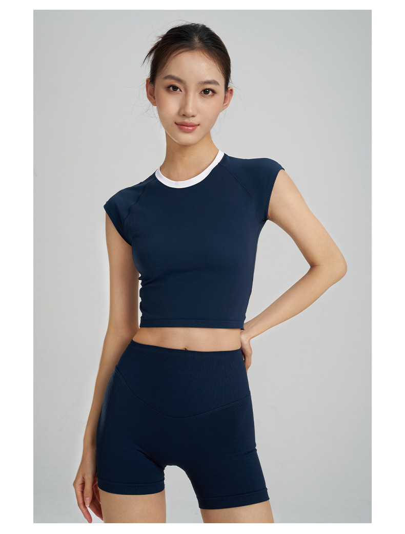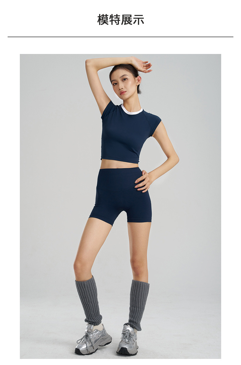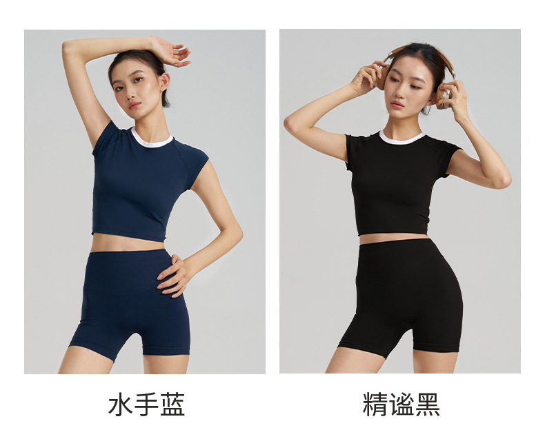 【路路精选】新款时尚跑步运动圆领纯色瑜伽服女修身美体运动透气排汗运动T恤