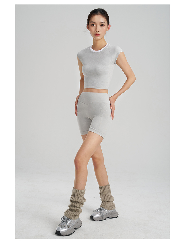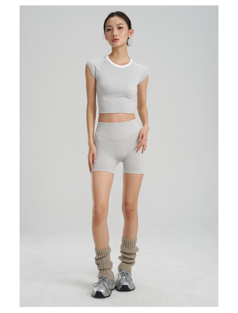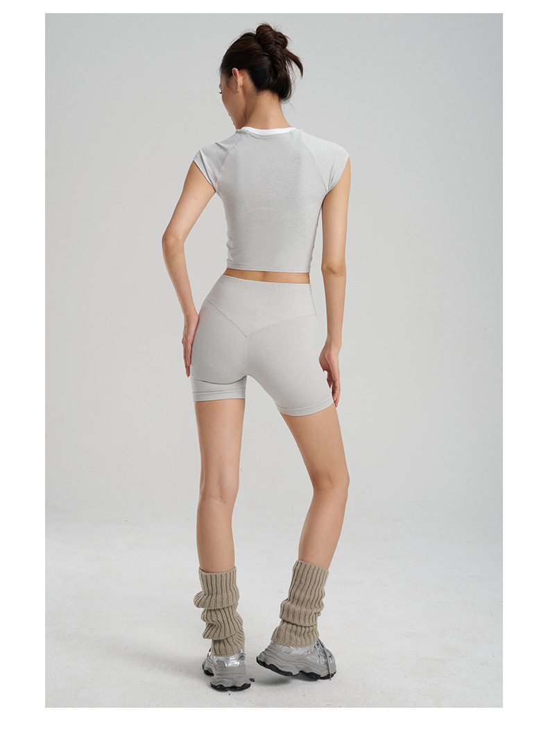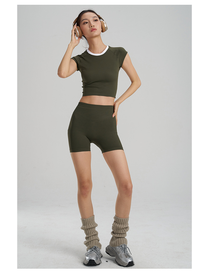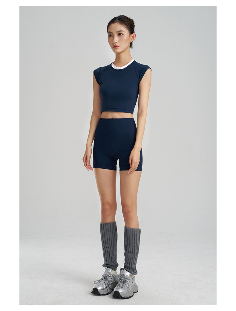 【路路精选】新款时尚跑步运动圆领纯色瑜伽服女修身美体运动透气排汗运动T恤