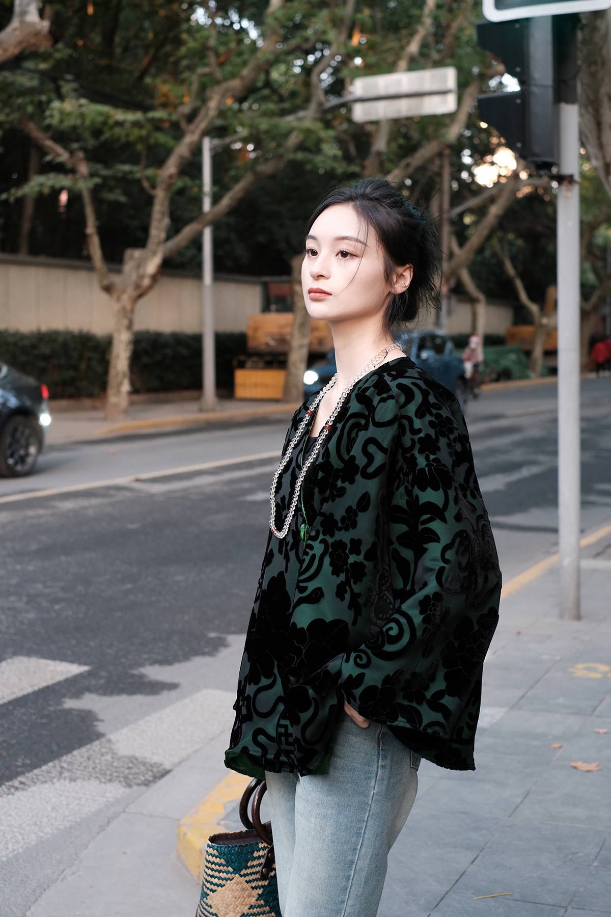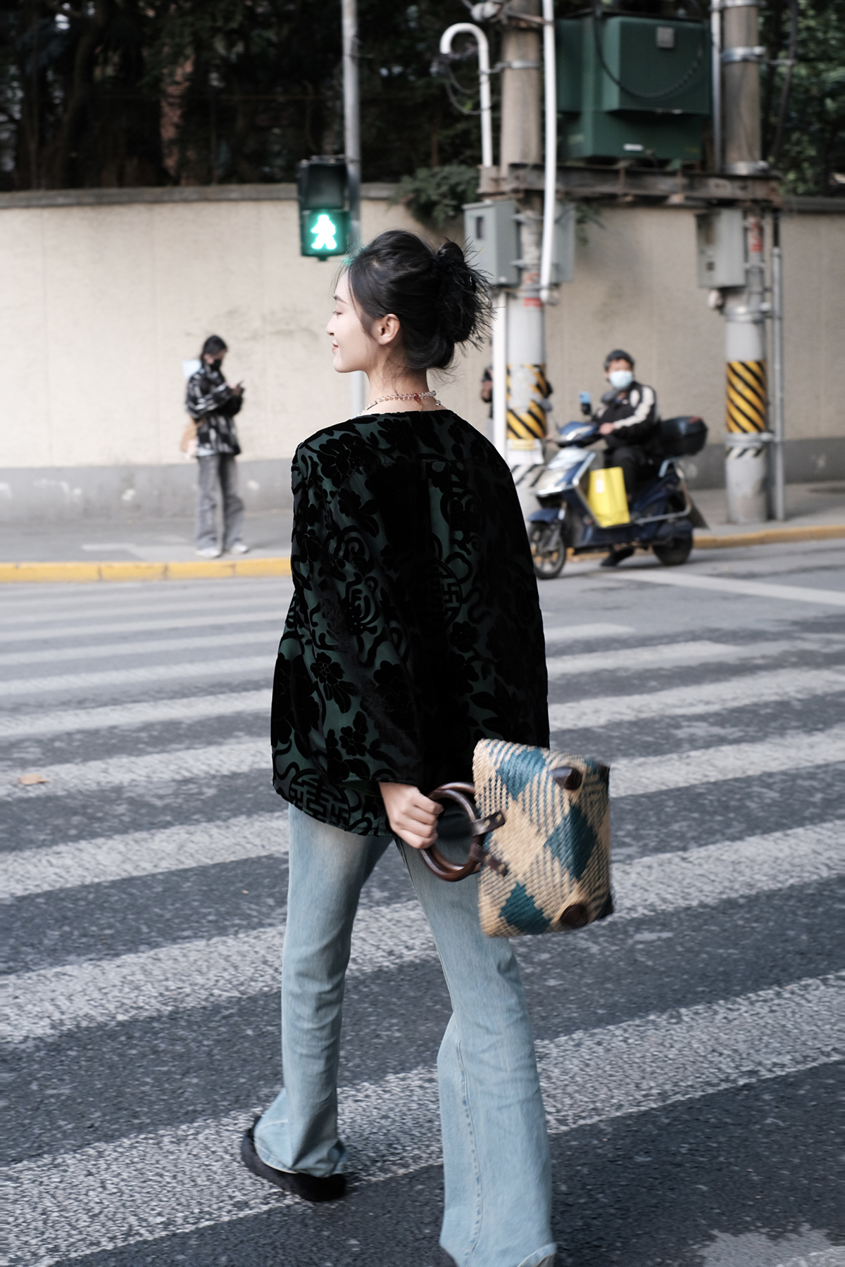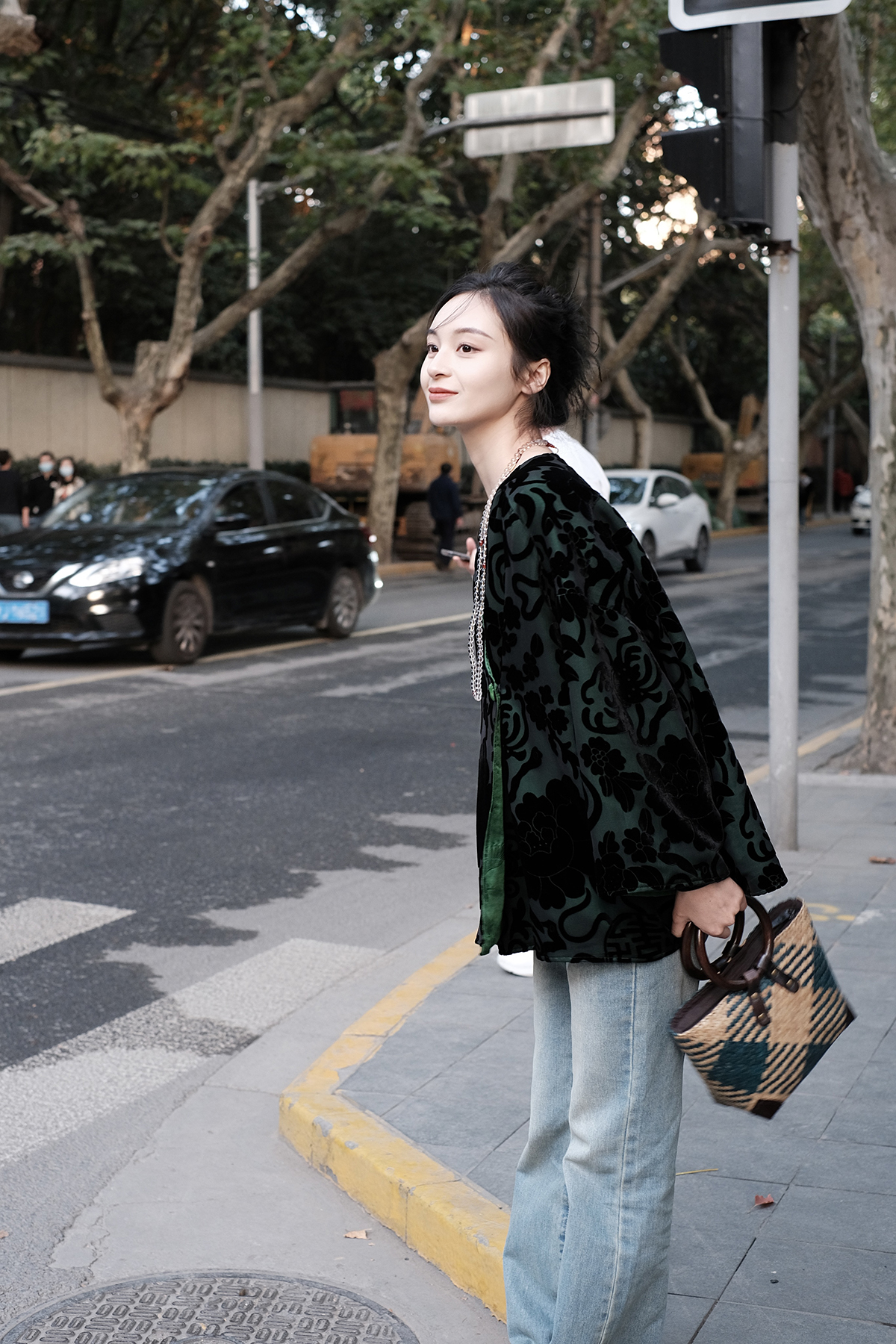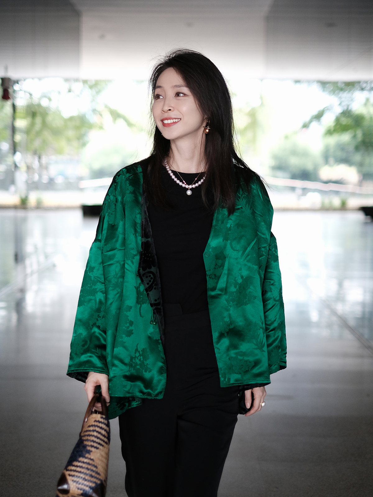 盛唐婧 |金鱼提花一字扣外套-淡绿