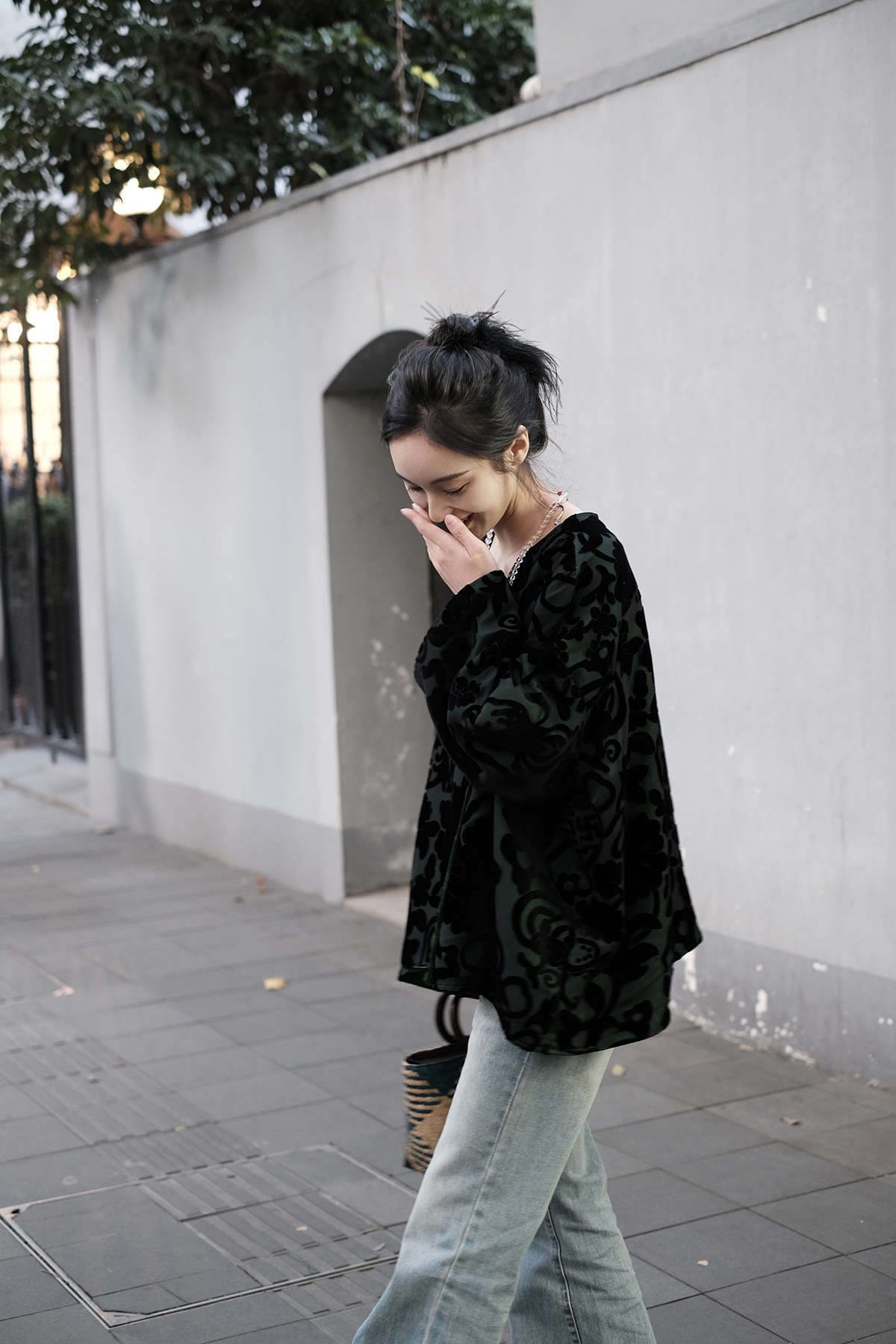 盛唐婧 |桑蚕丝提花宽松百搭T恤-黑色
