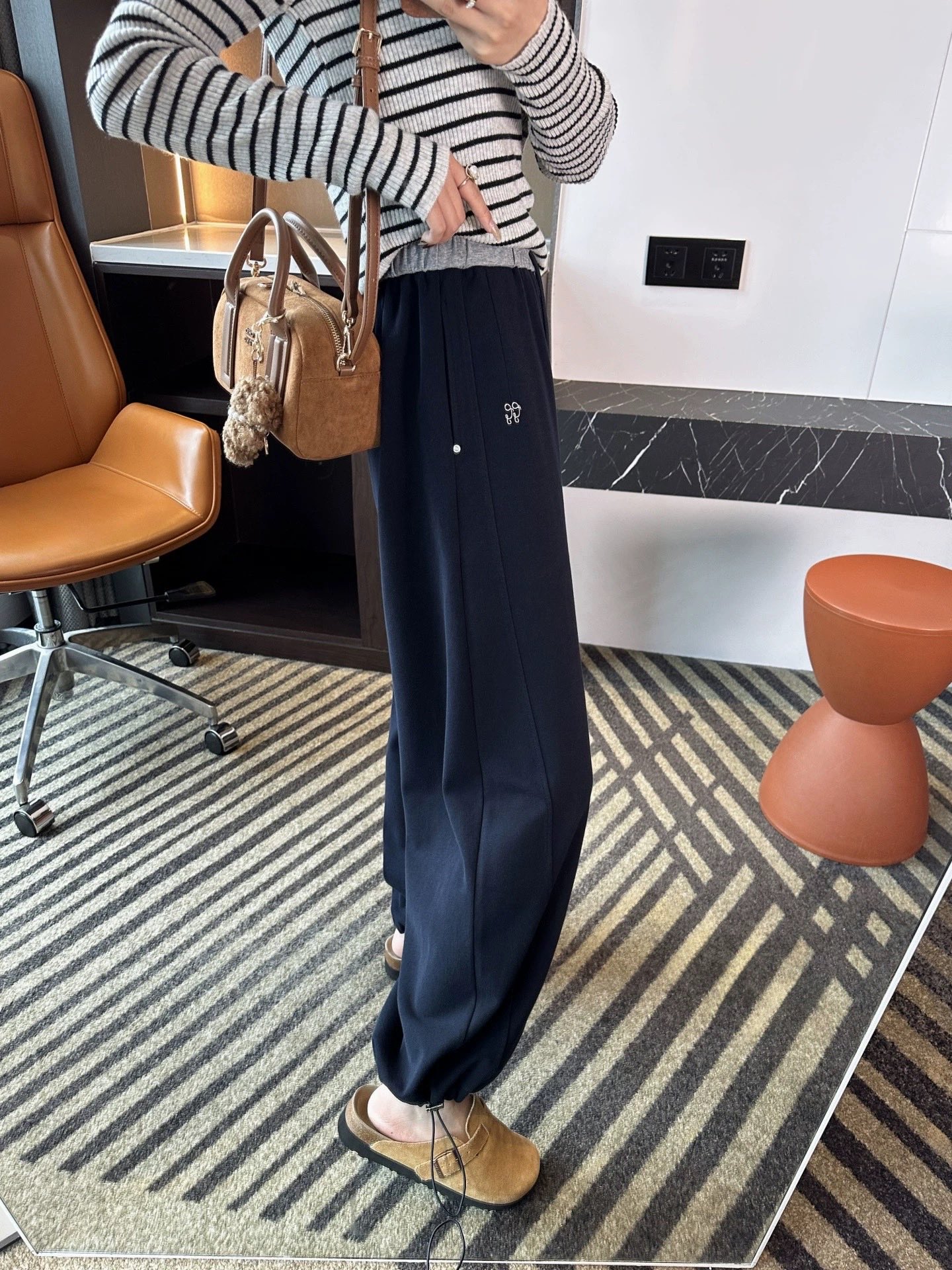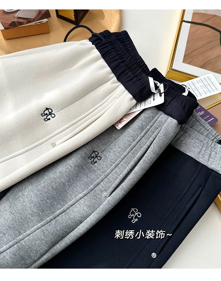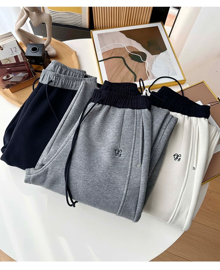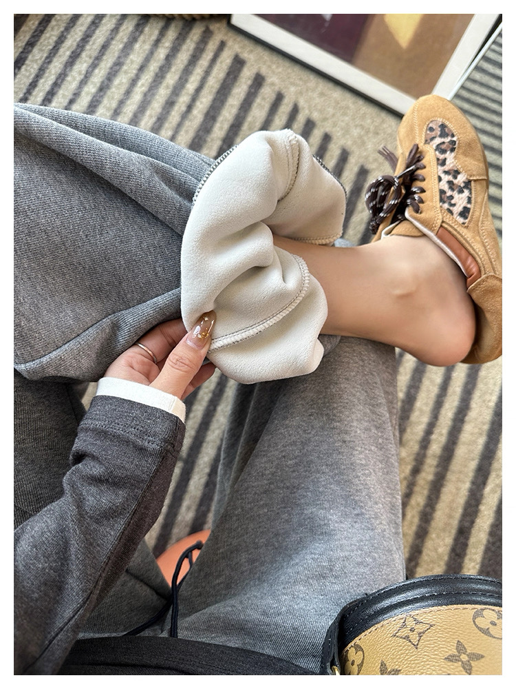加绒裤过冬裤!秋冬季米白色显瘦加绒阔腿休闲裤女 软糯保暖加厚卫裤,推荐!脚口收口抽绳两穿!我真的疯狂打call~