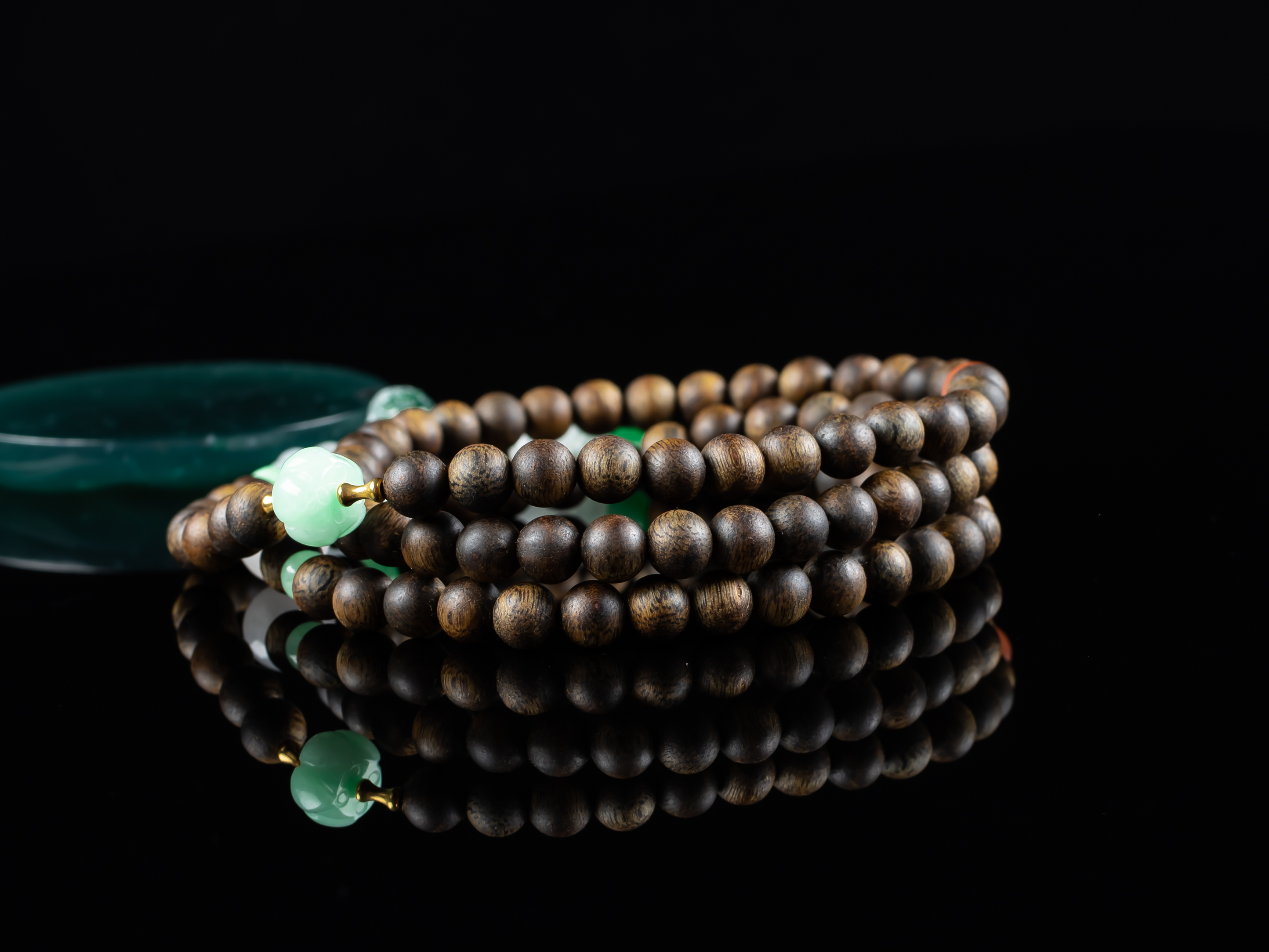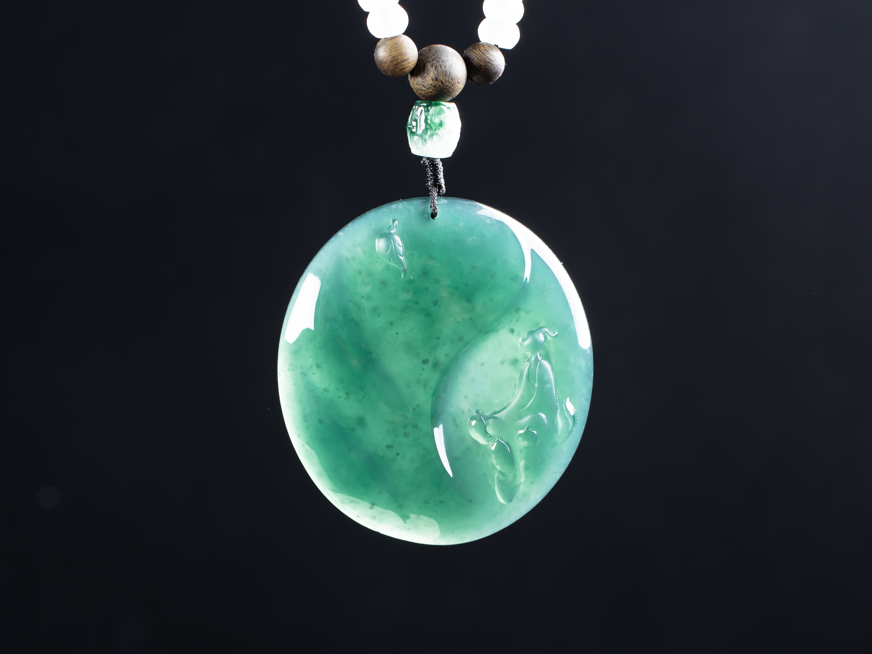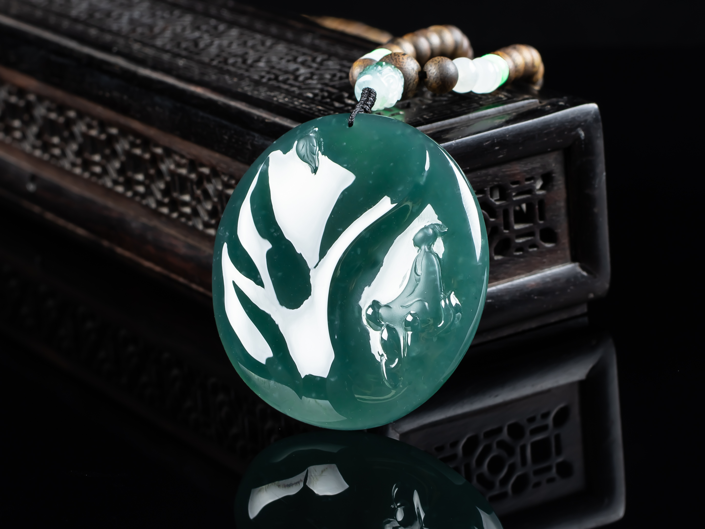 原创沉香翡翠悟道牌挂件,天然沉香6.3mm,原色原味,香气清甜舒凉。配件:翡翠、南红、18K金。天然蓝水翡翠牌子,上雕一佛陀静坐仰望上方一片叶子,几外流线型顺其自然,透光可见雪花棉,意境静谧幽远,一叶一菩提,款式更是精心采取不对称设计,感悟天地万物,得其智慧于心。牌子47.6*52.2*7.2mm