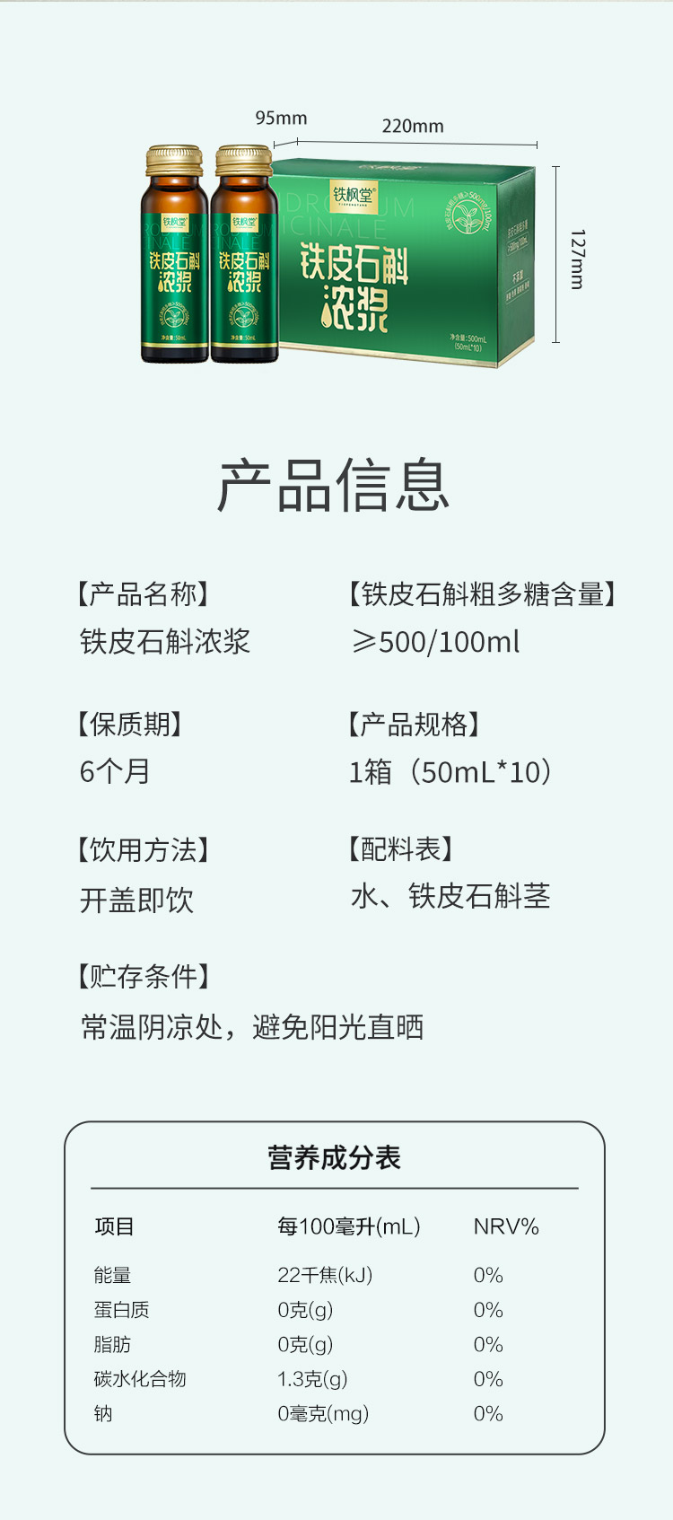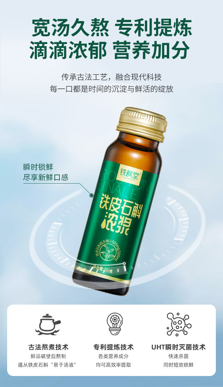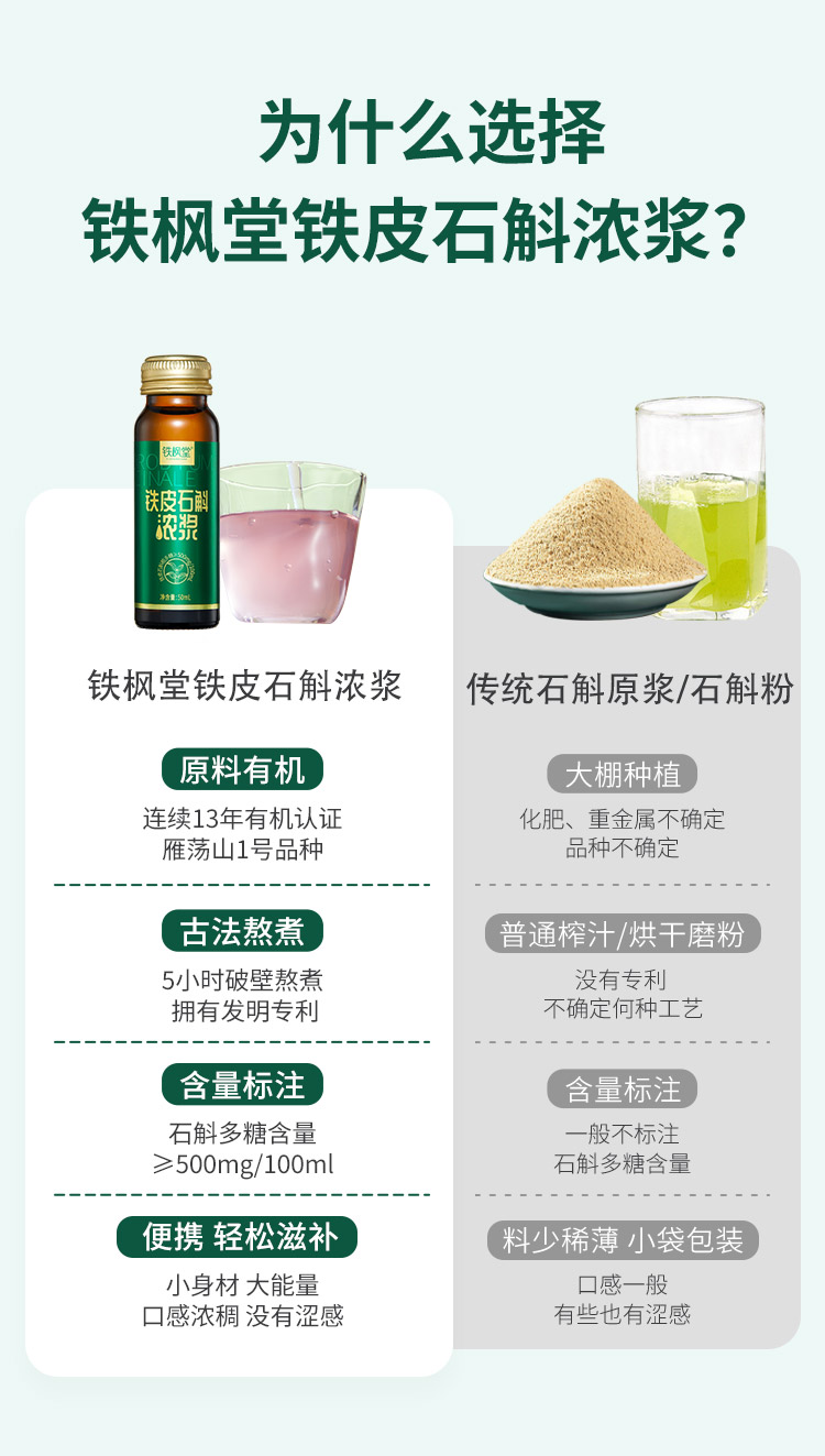 【清心湖甄选&全网比价】每瓶含250mg粗多糖 料足才更浓 宽汤久煎更滋养 铁枫堂铁皮石斛浓浆50ml/瓶*10支 精选3年生雁荡山铁皮石斛鲜条