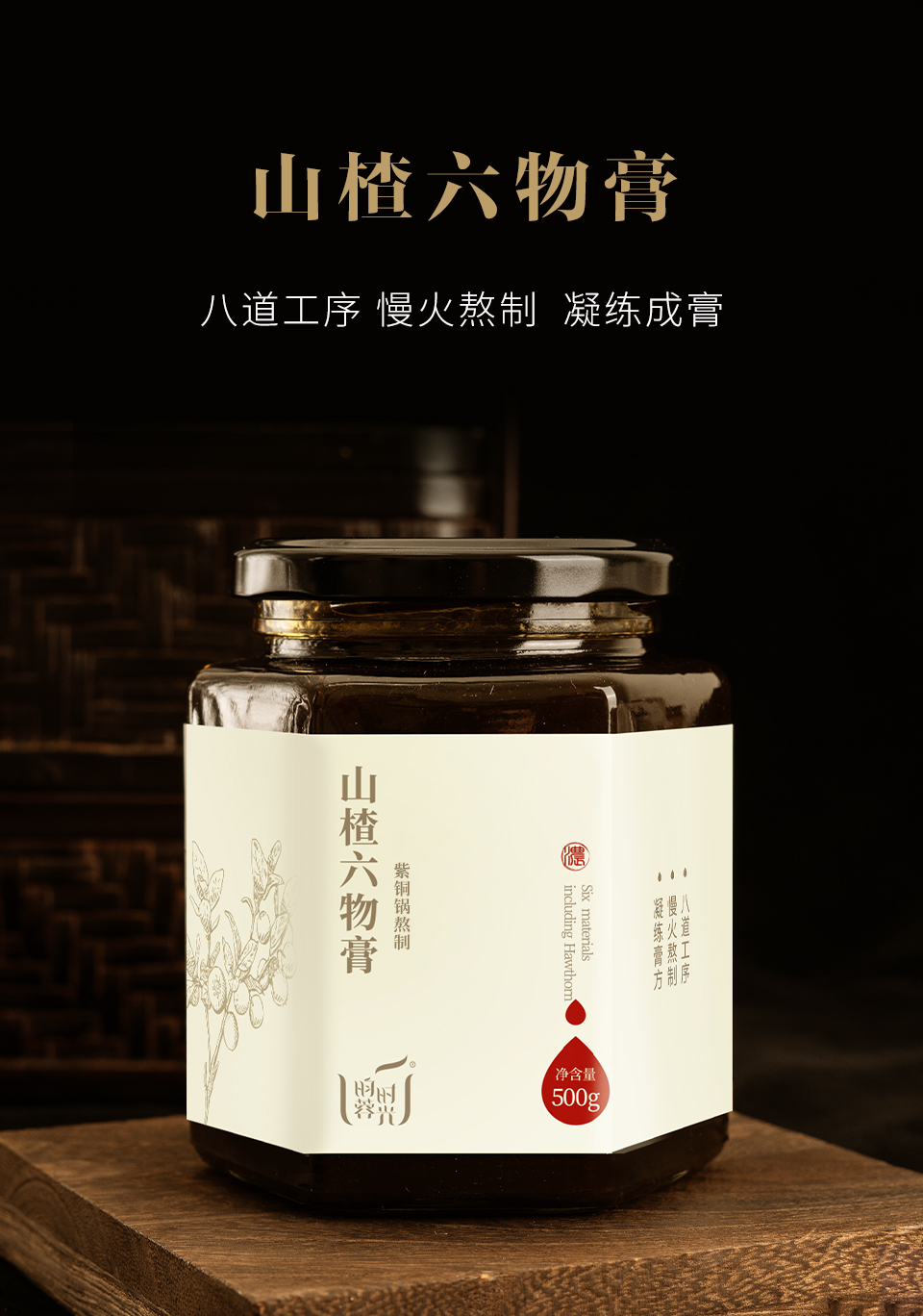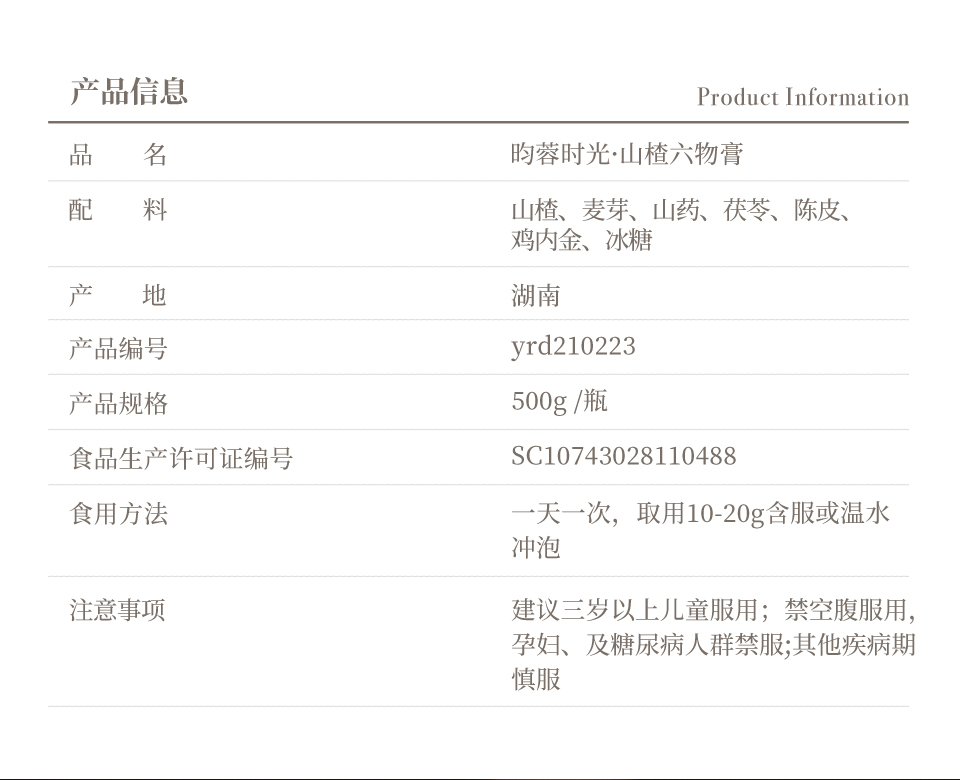 【昀蓉 .山楂六物膏】古法熬制·精选地道食材·膏体颜色透亮·无杂质500g/瓶(包装升级·新老包装随机发货)