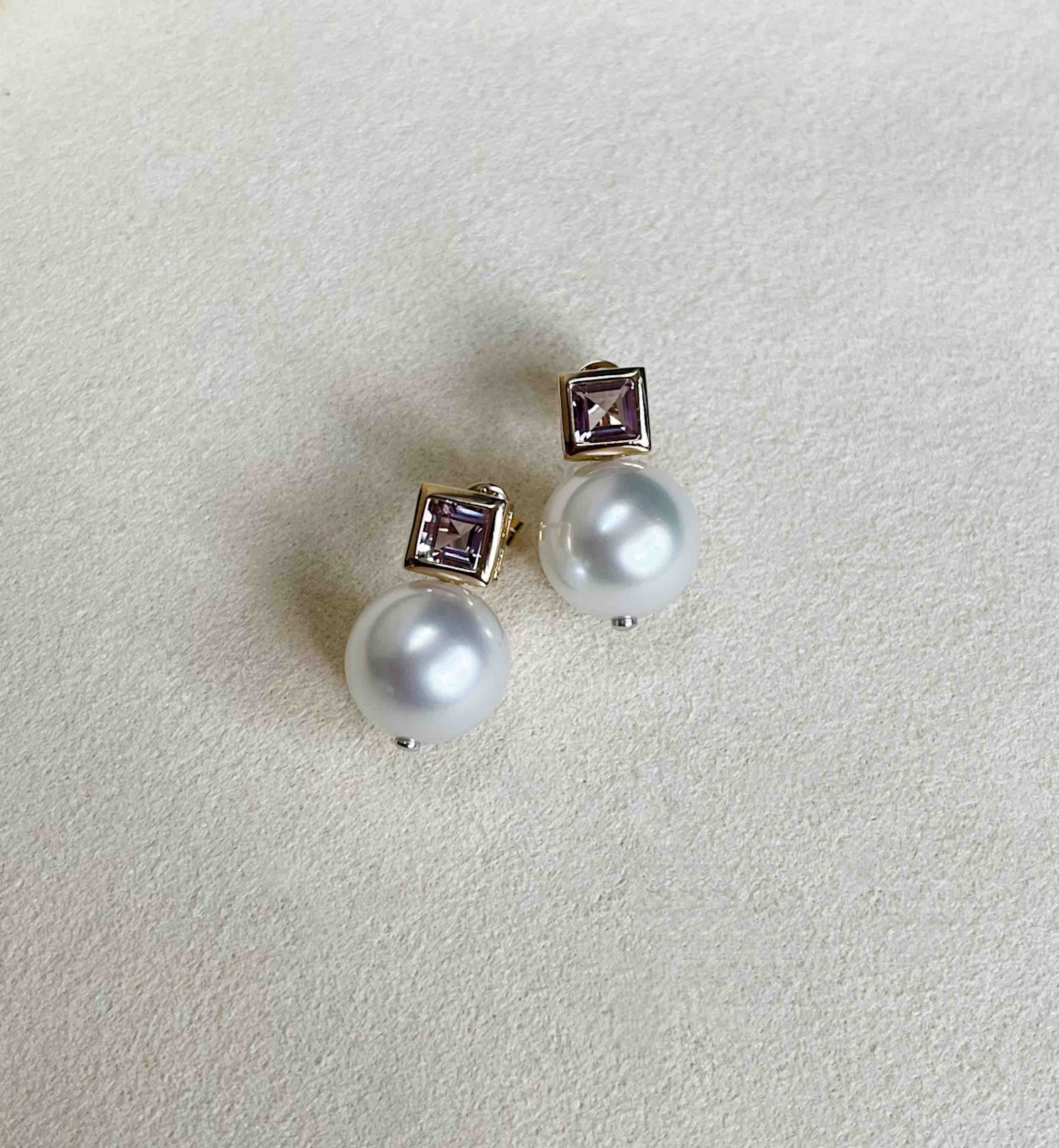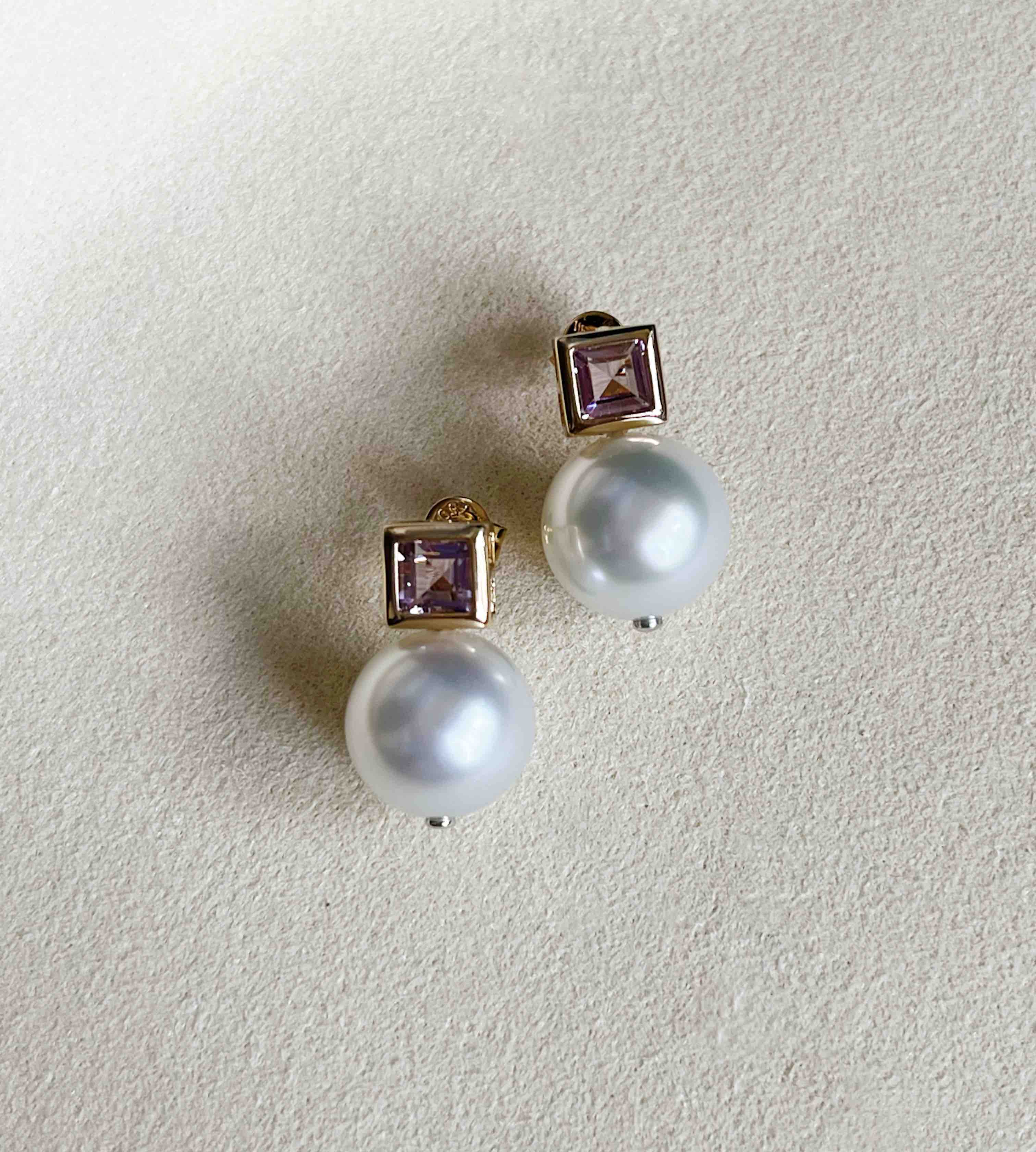 作品名称:14K和18K镶南洋珍珠和紫晶耳钉