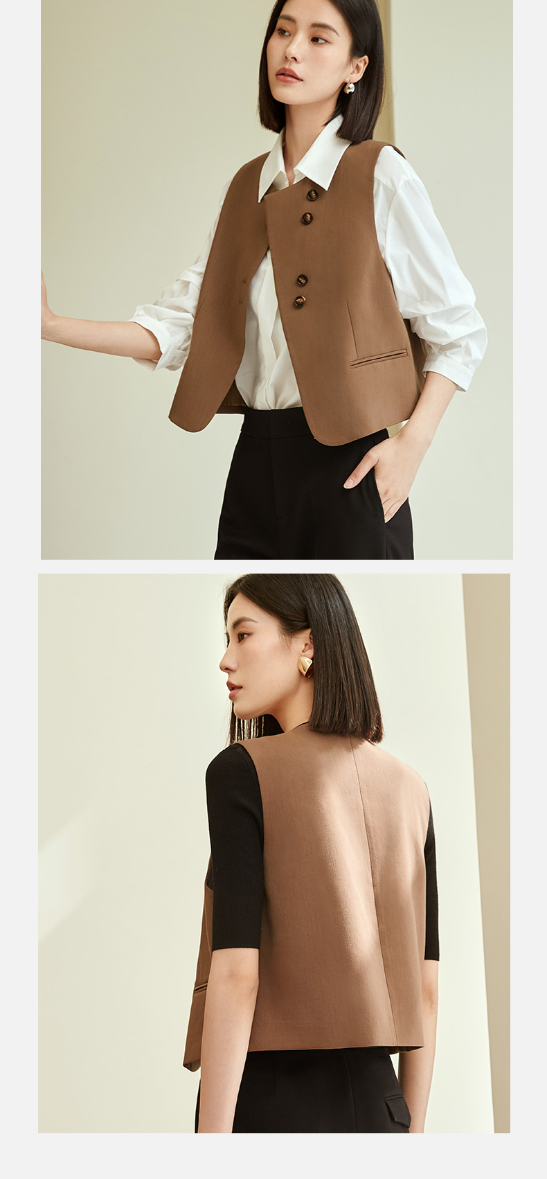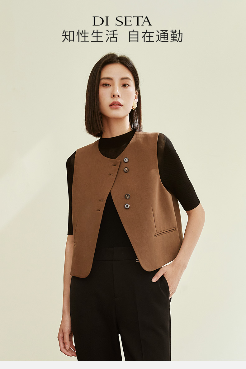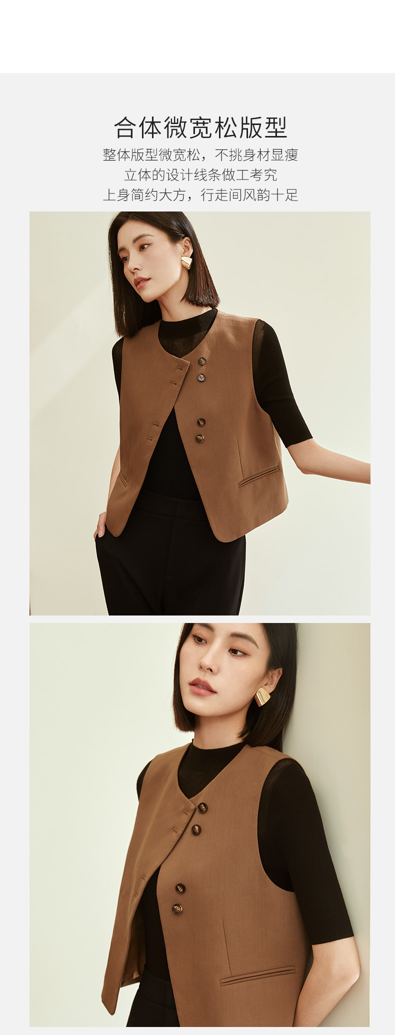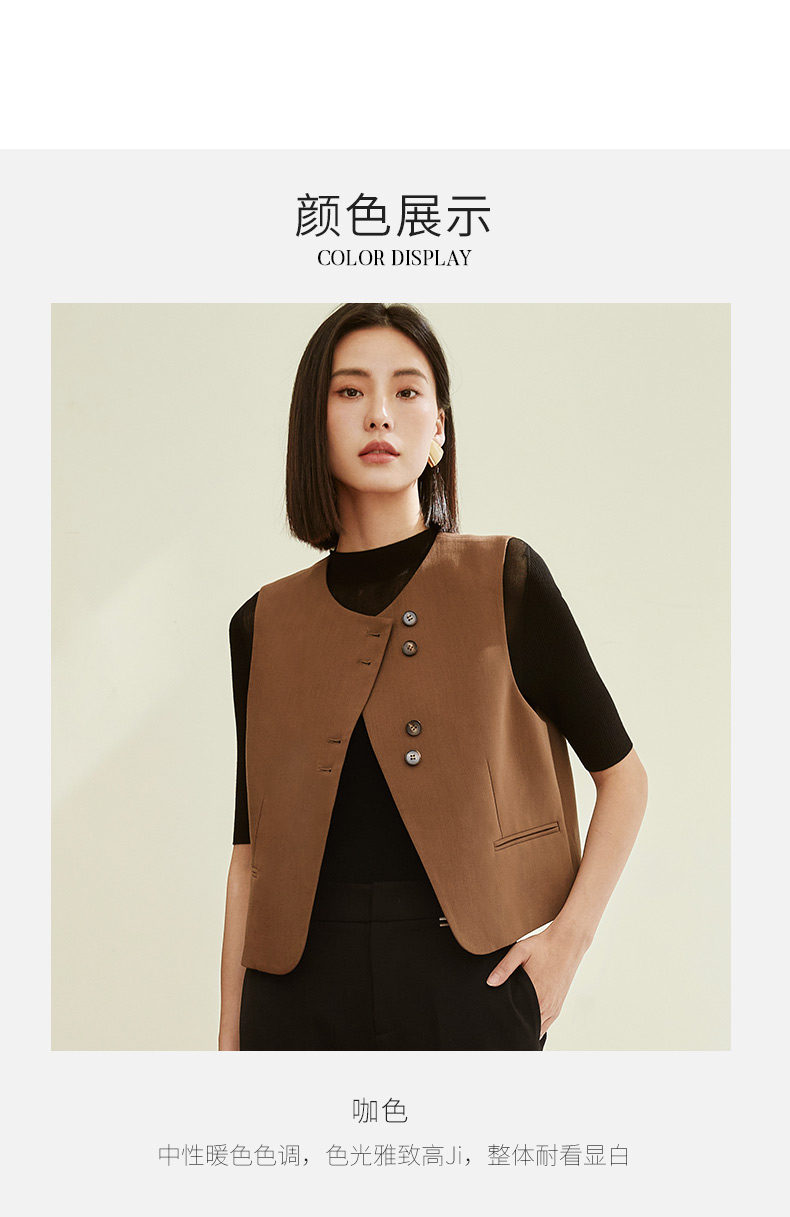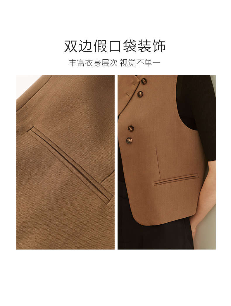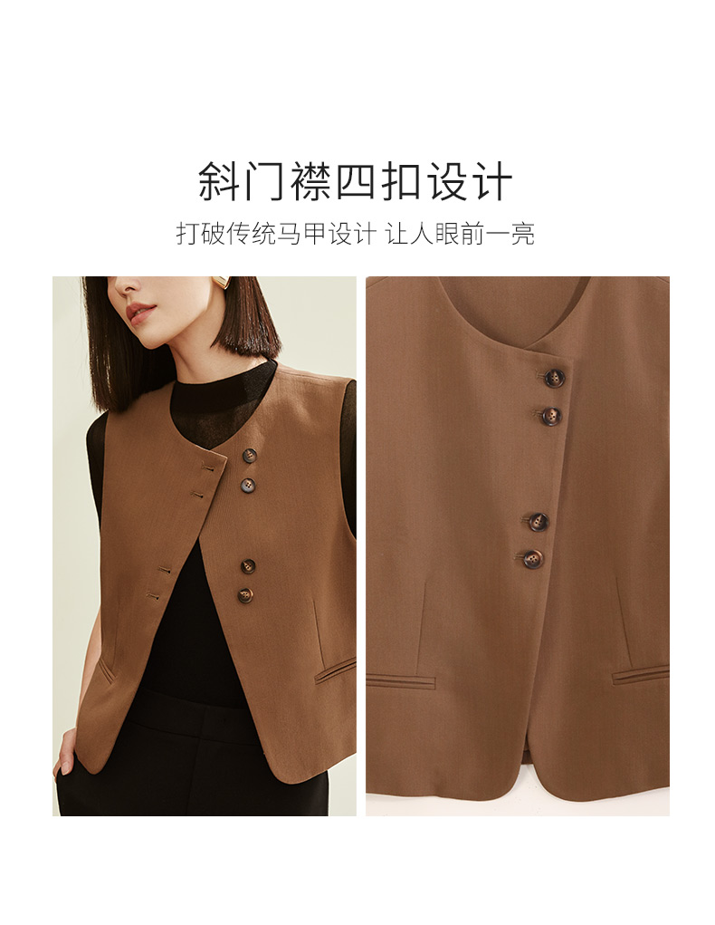 玳莎门襟设计感西装马甲女2023年秋季新款气质圆领无袖背心外套 DC37001