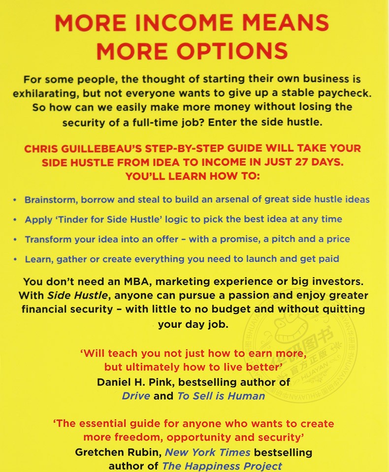 在这本书中,你将学会激荡创意,创立一个伟大的副业策略,收集你所需要的各种内容,建立一个可获得报酬的生活方式,并从副业里赚得更多收入。