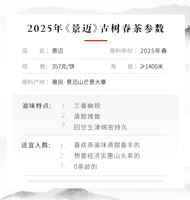 [买7送1]2025《景迈》古树春茶 生茶 357克/饼